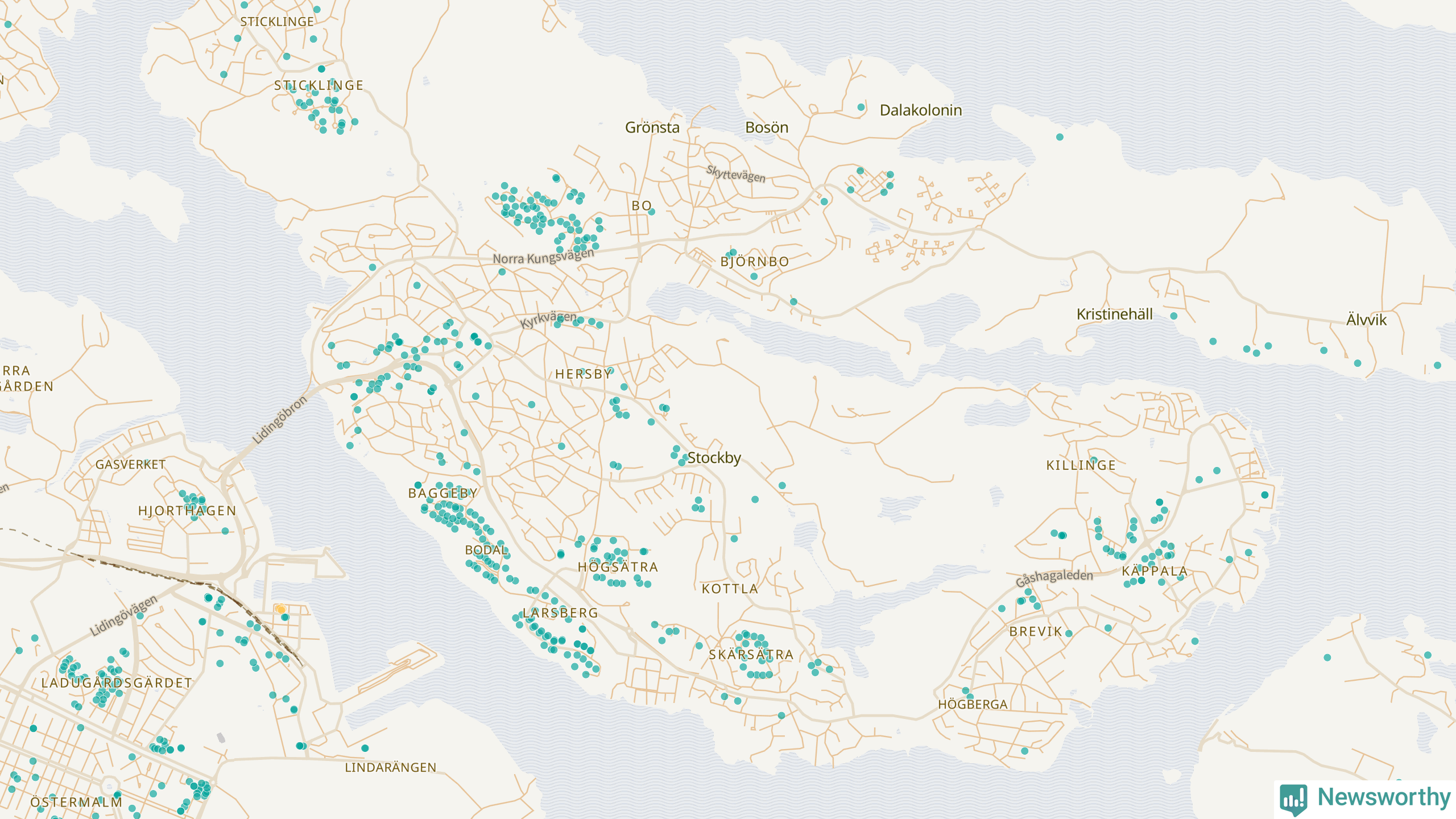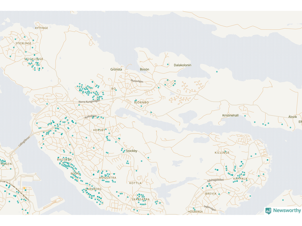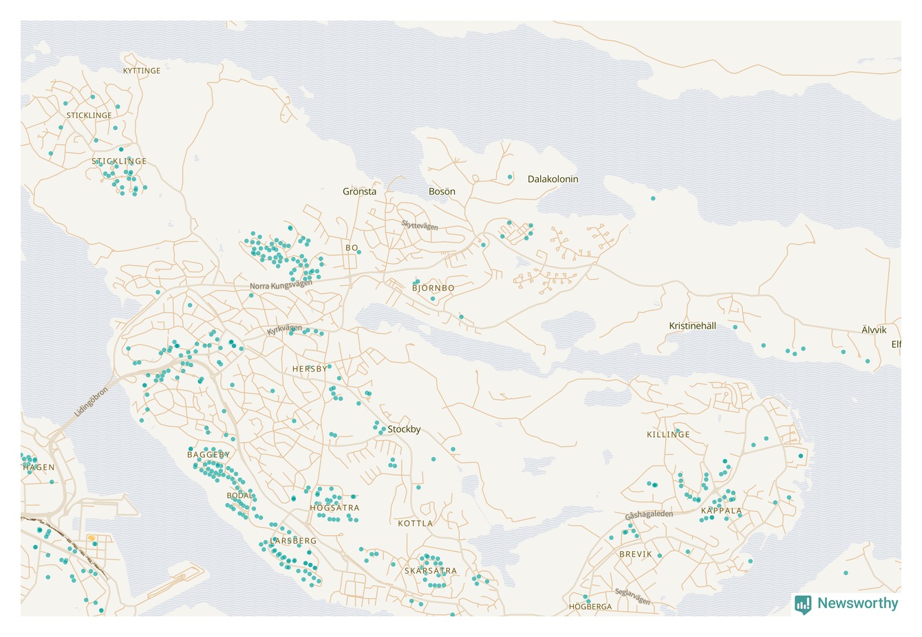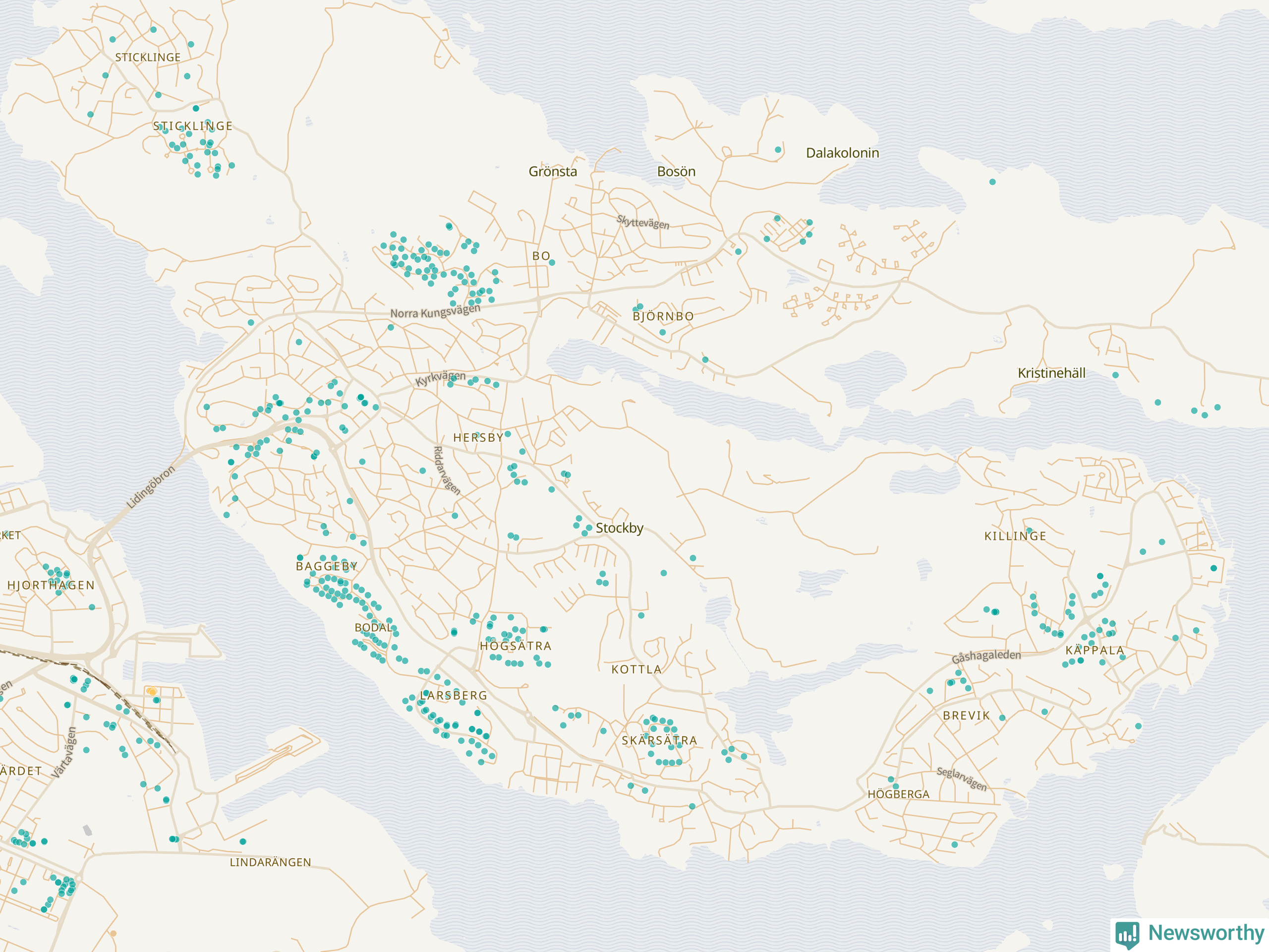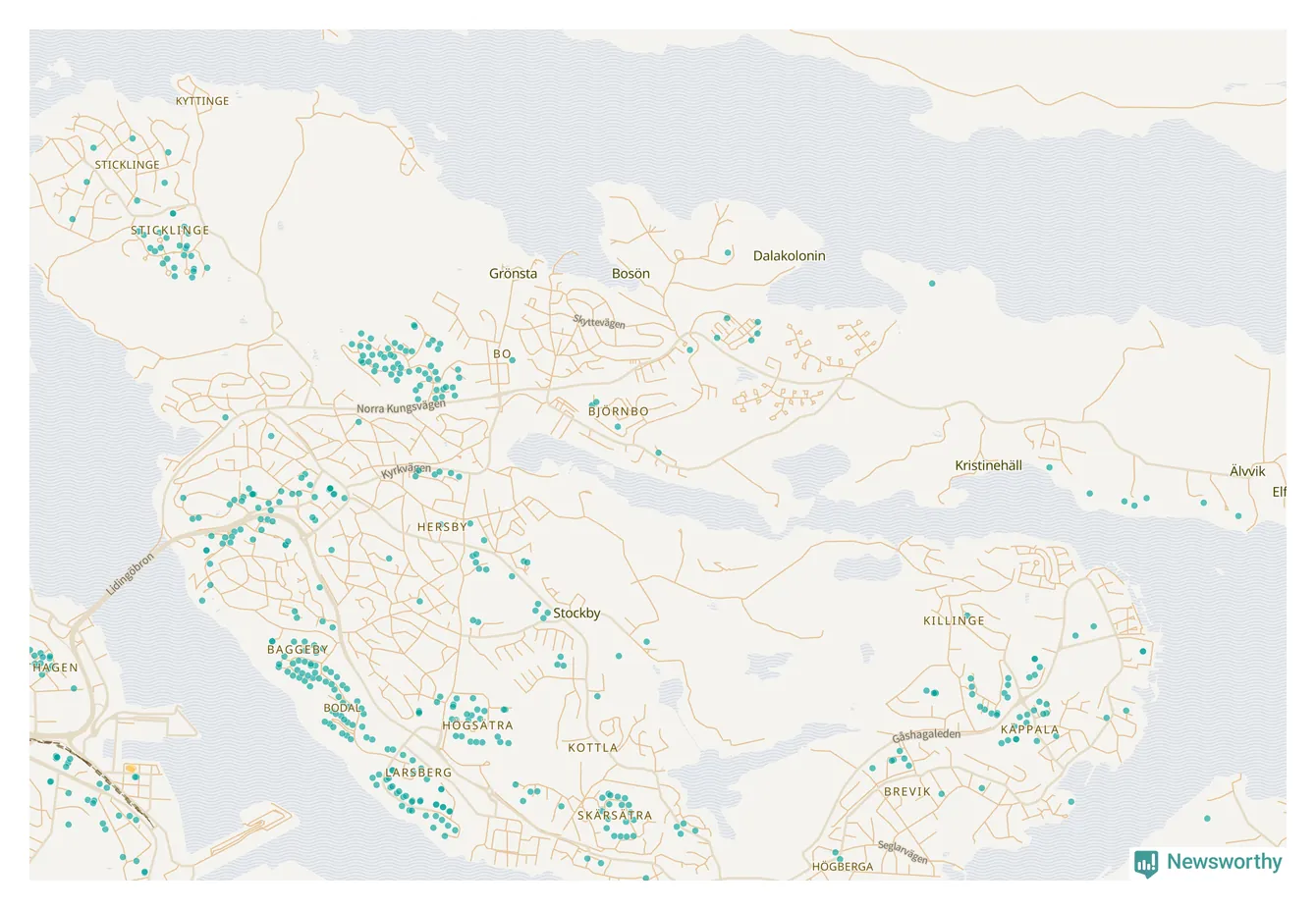 | Värmdö | 56 | 6 285 | 13 % |