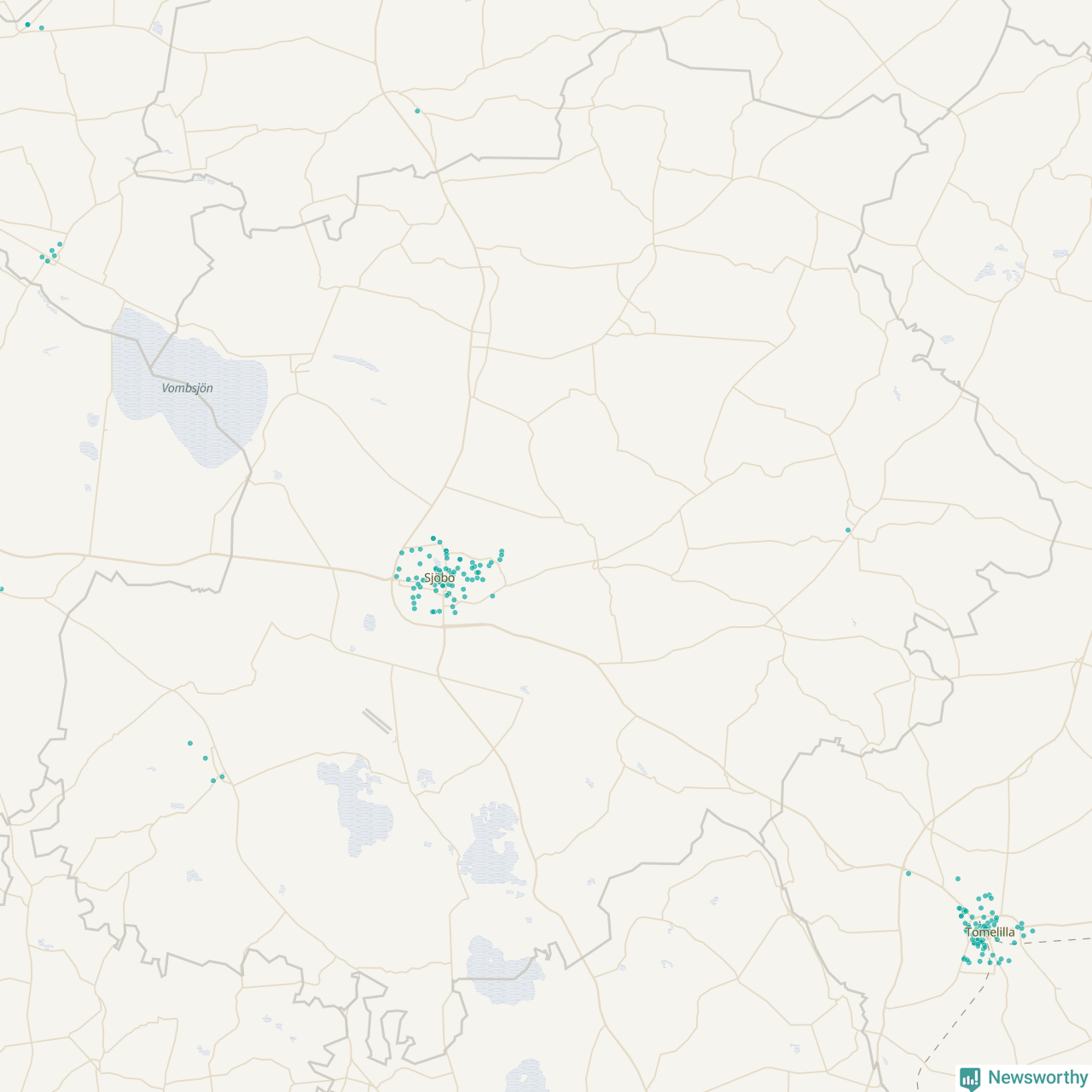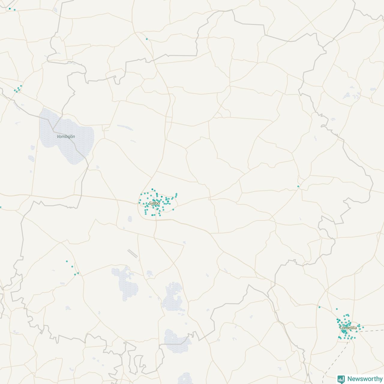 | Östra Göinge | 47 | 2 877 | 21 % |