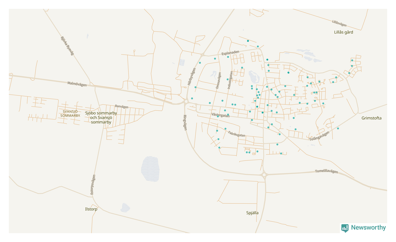 | Staffanstorp | 59 | 6 134 | 22 % |