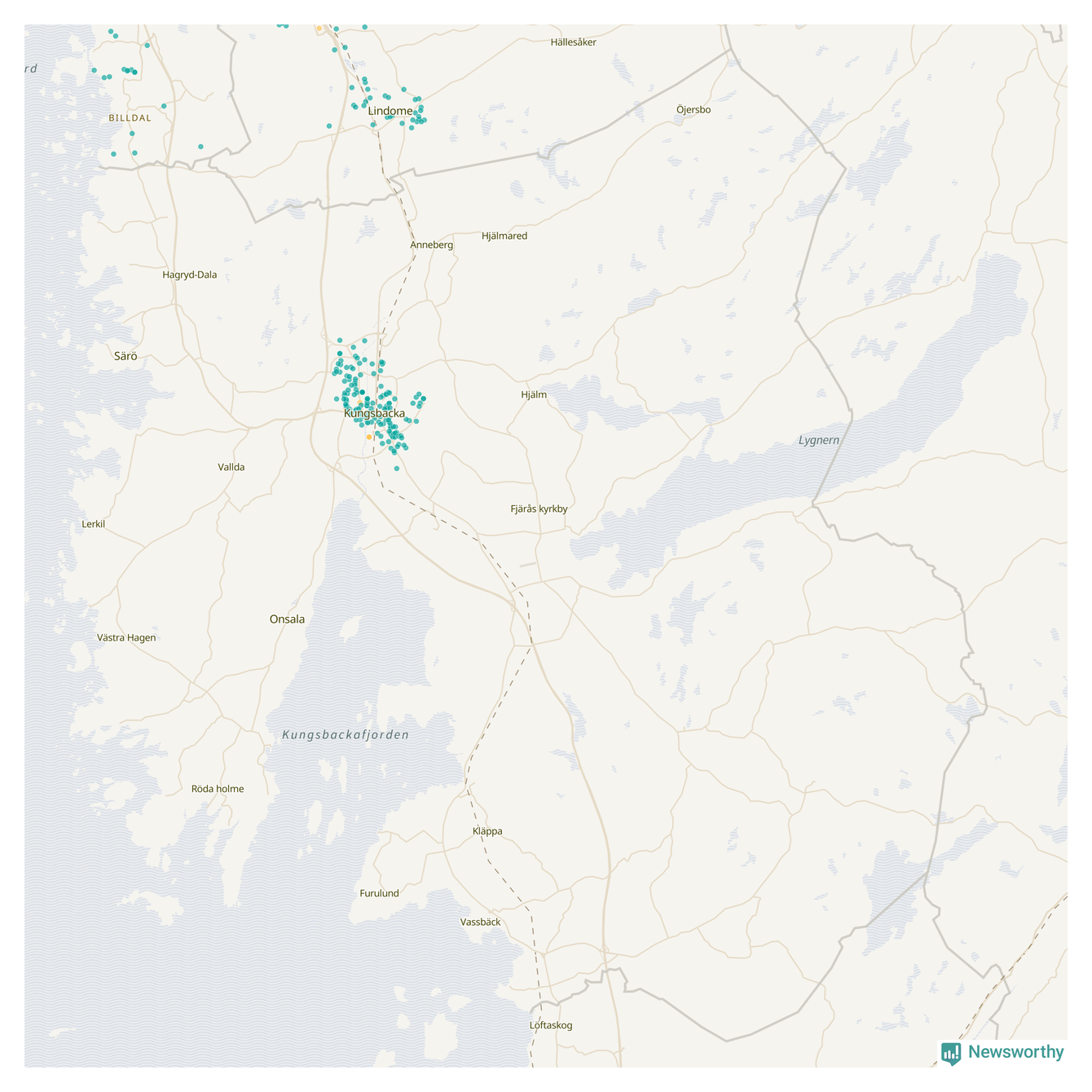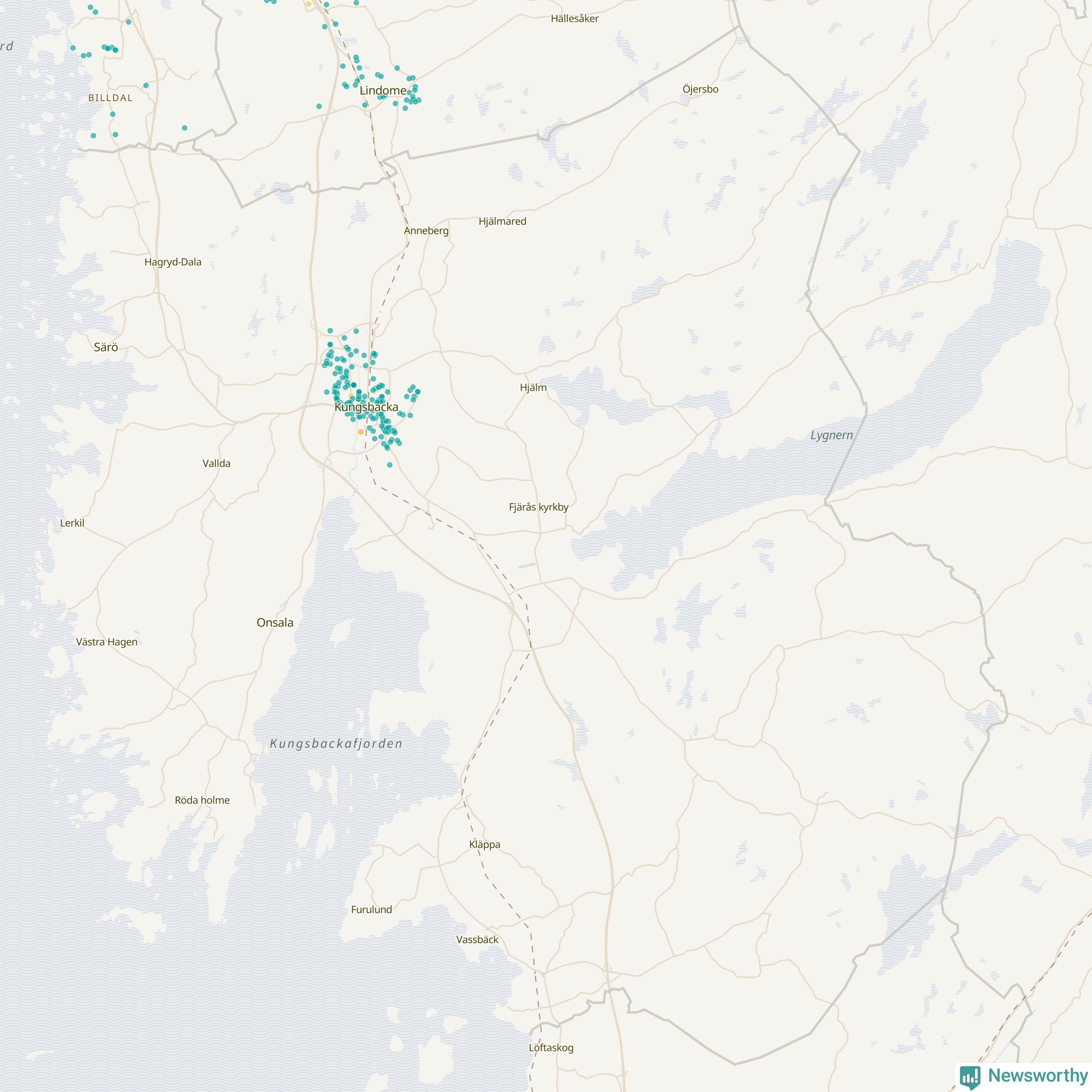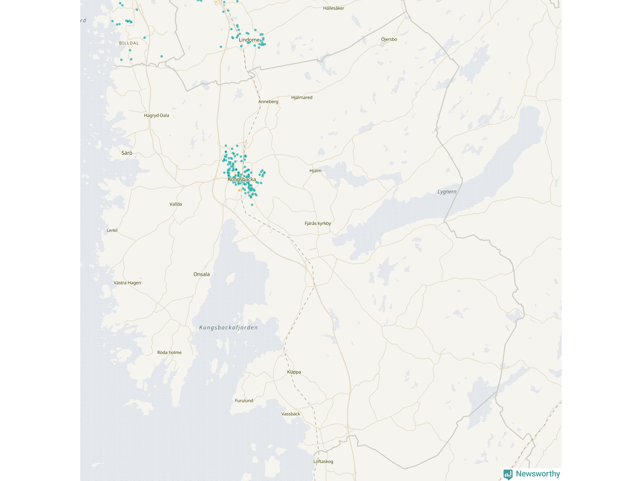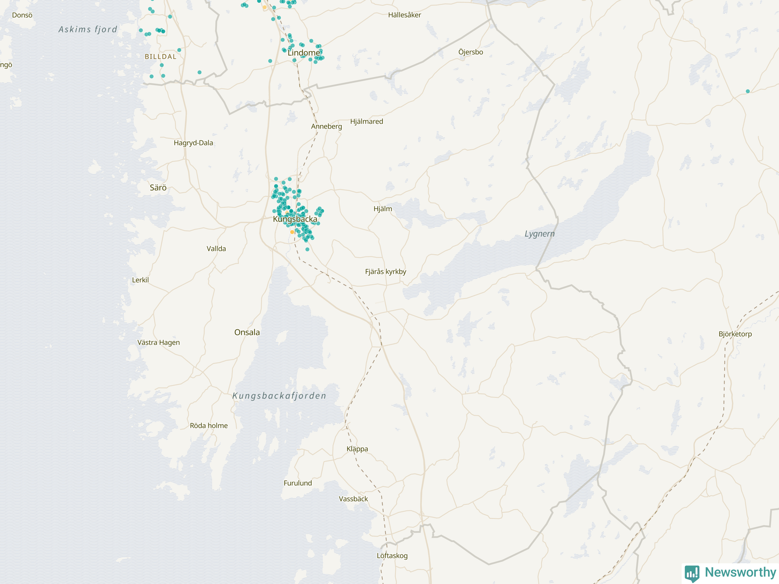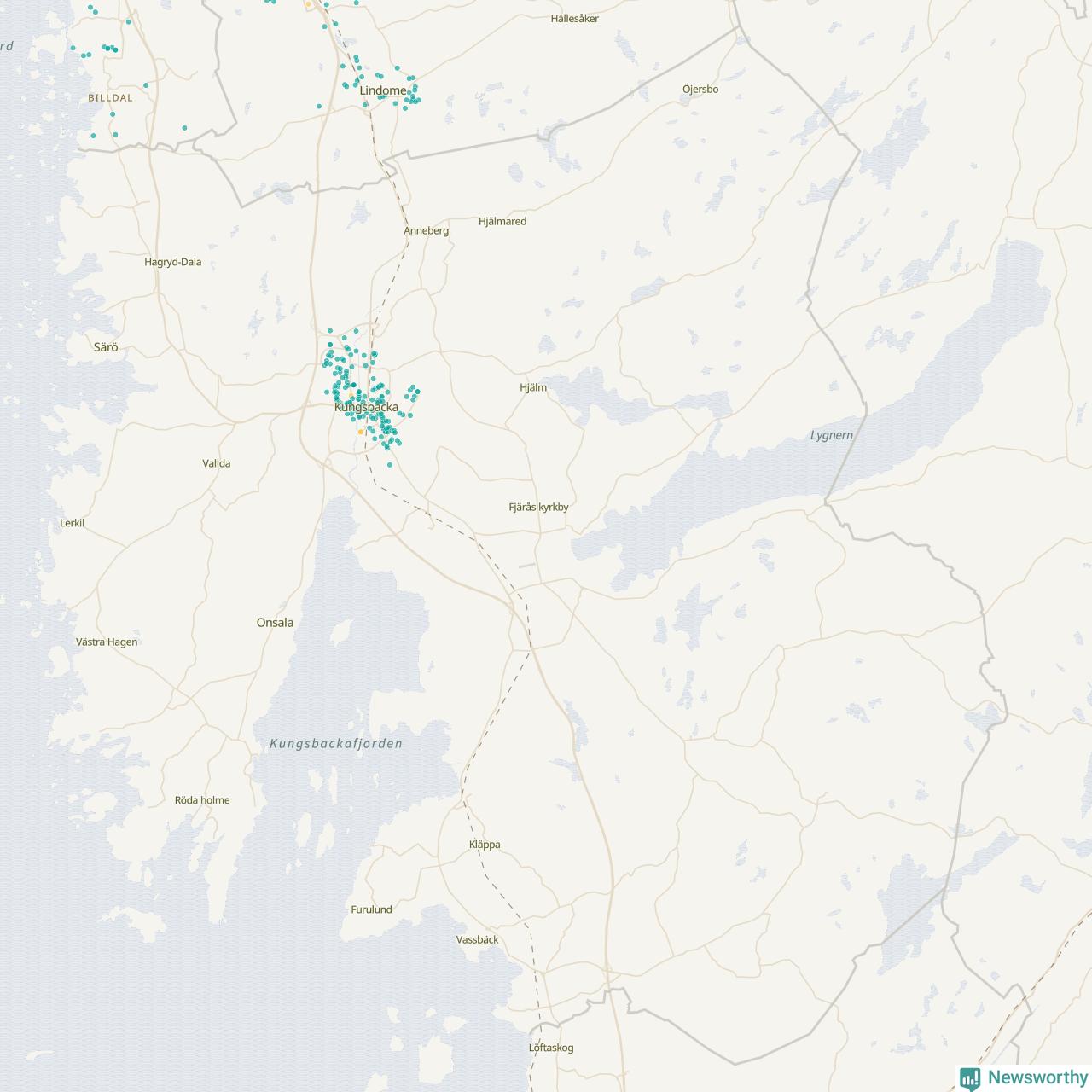 | Kungsbacka | 166 | 18 131 | 21 % |