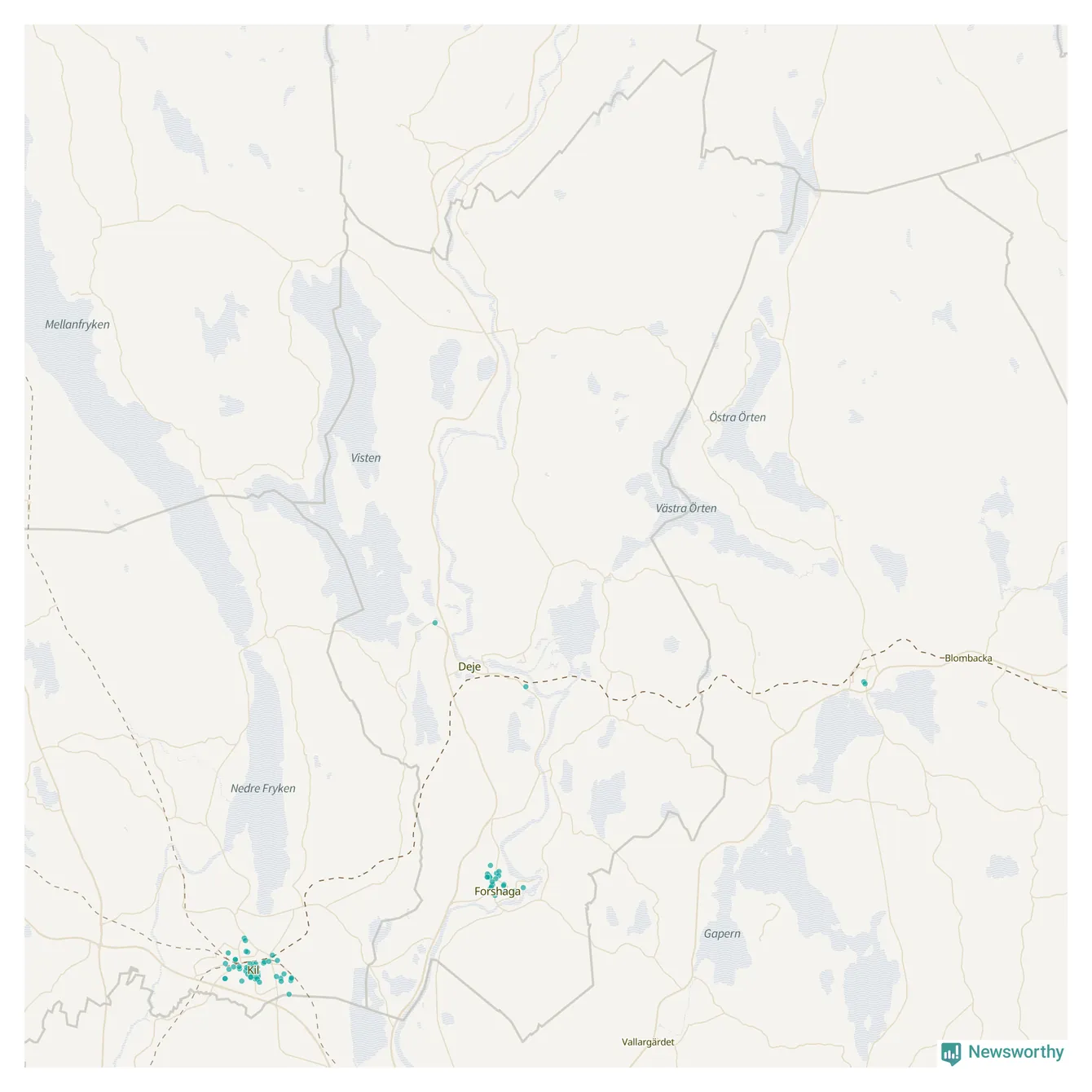 | Grums | 44 | 5 202 | 59 % |