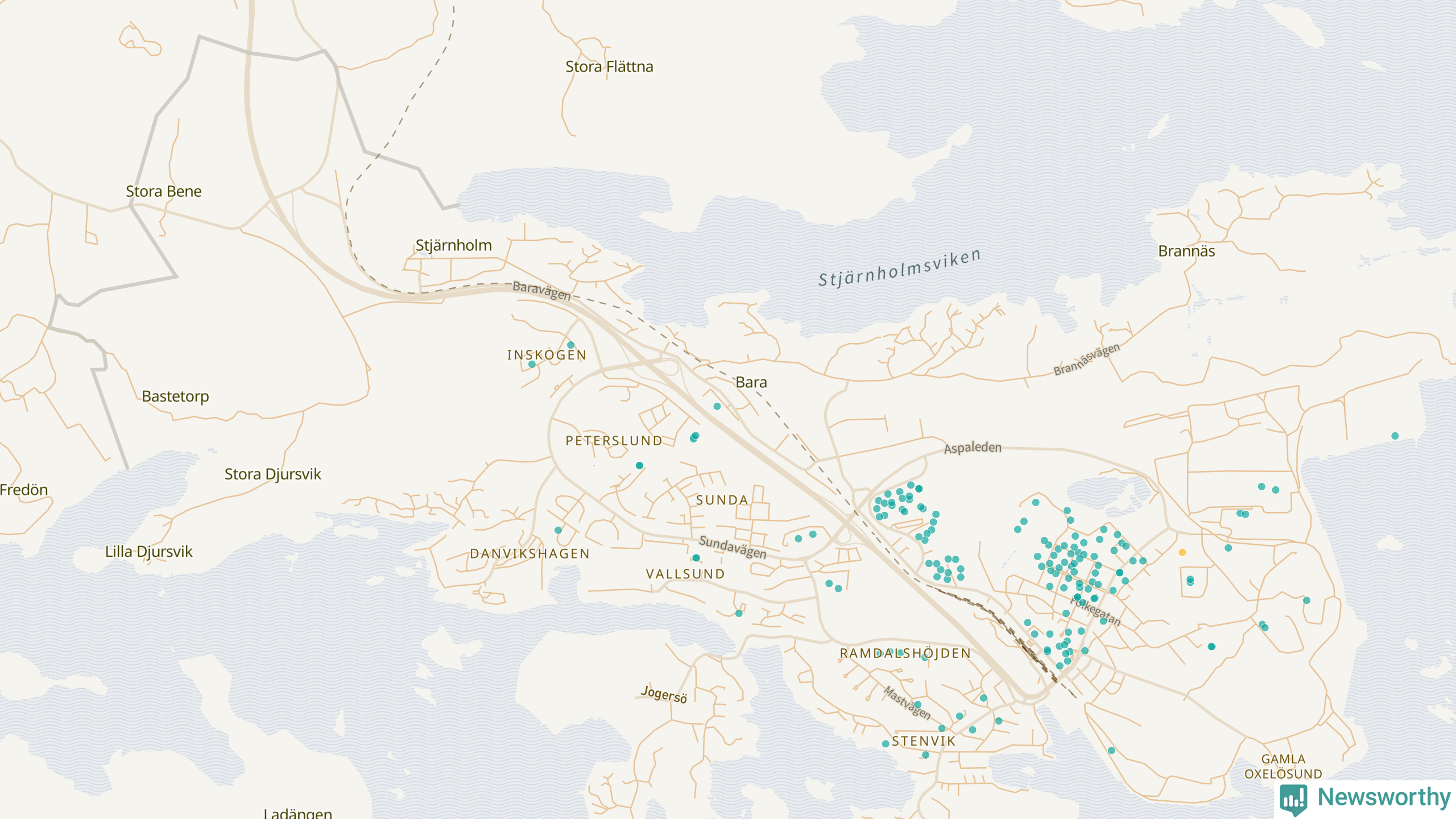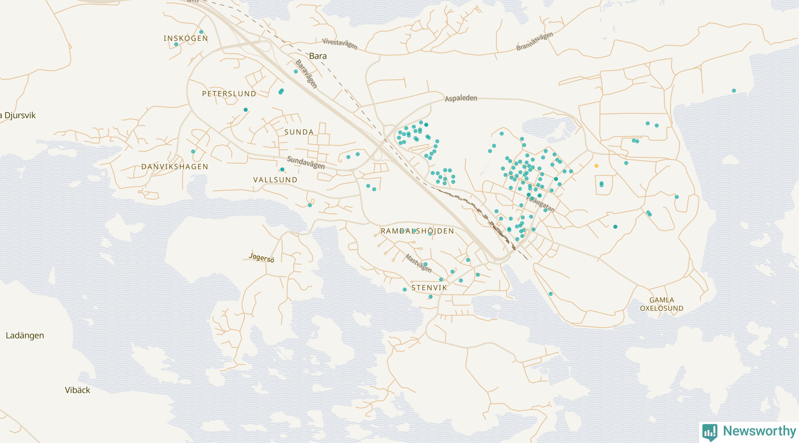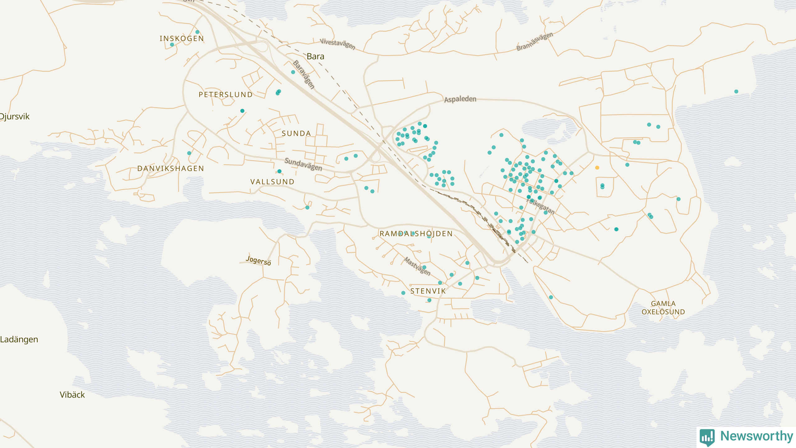 Newsworthy är en nyhetssajt som gör lokal journalistik baserat på data. Vi är datajournalister som analyserar och tolkar världen på siffror, snarare än tyckande.