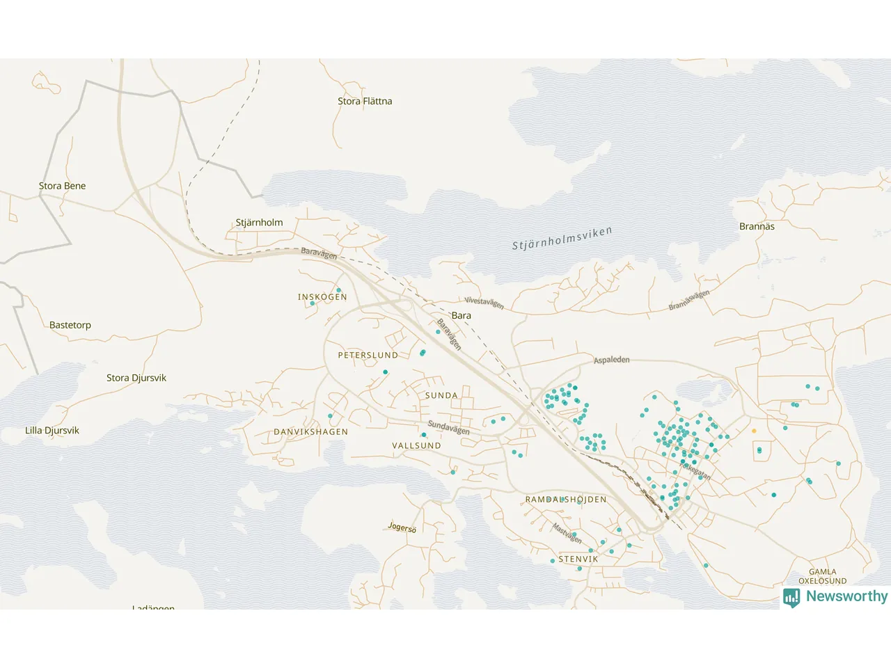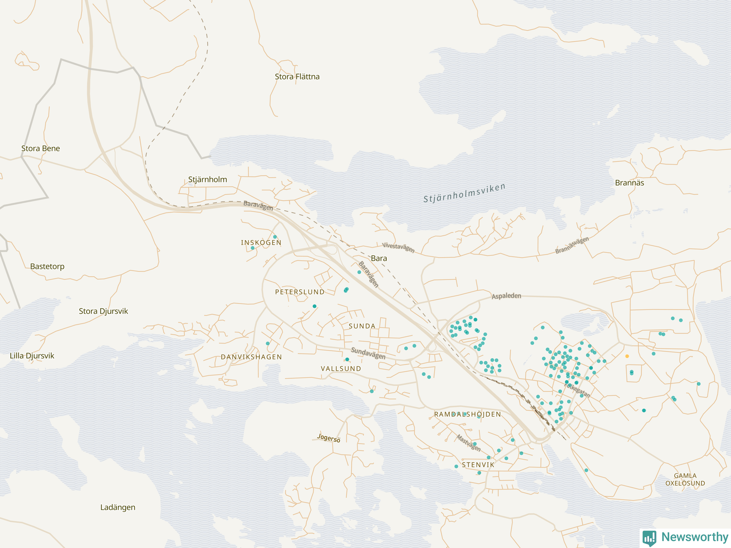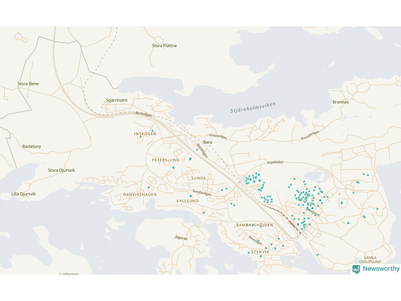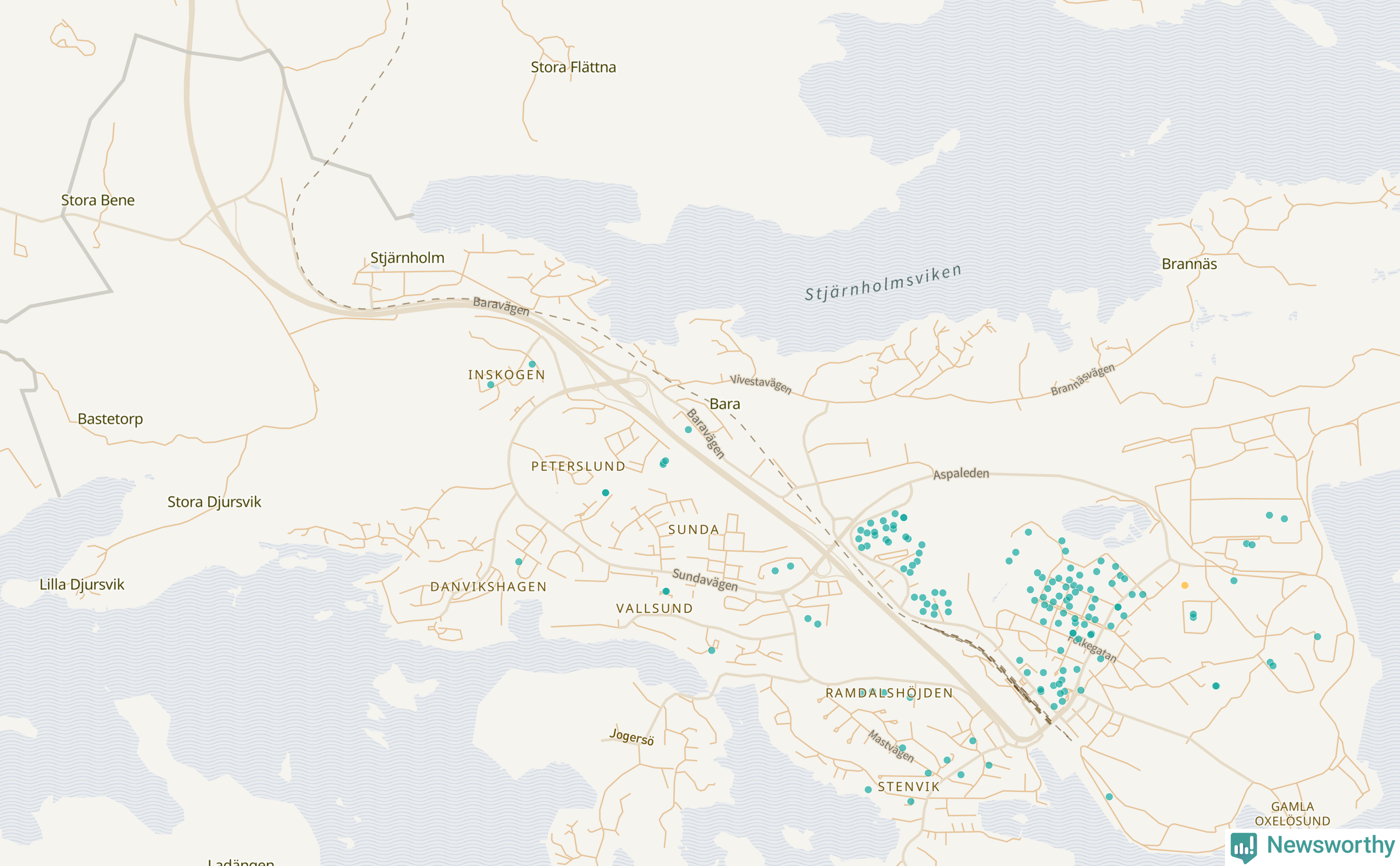 Newsworthy är en nyhetssajt som gör lokal journalistik baserat på data. Vi är datajournalister som analyserar och tolkar världen på siffror, snarare än tyckande.
