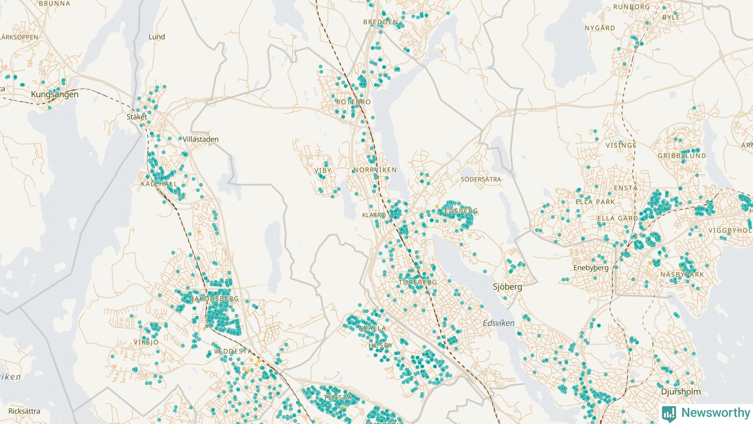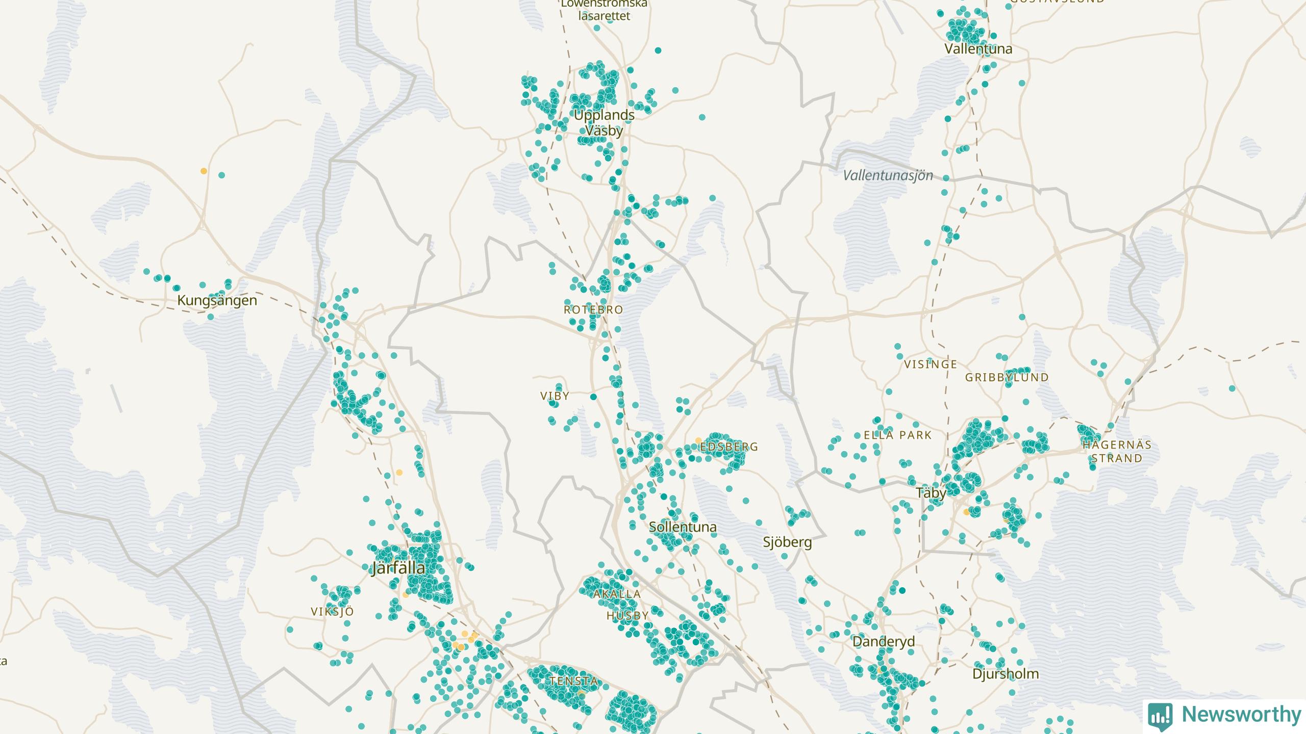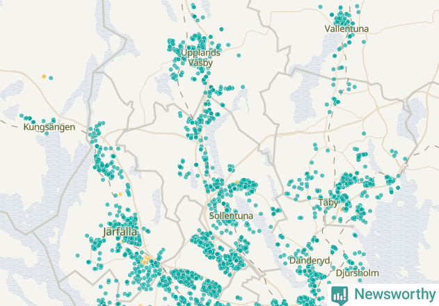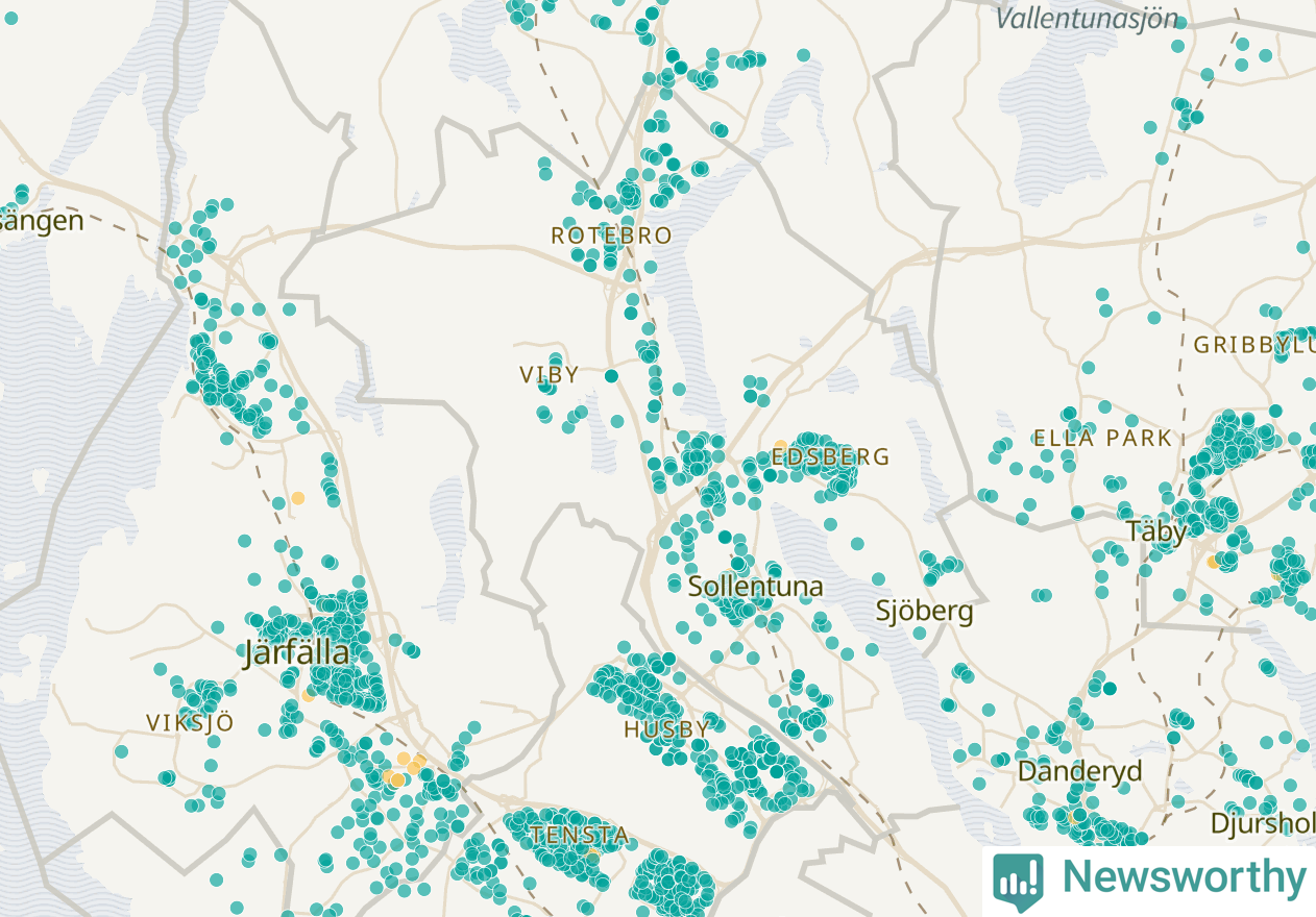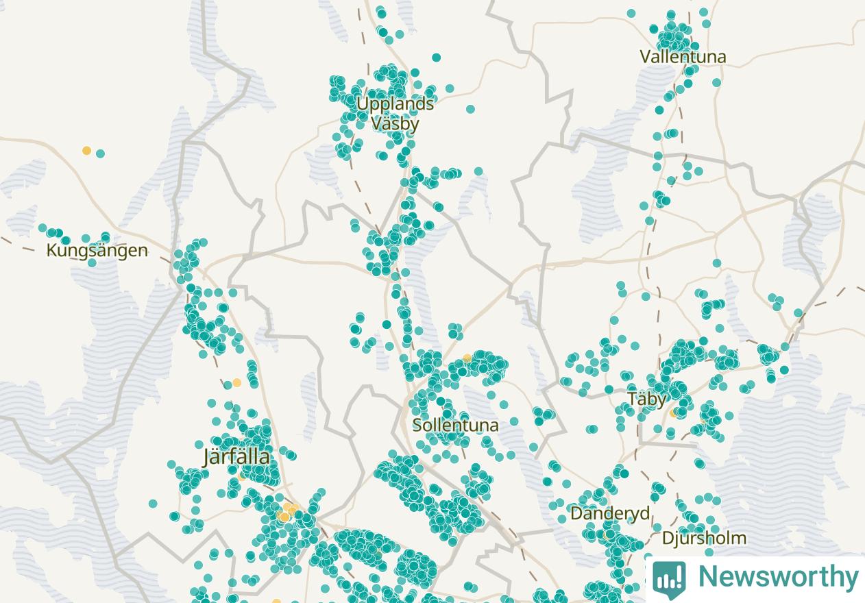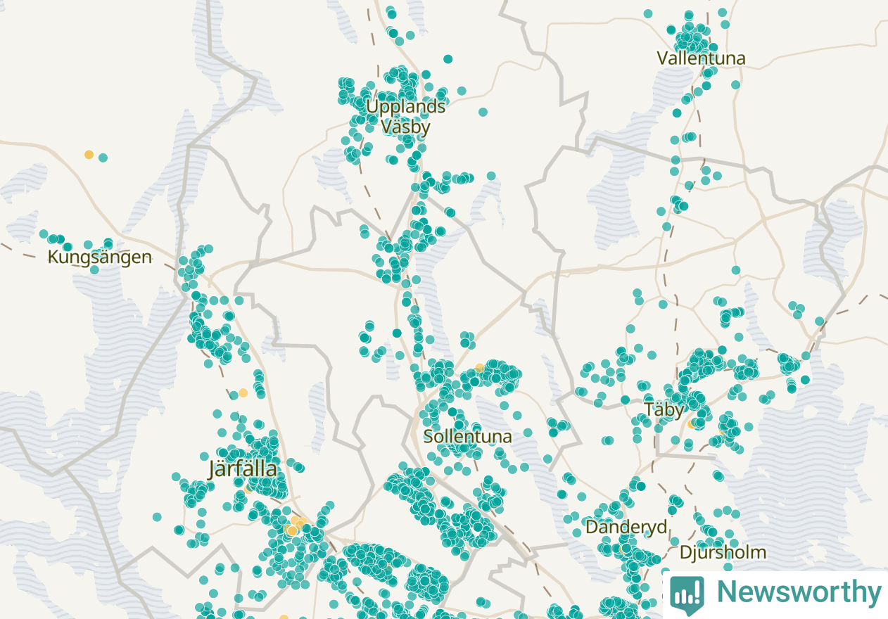 | Upplands Väsby | 277 | 37 741 | 75 % |