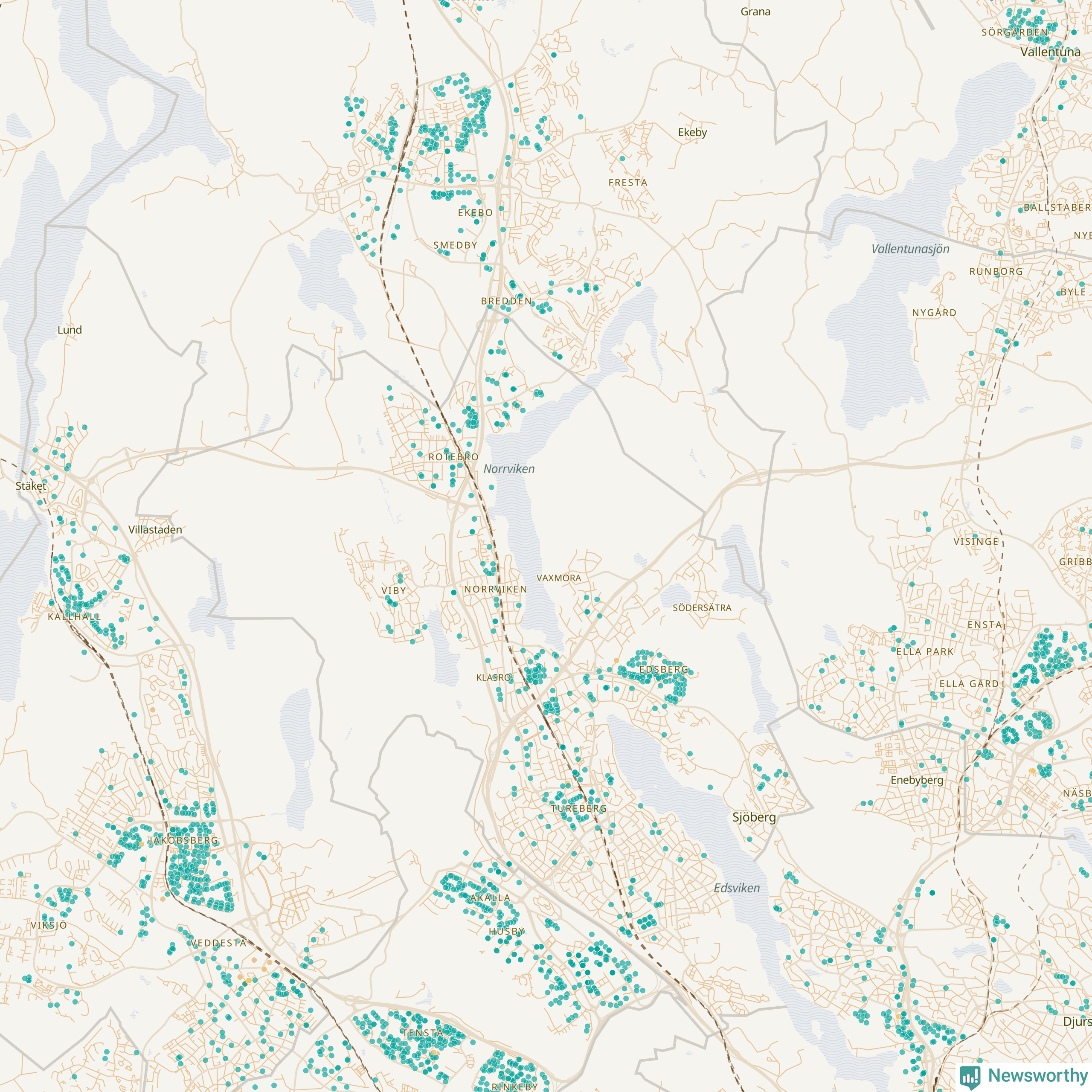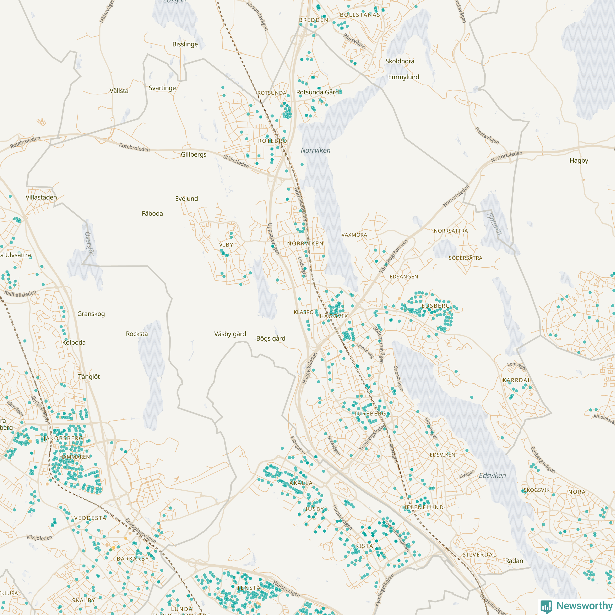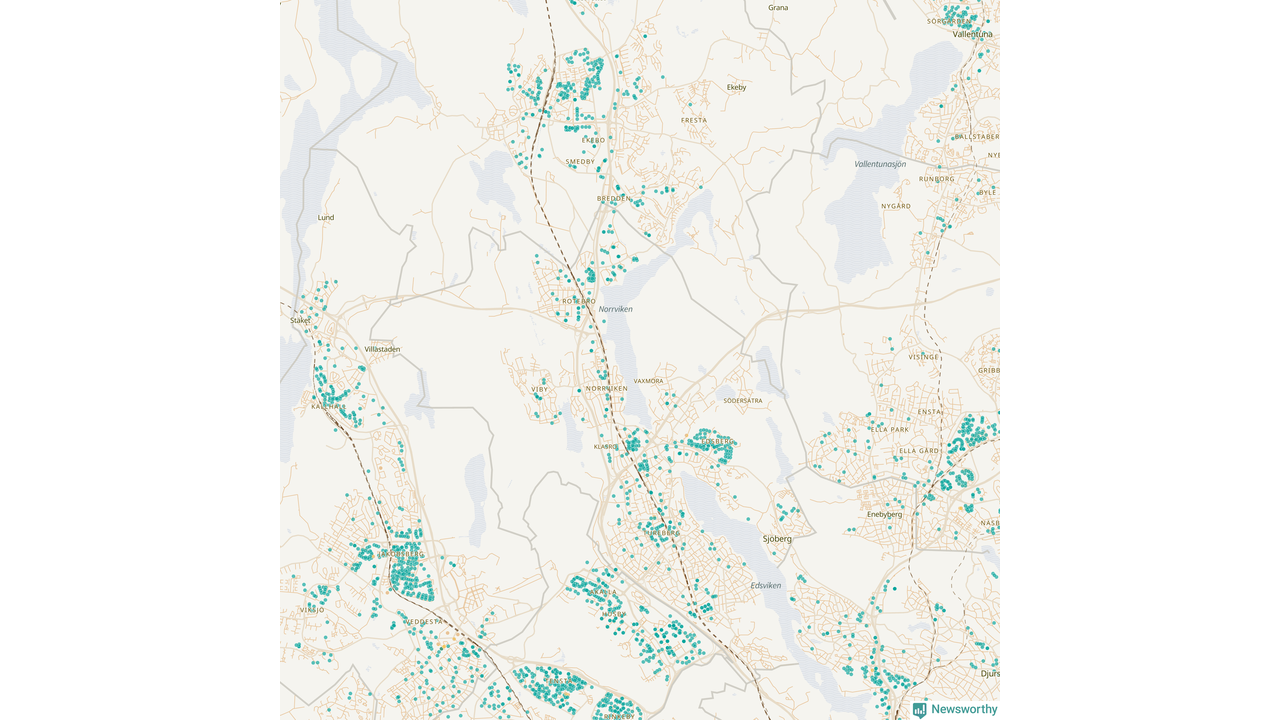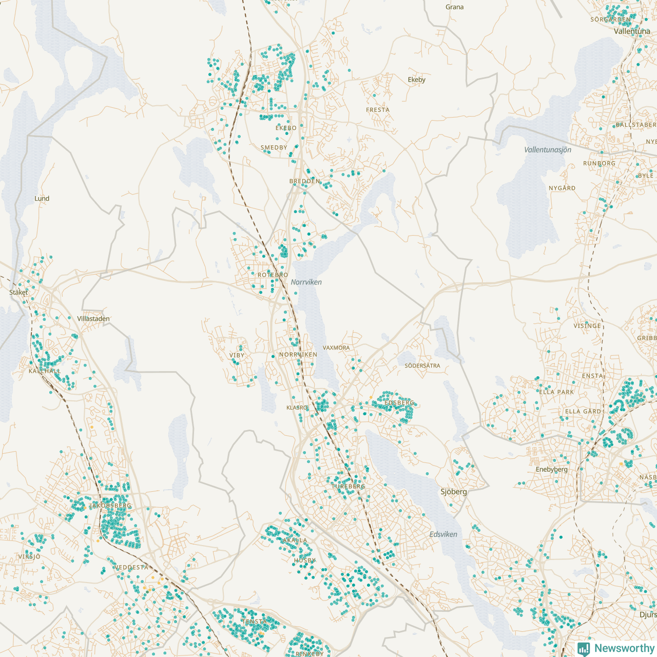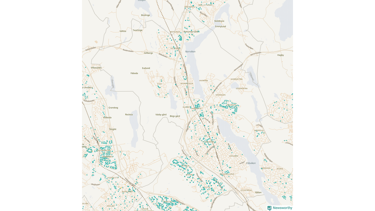 | Upplands Väsby | 277 | 37 741 | 75 % |