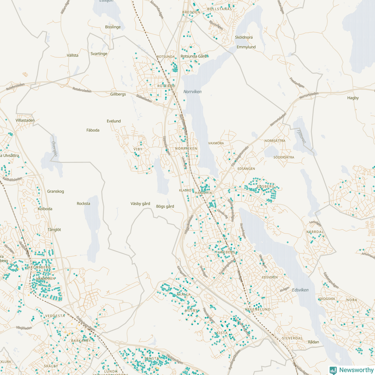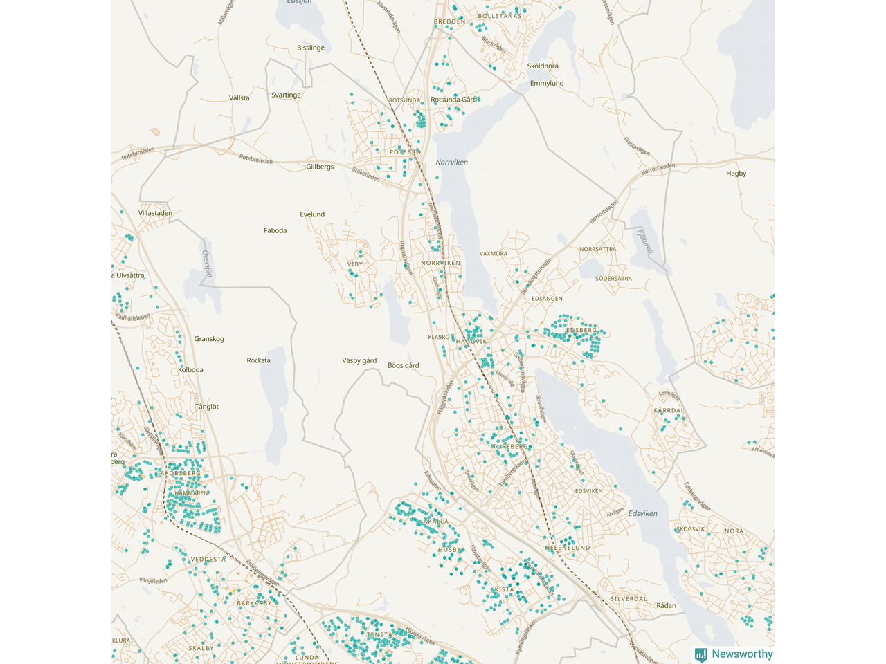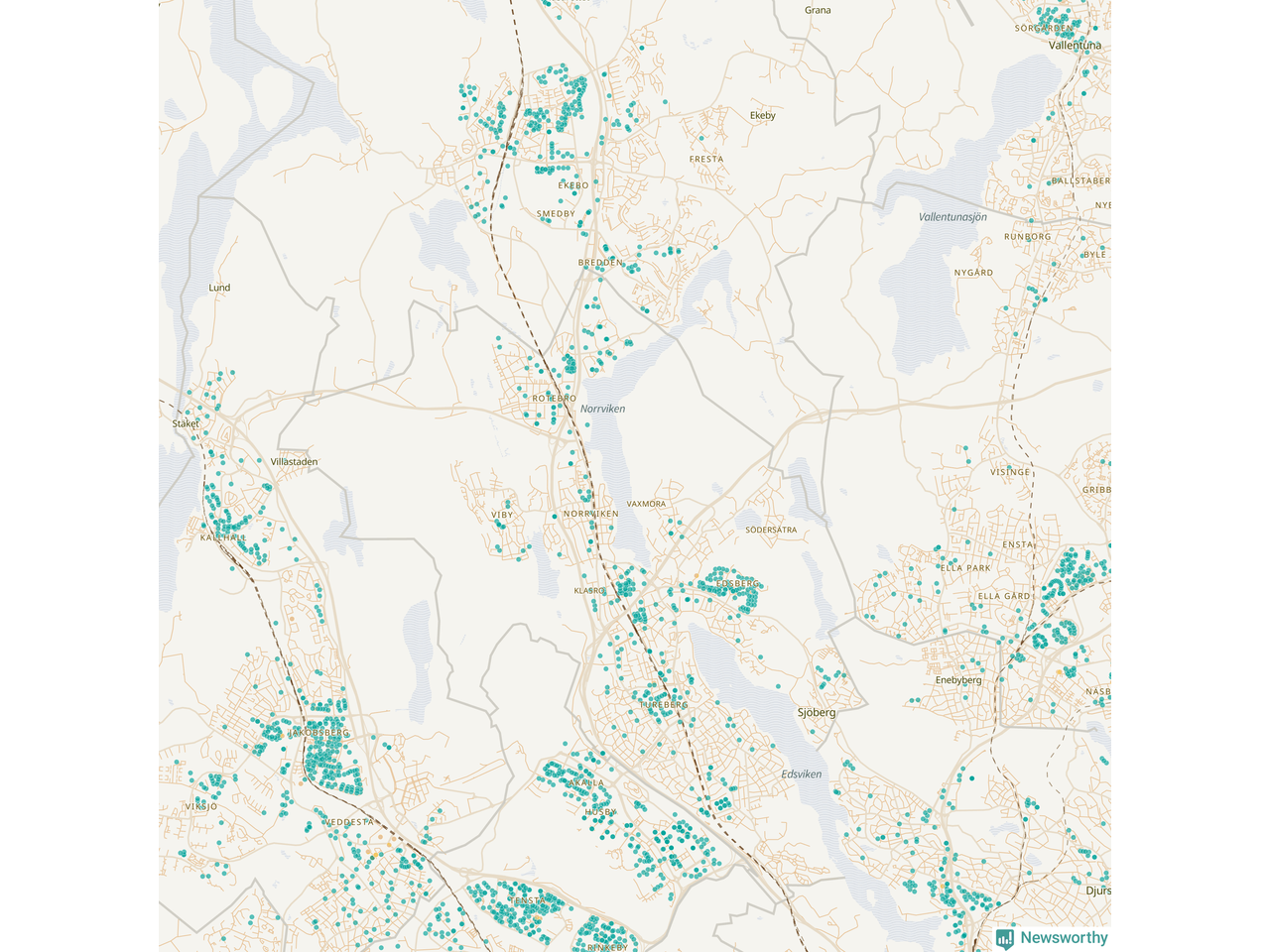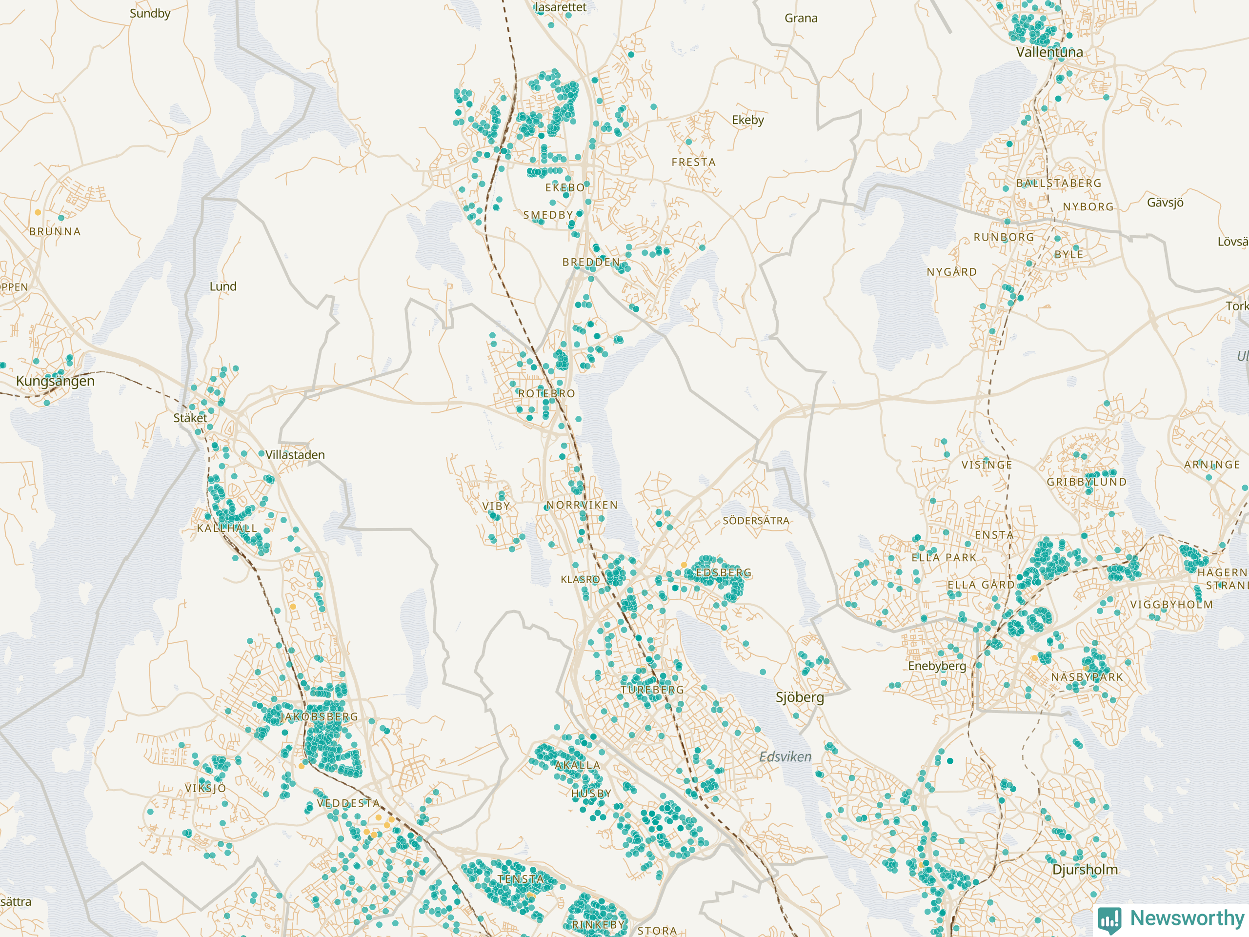| Upplands Väsby | 277 | 37 741 | 75 % |