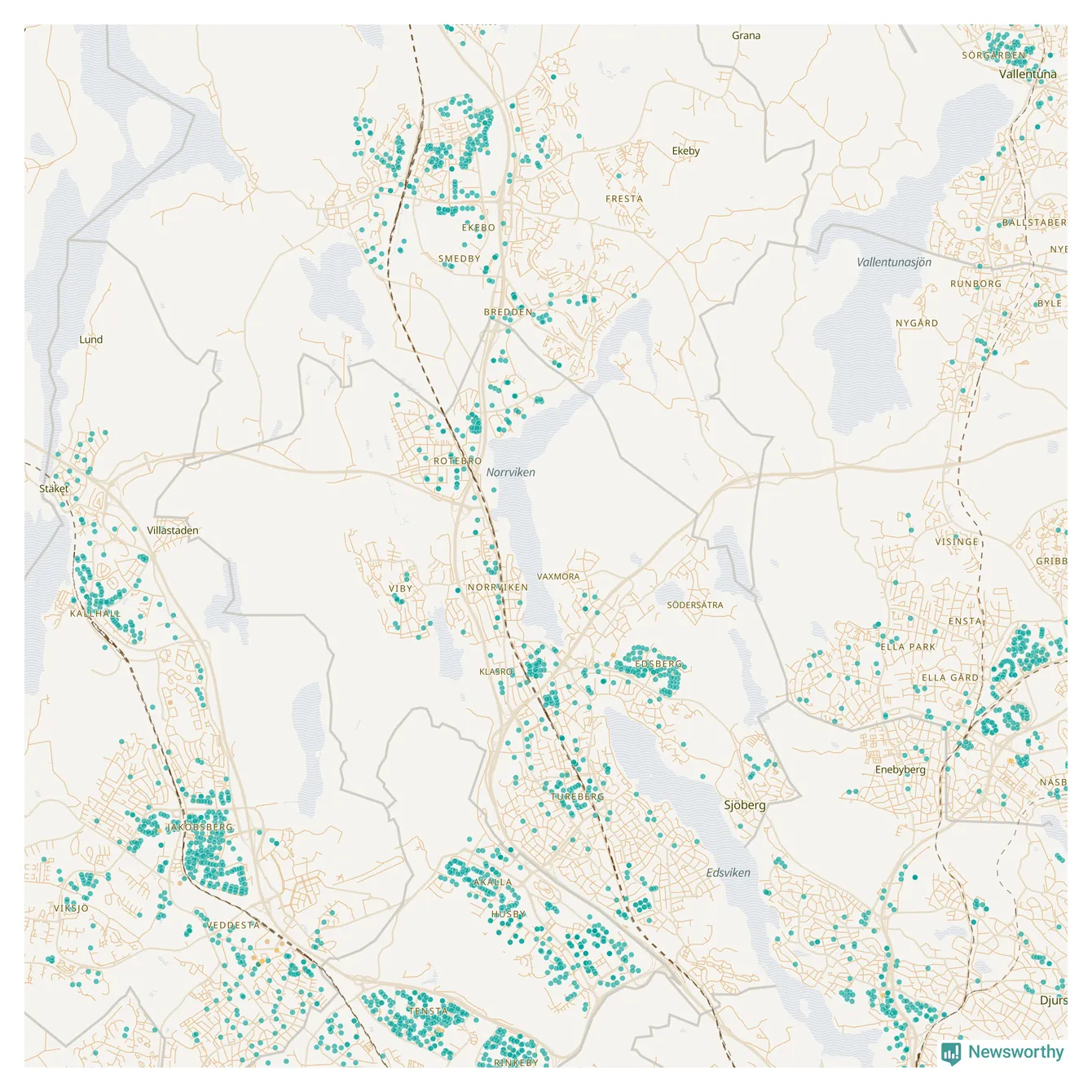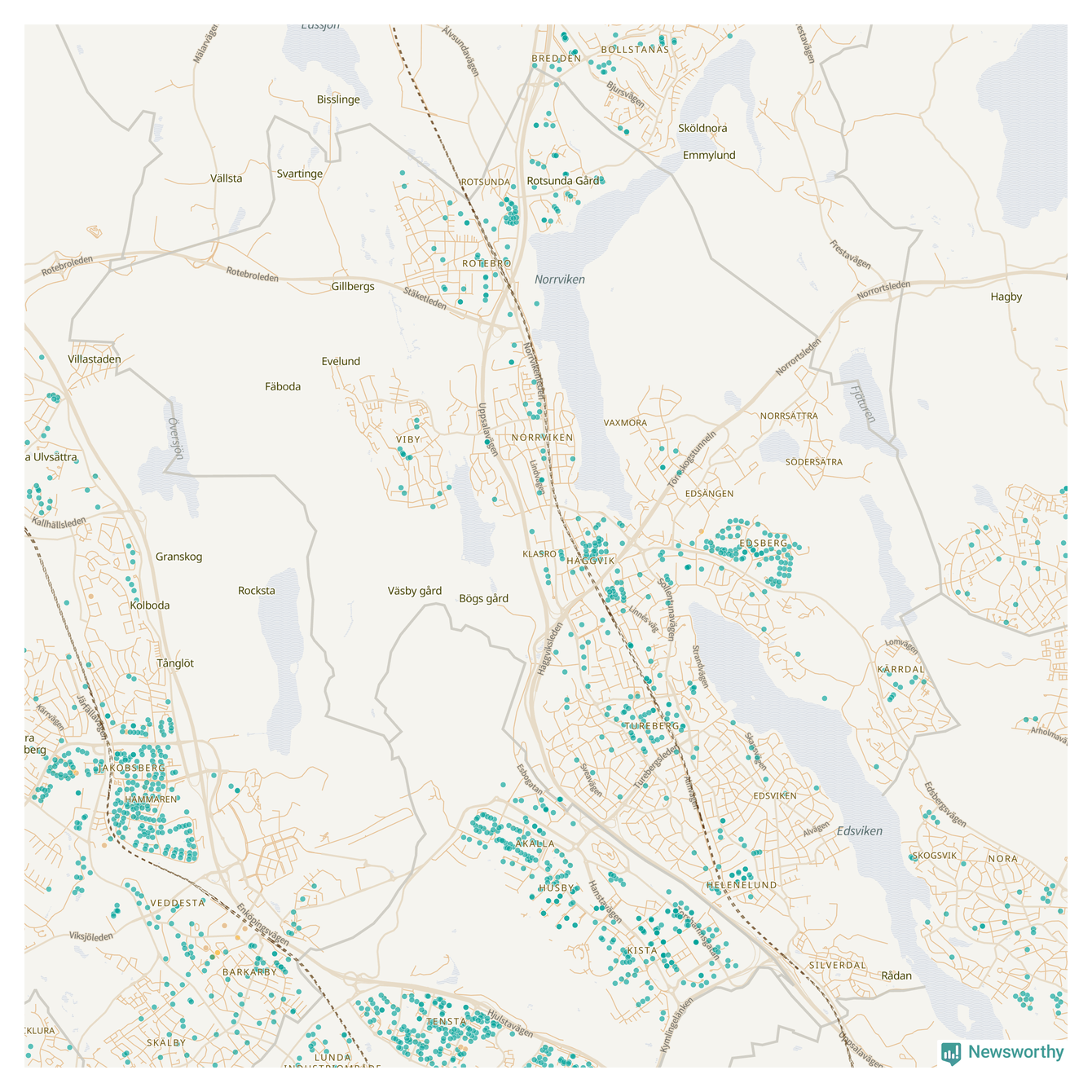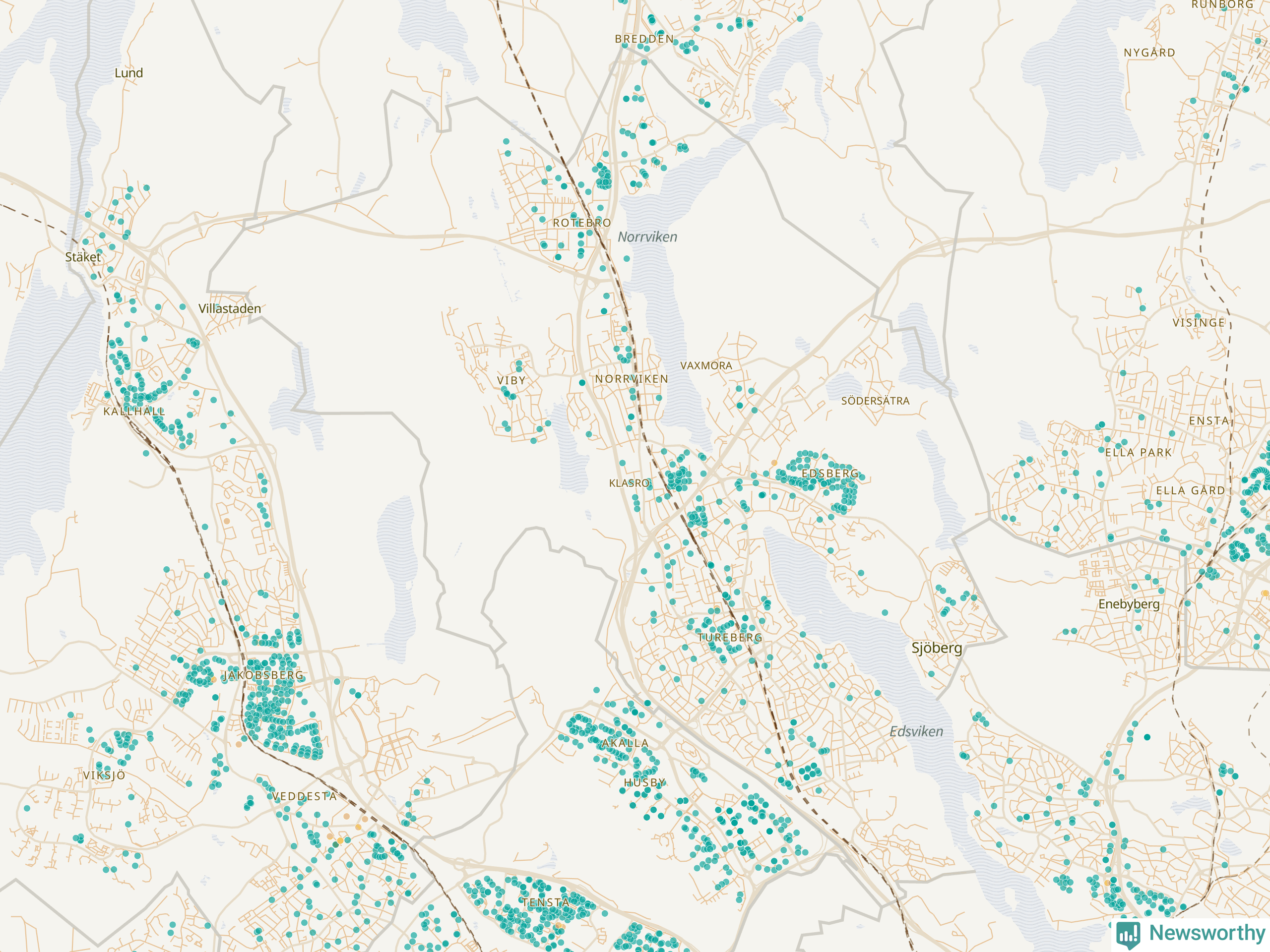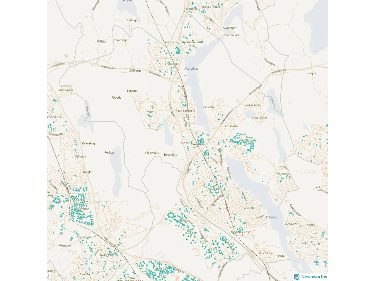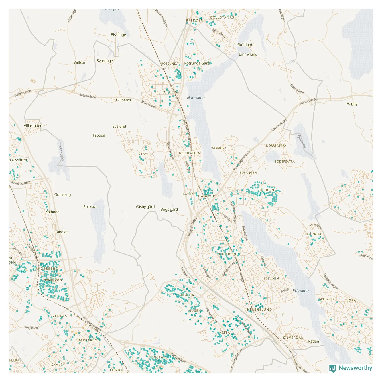| Upplands Väsby | 277 | 37 741 | 75 % |