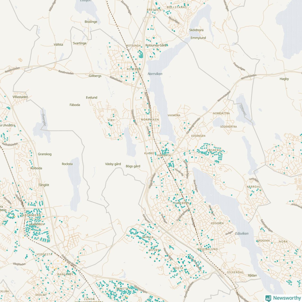 | Upplands-Bro | 54 | 9 141 | 27 % |