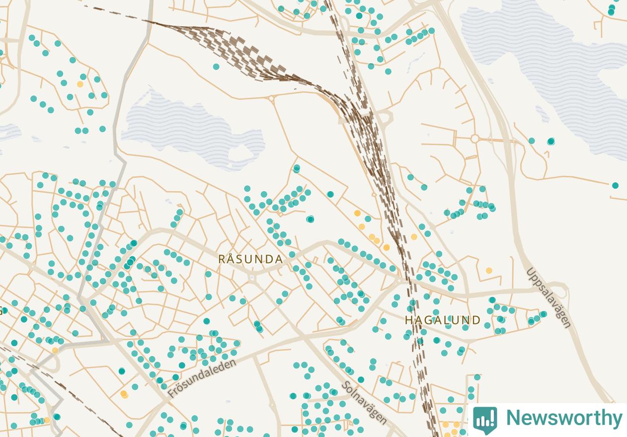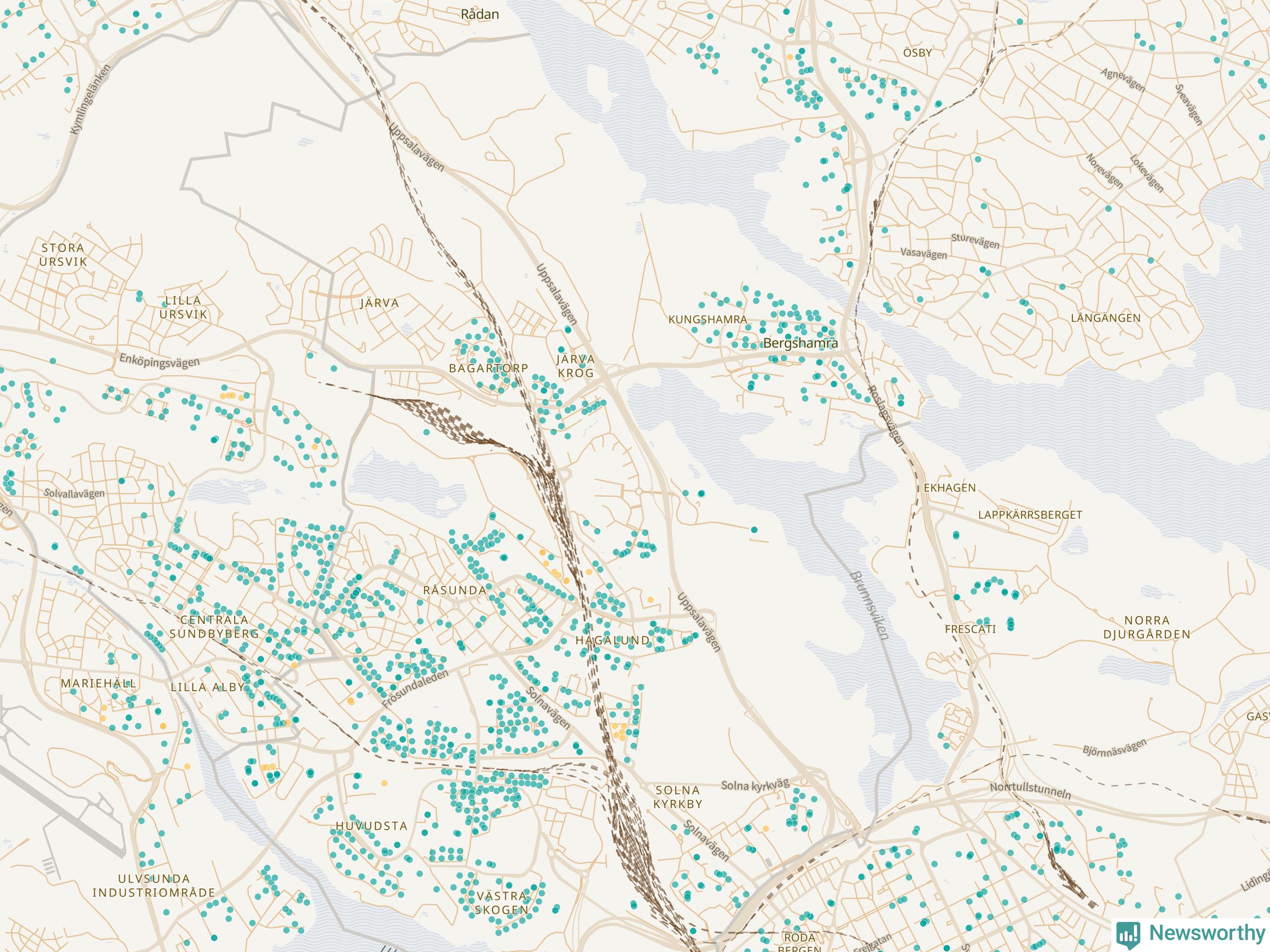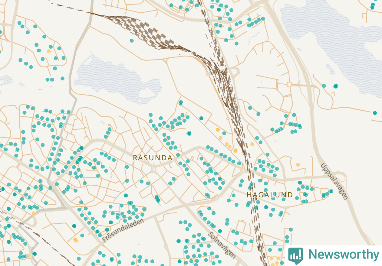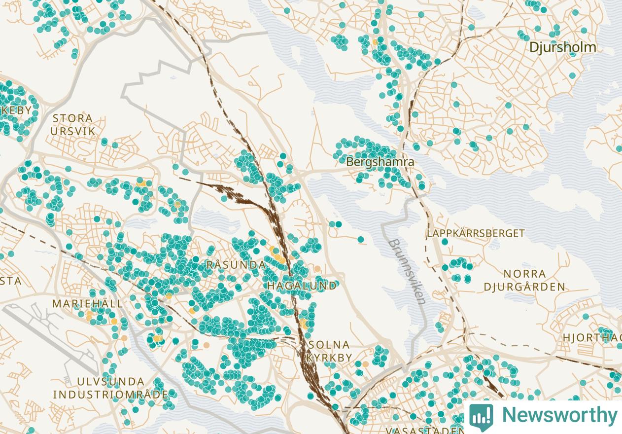 | Upplands Väsby | 277 | 37 741 | 75 % |