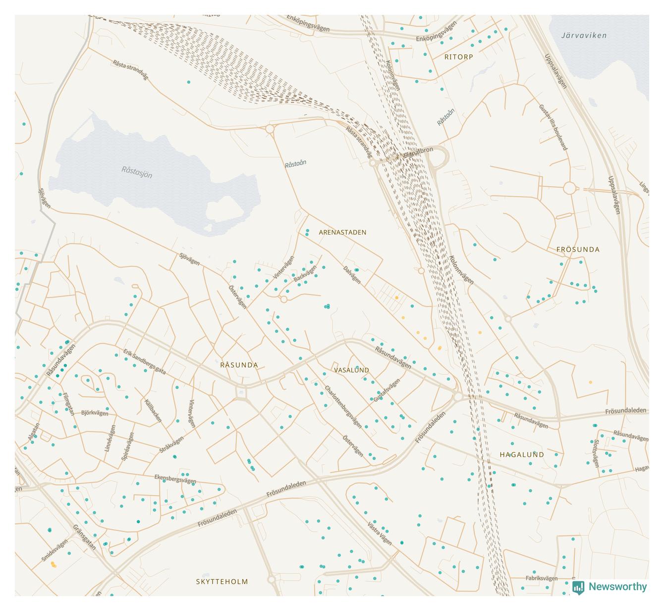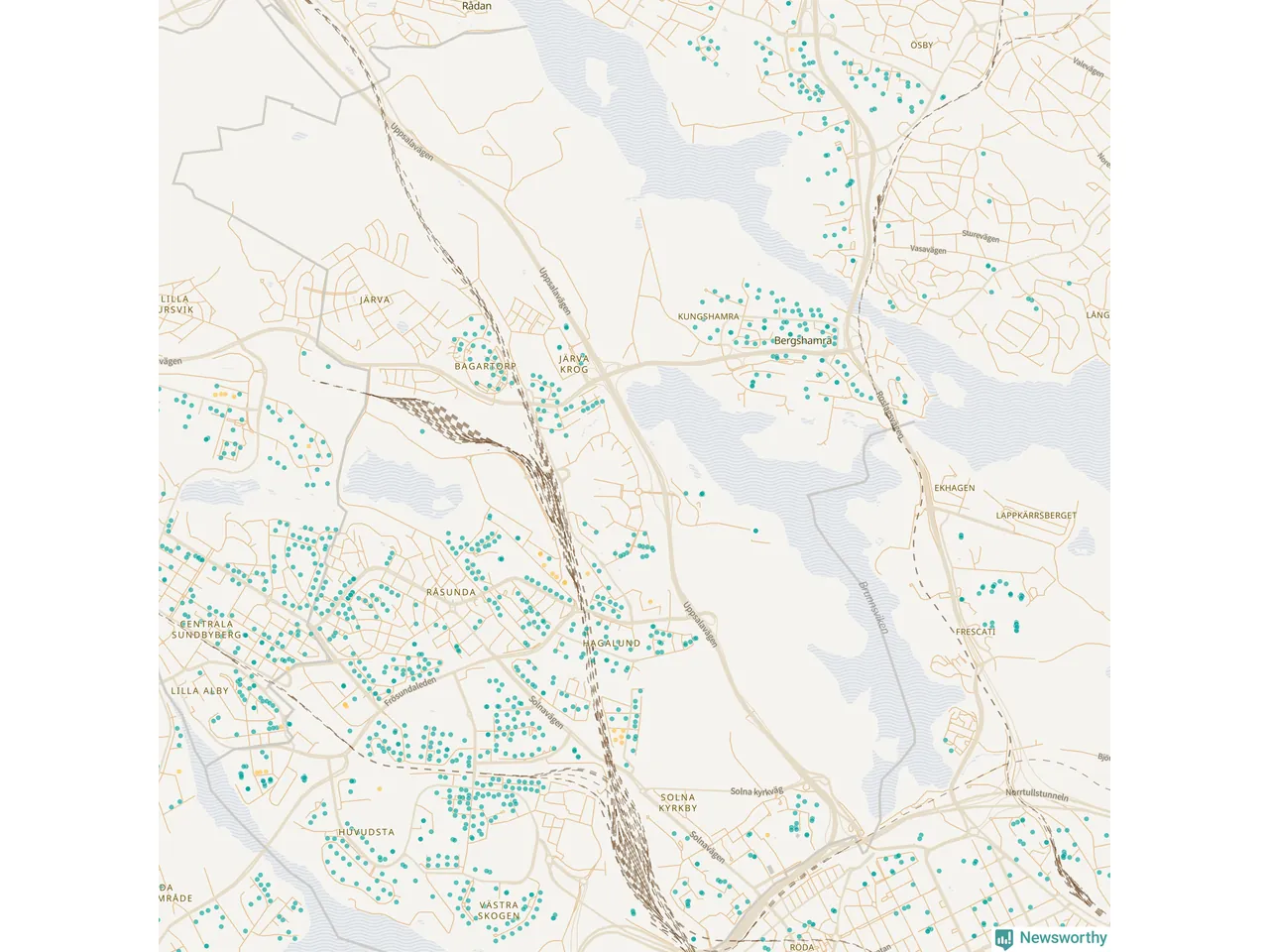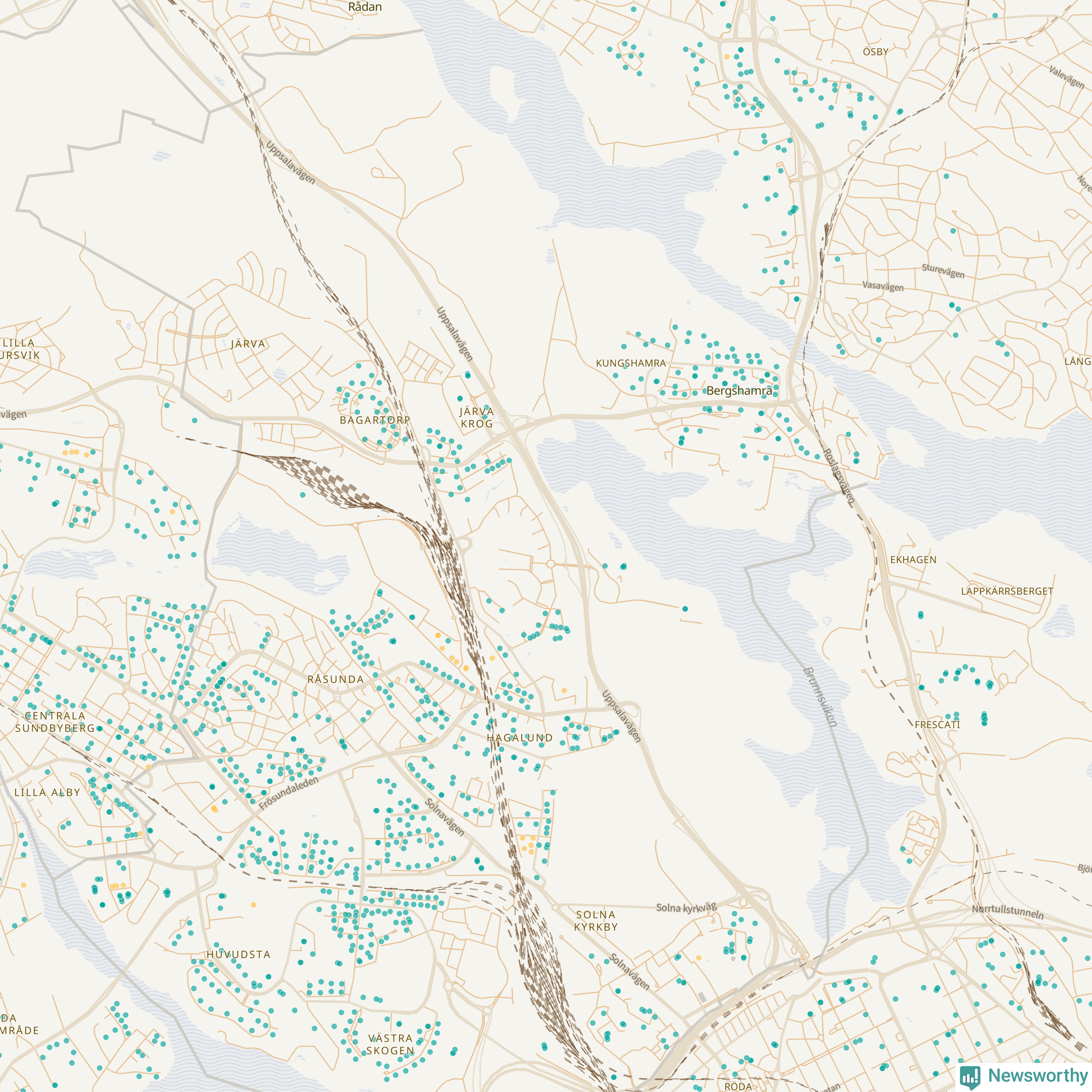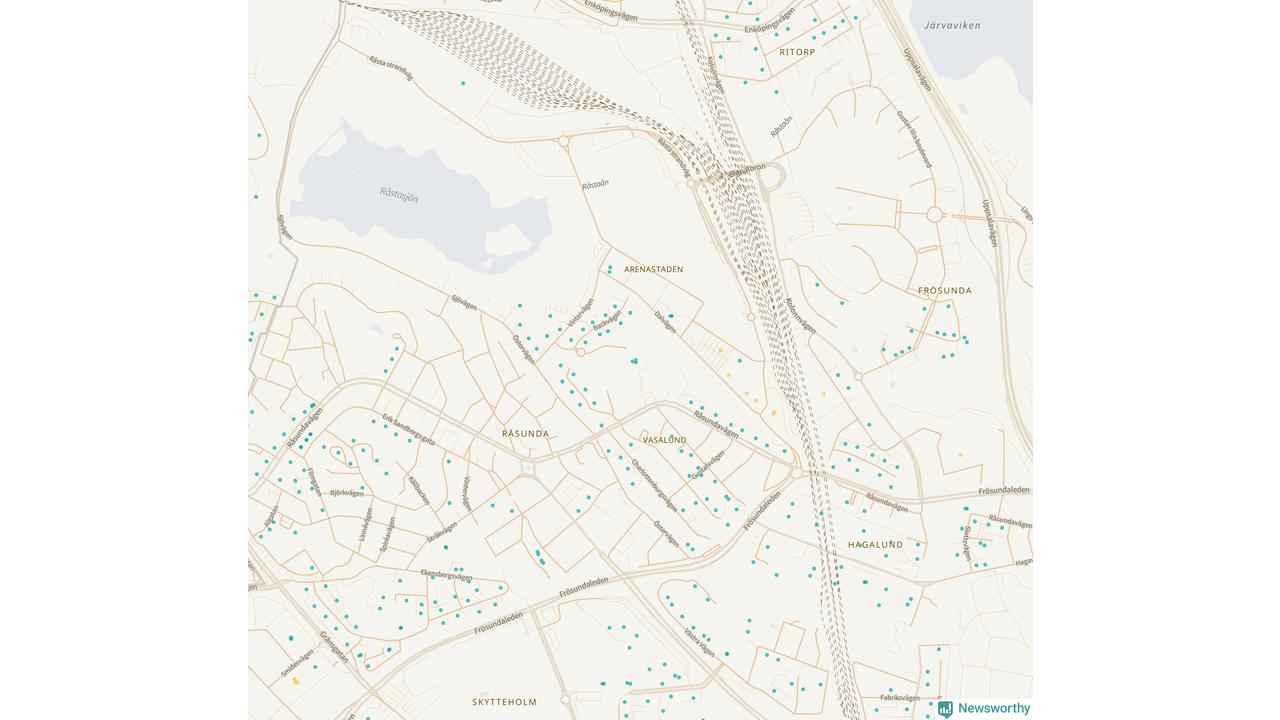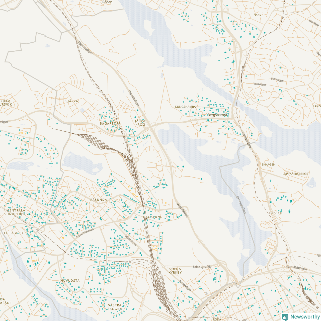 | Upplands Väsby | 277 | 37 741 | 75 % |