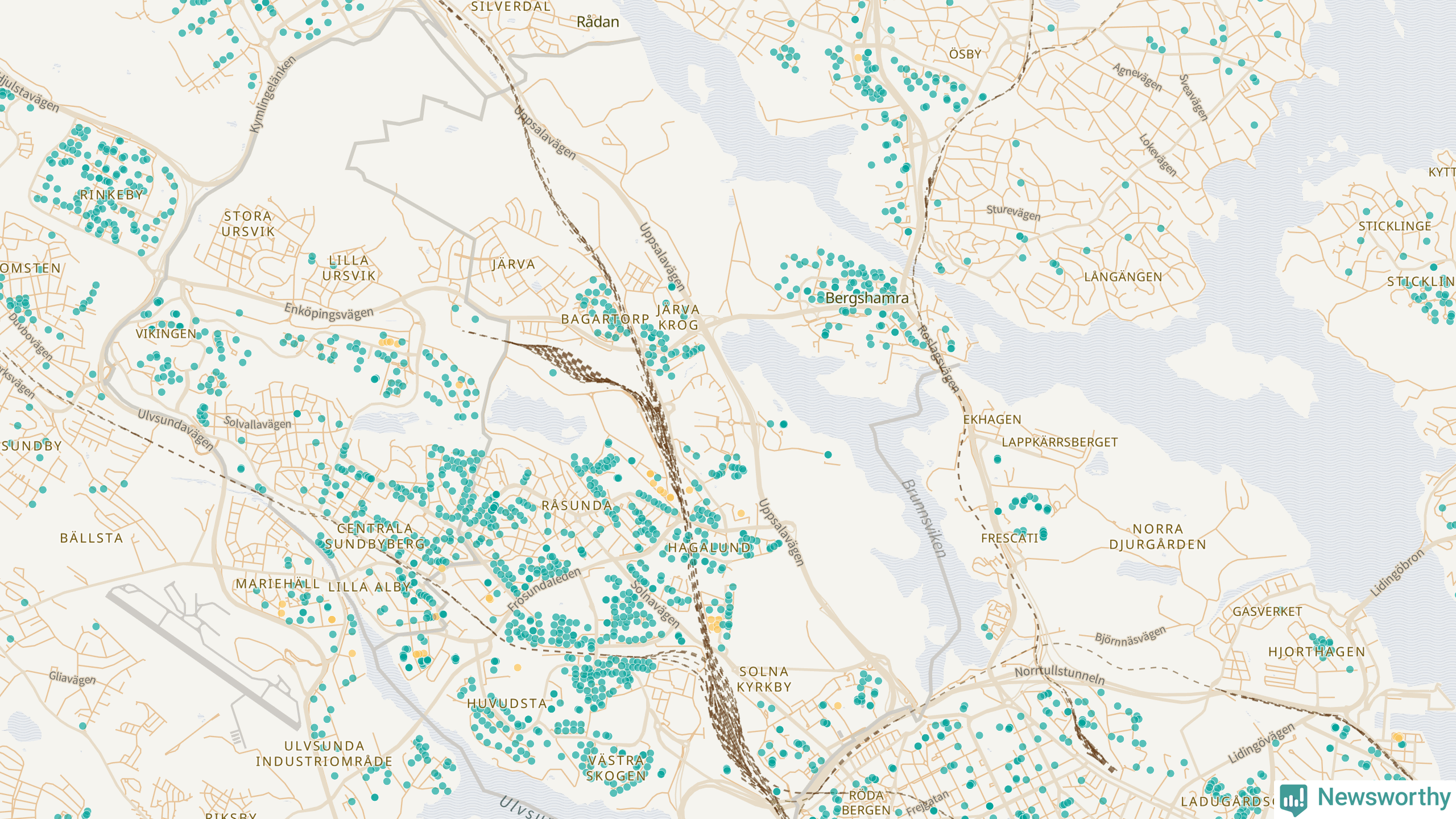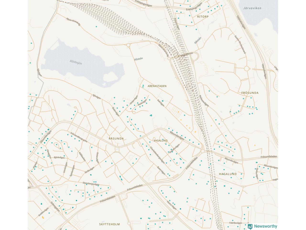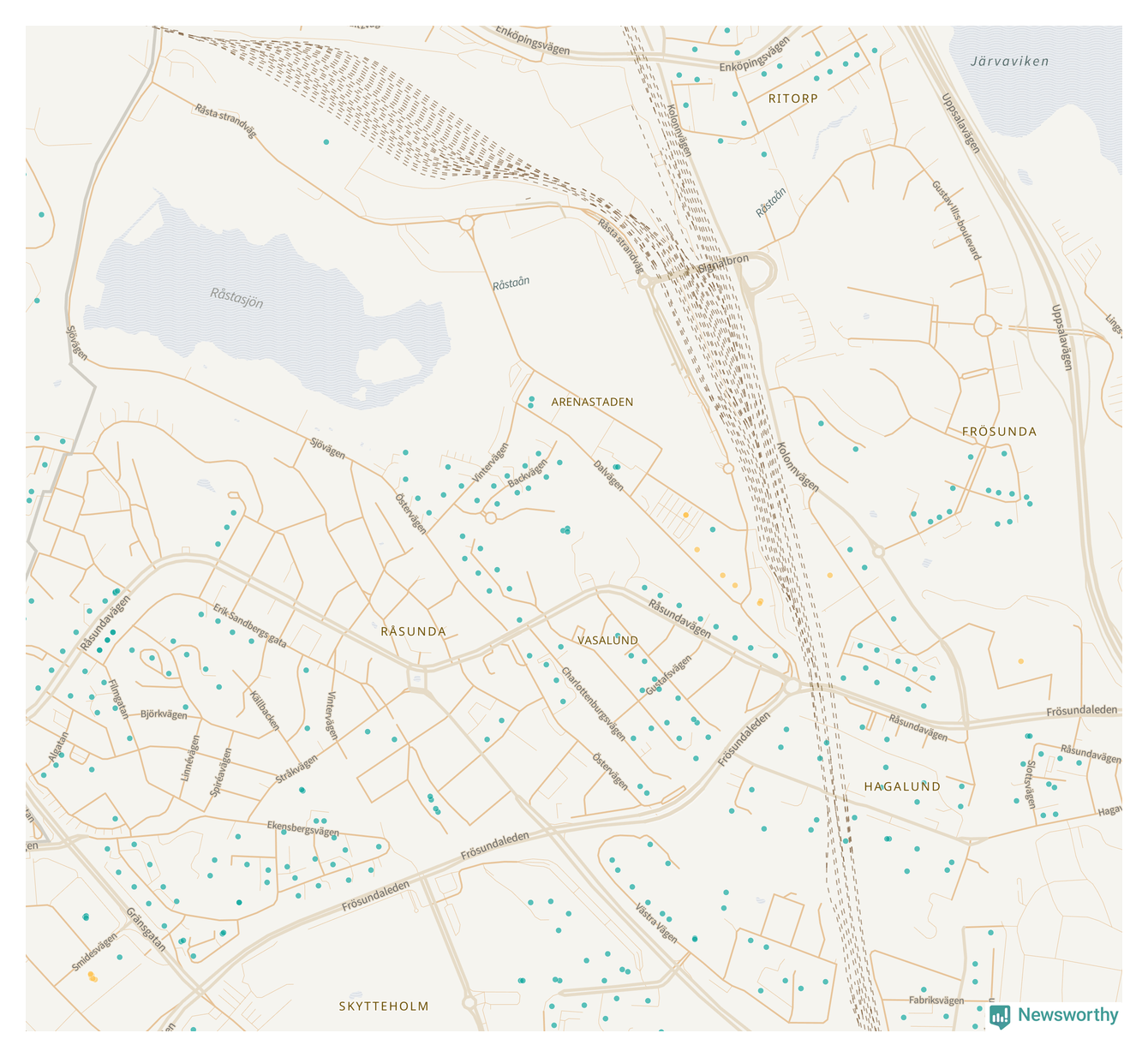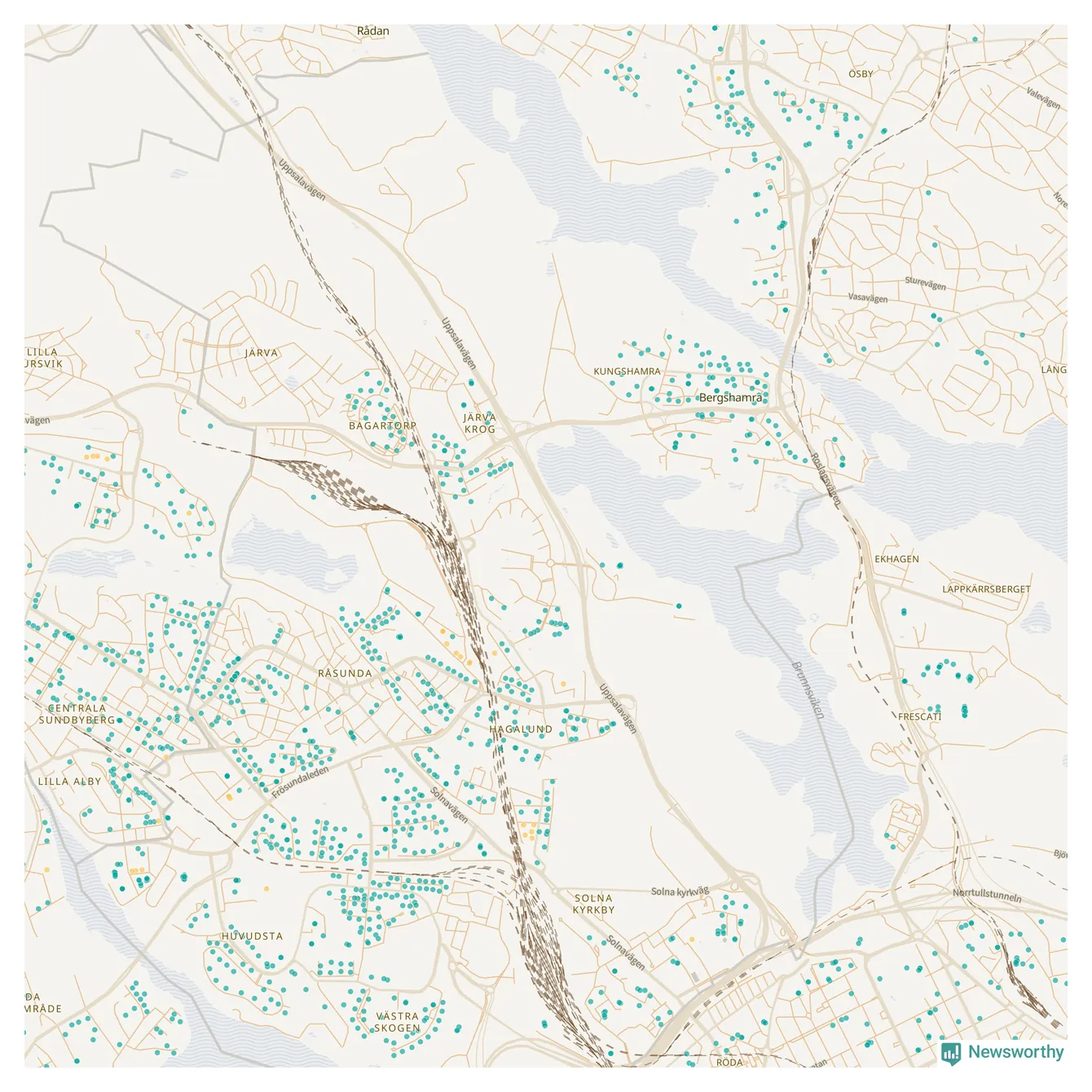 | Upplands Väsby | 277 | 37 741 | 75 % |