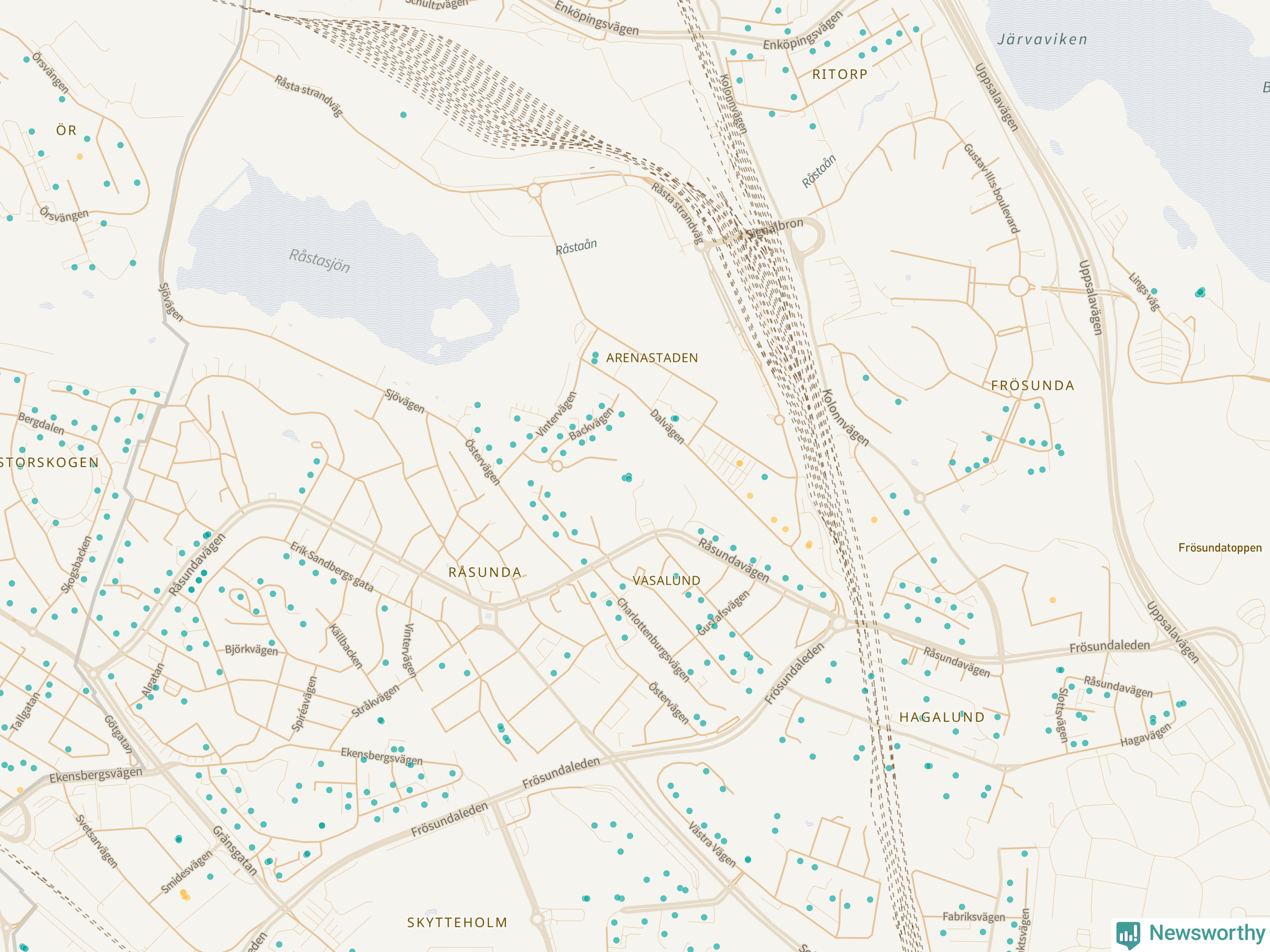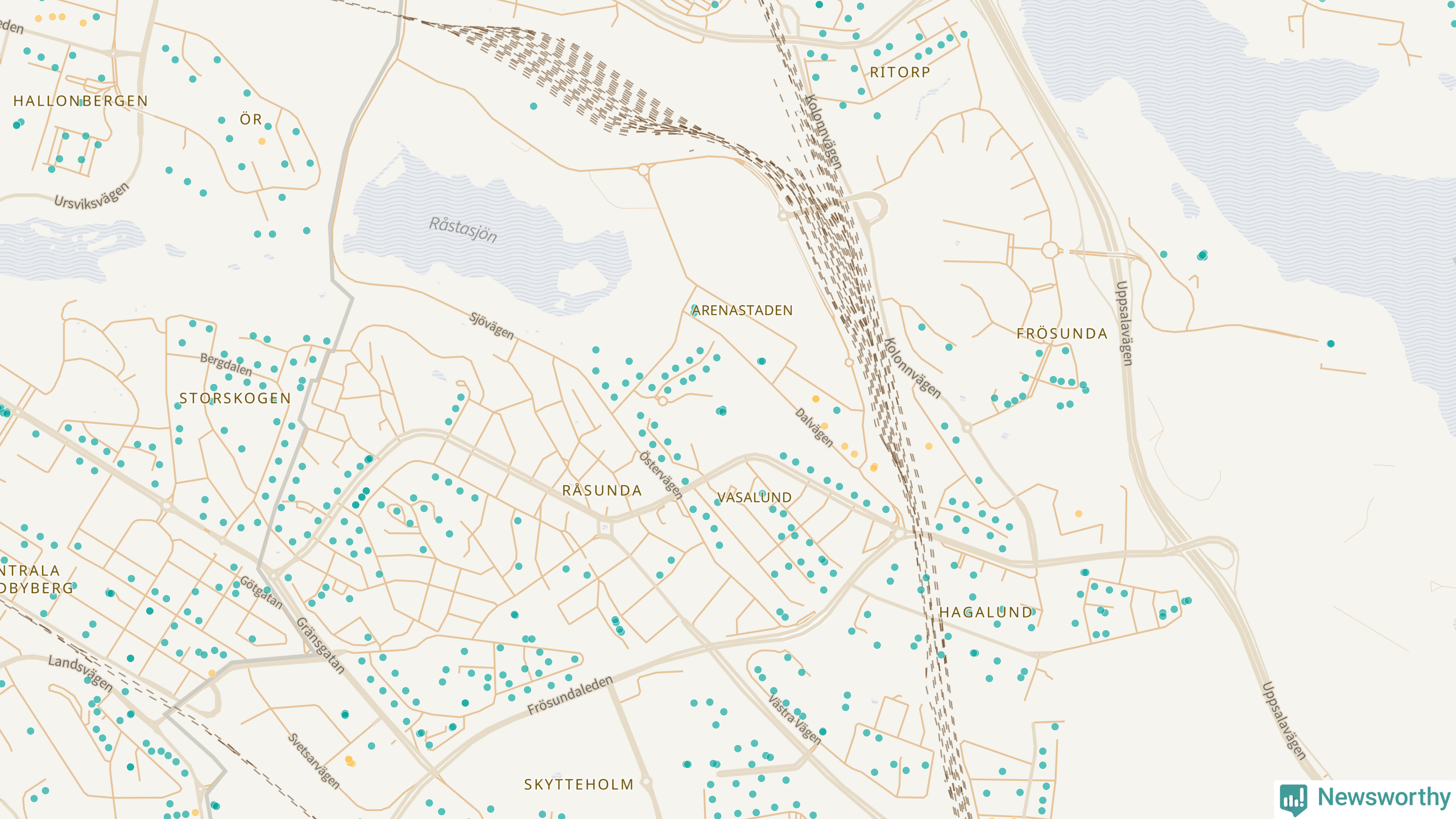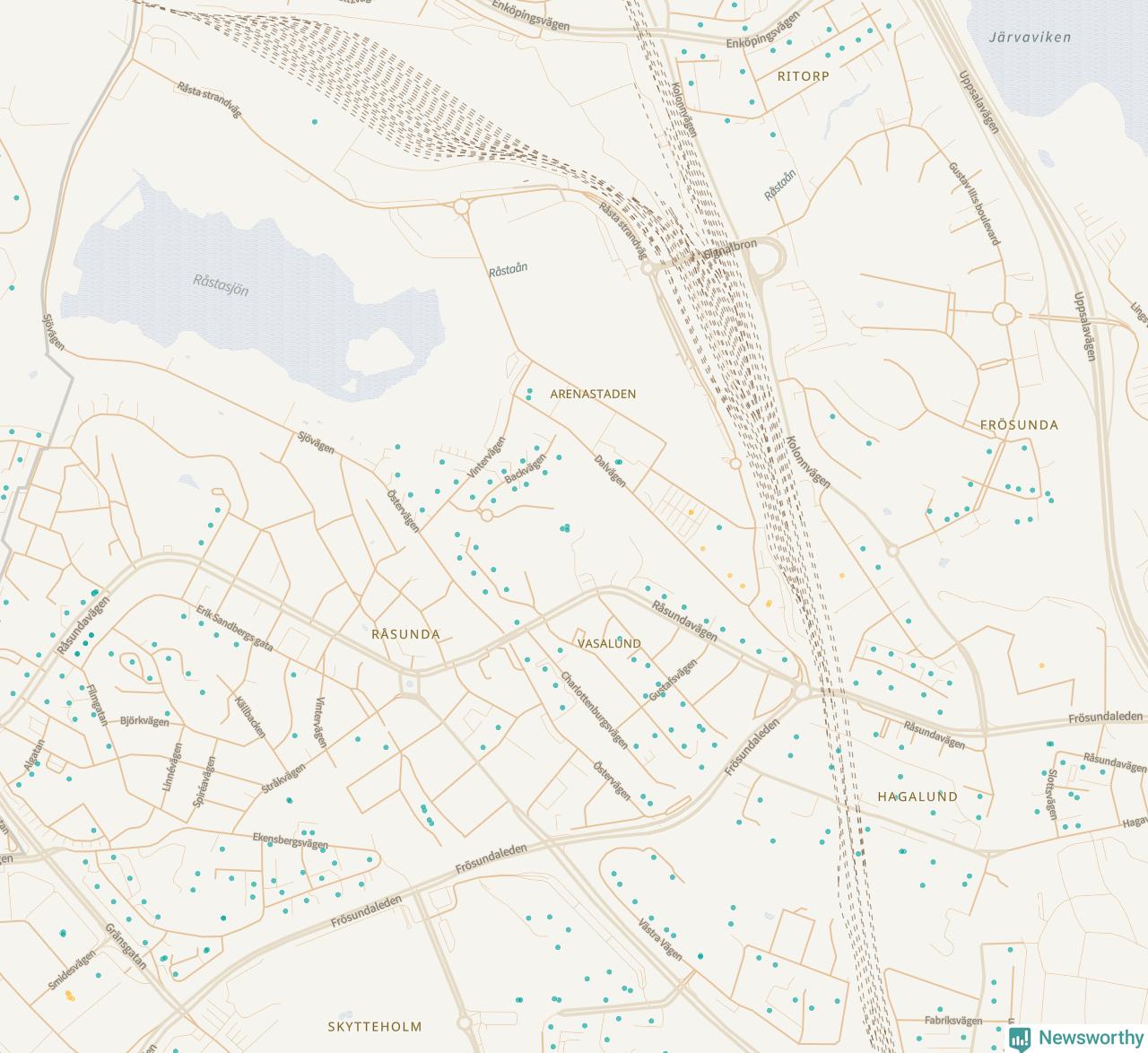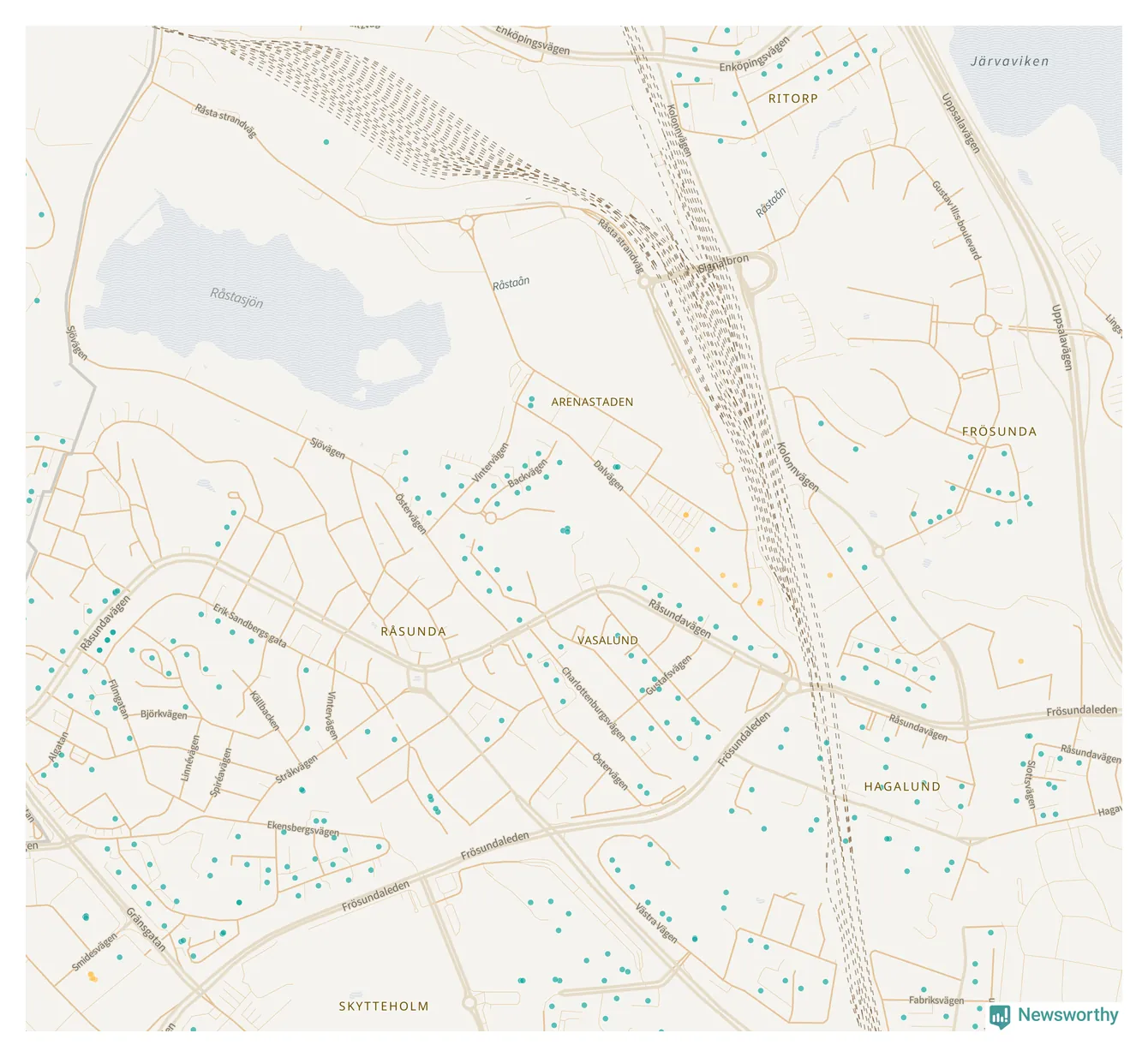| Upplands Väsby | 277 | 37 741 | 75 % |