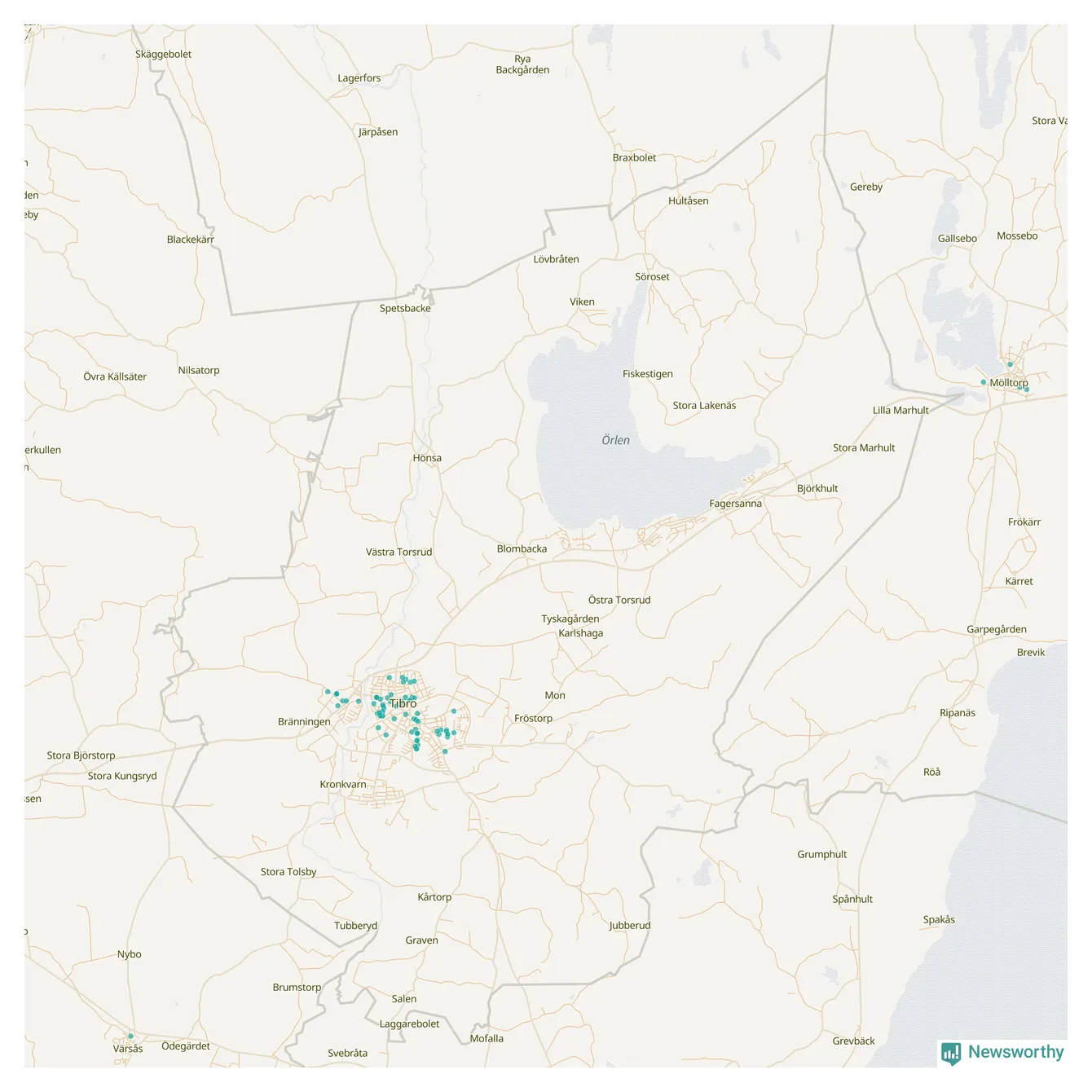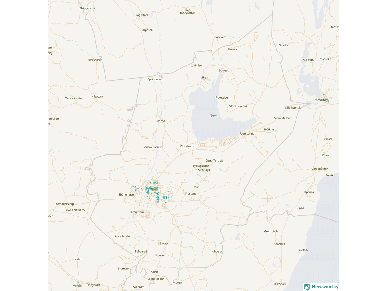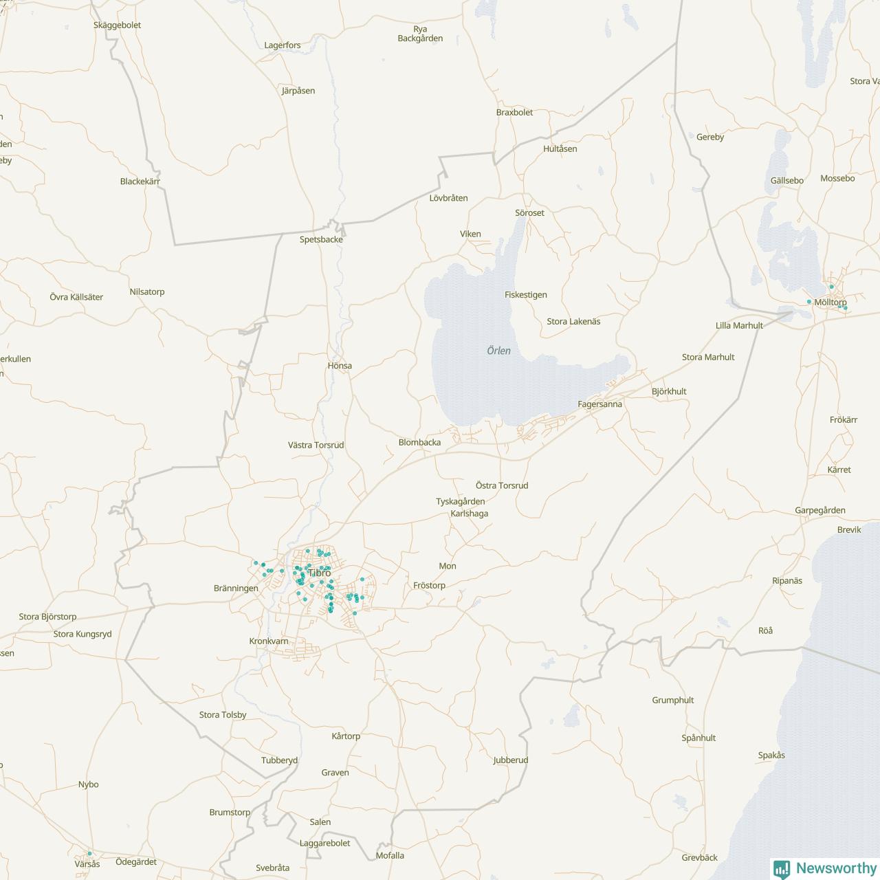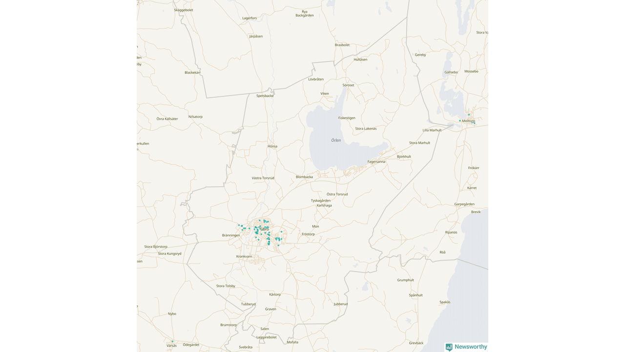 | Töreboda | 59 | 5 449 | 60 % |