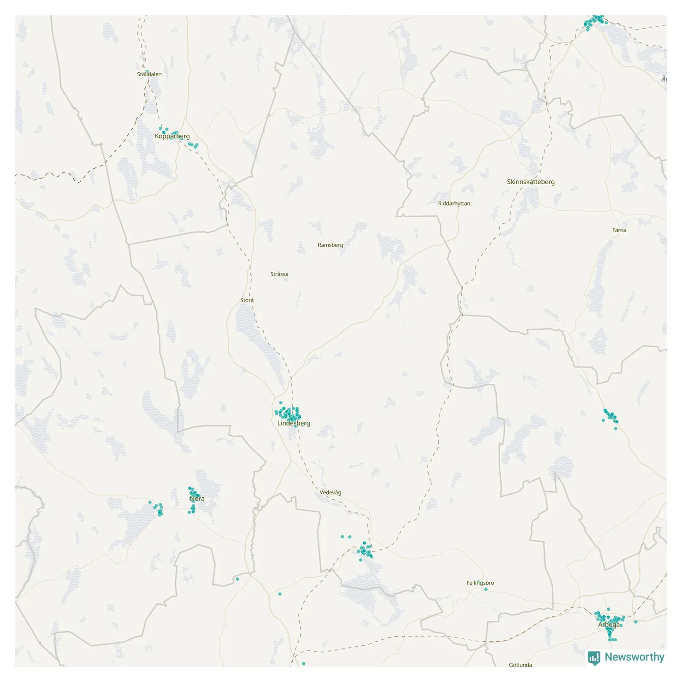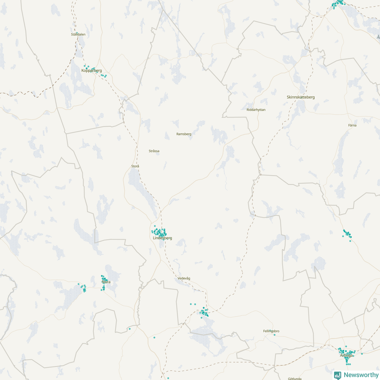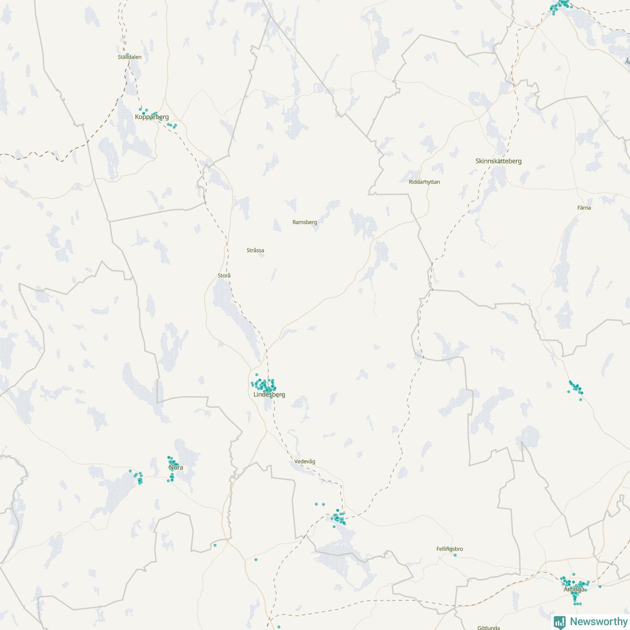 Karta över Lindesbergs kommun