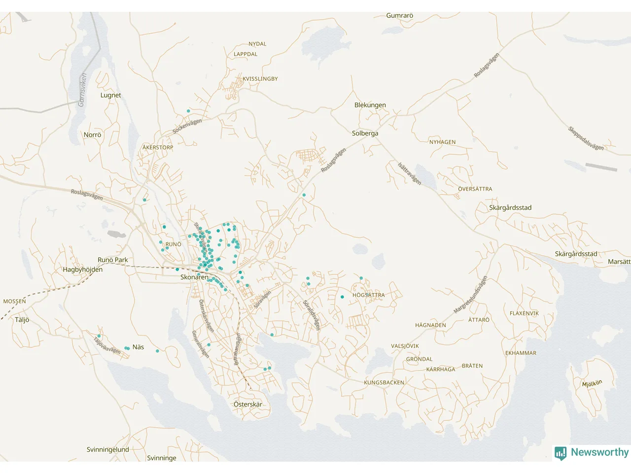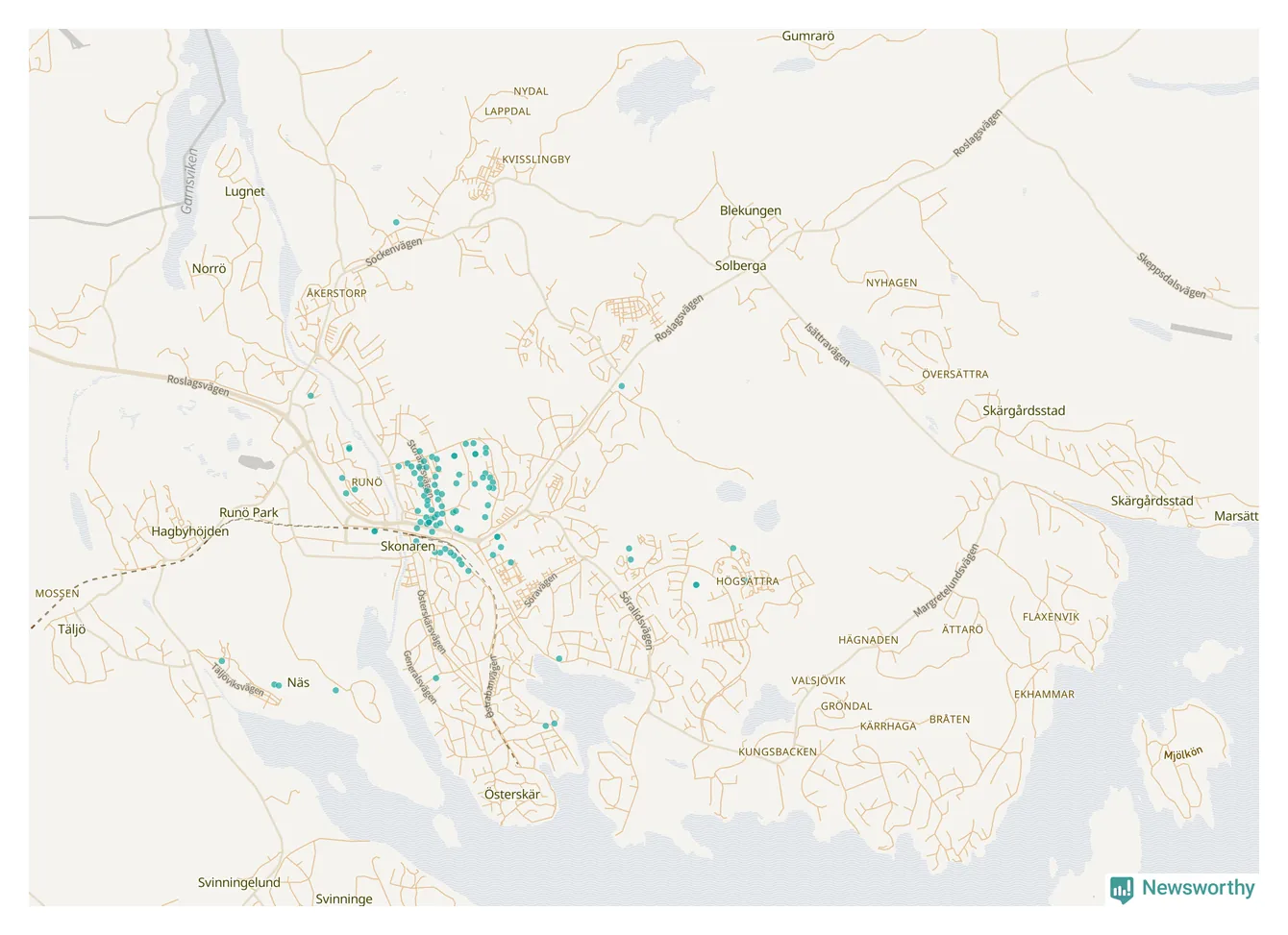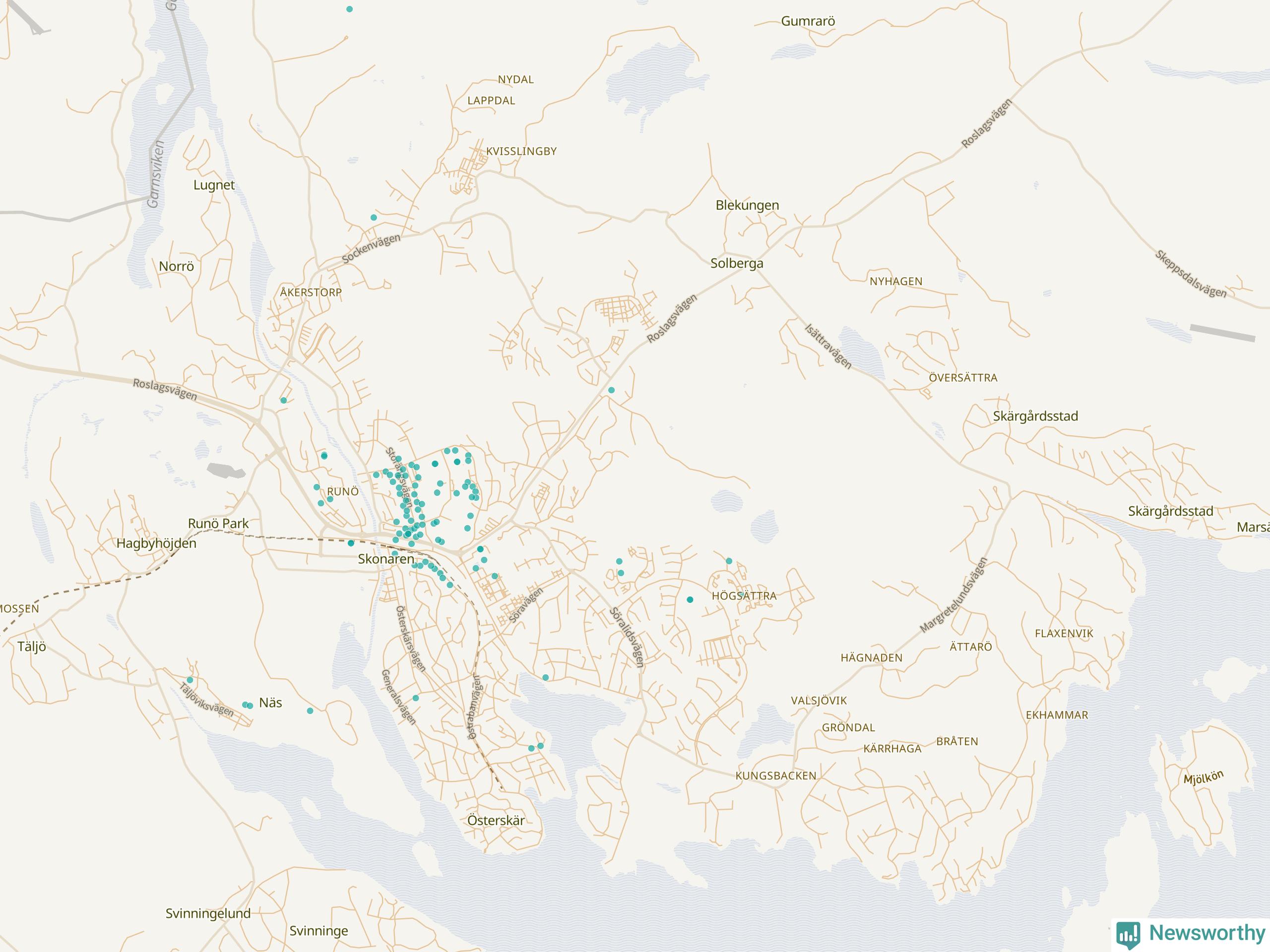 | Nynäshamn | 157 | 15 530 | 51 % |