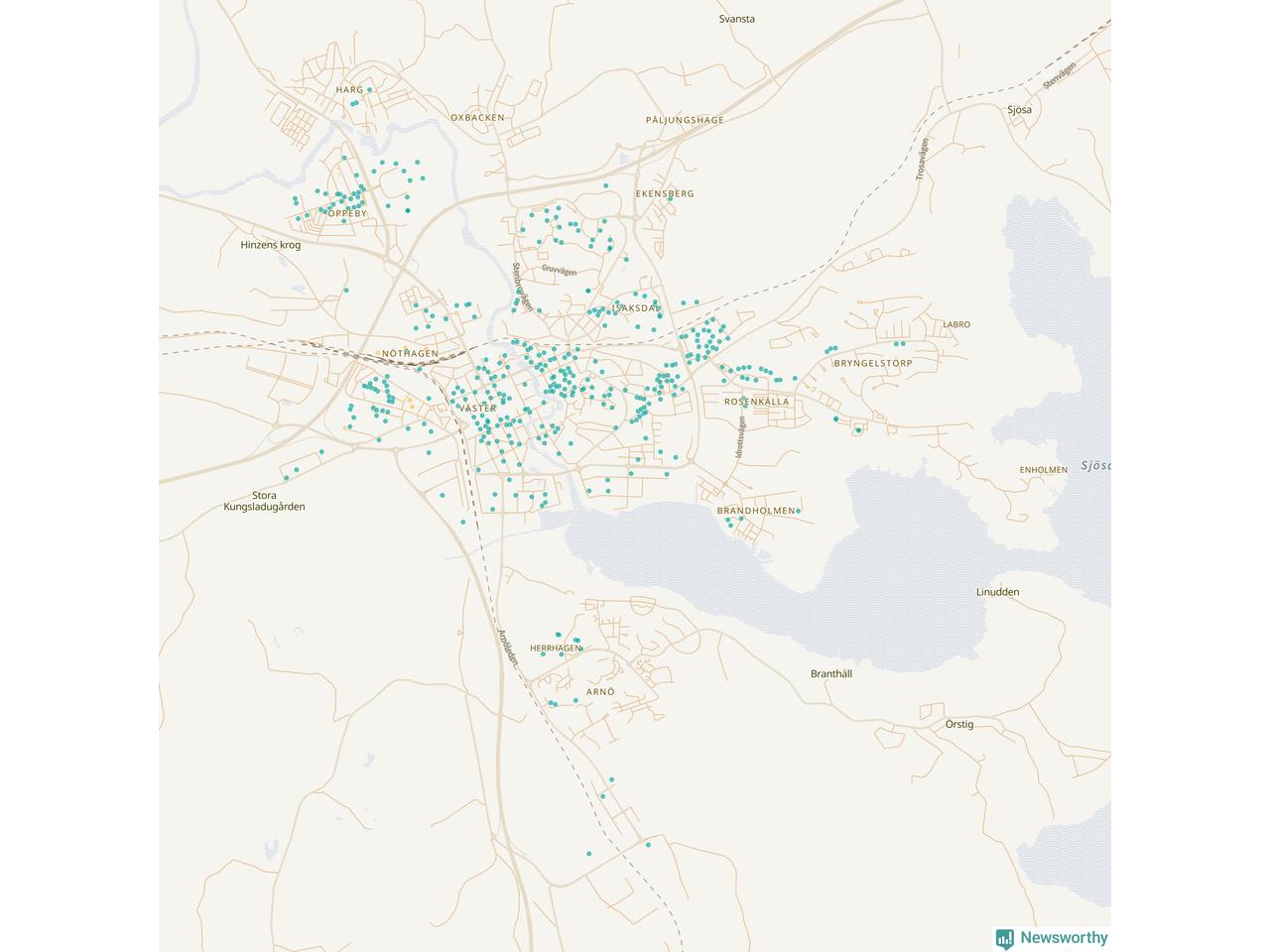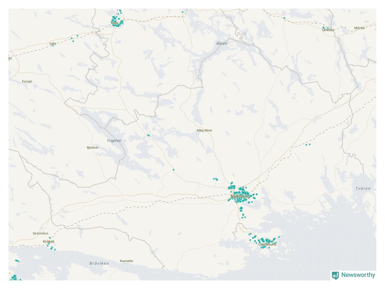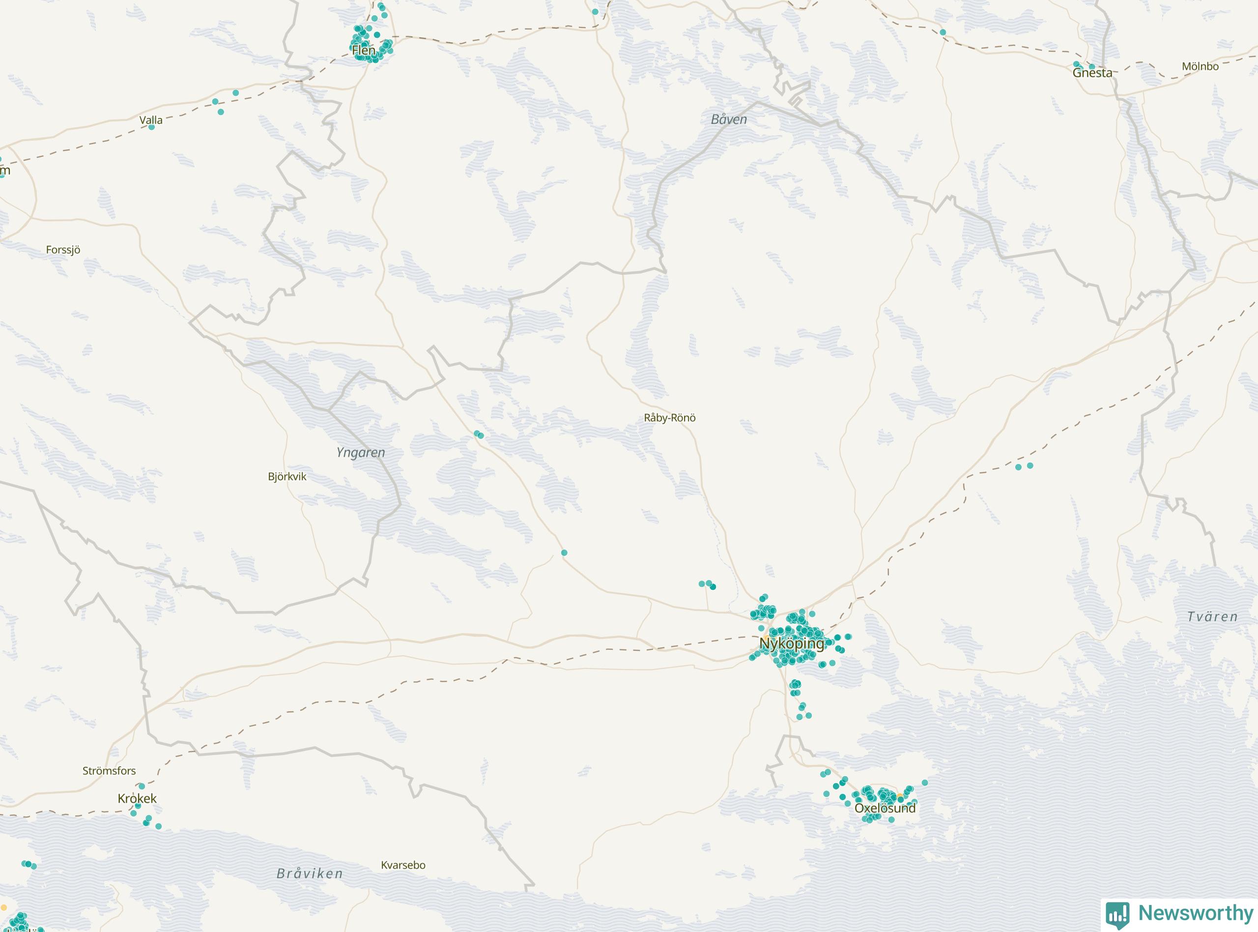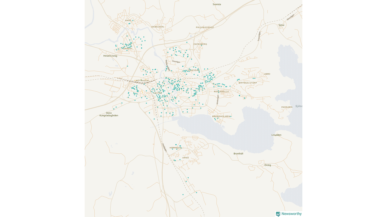| Strängnäs | 134 | 13 695 | 35 % |