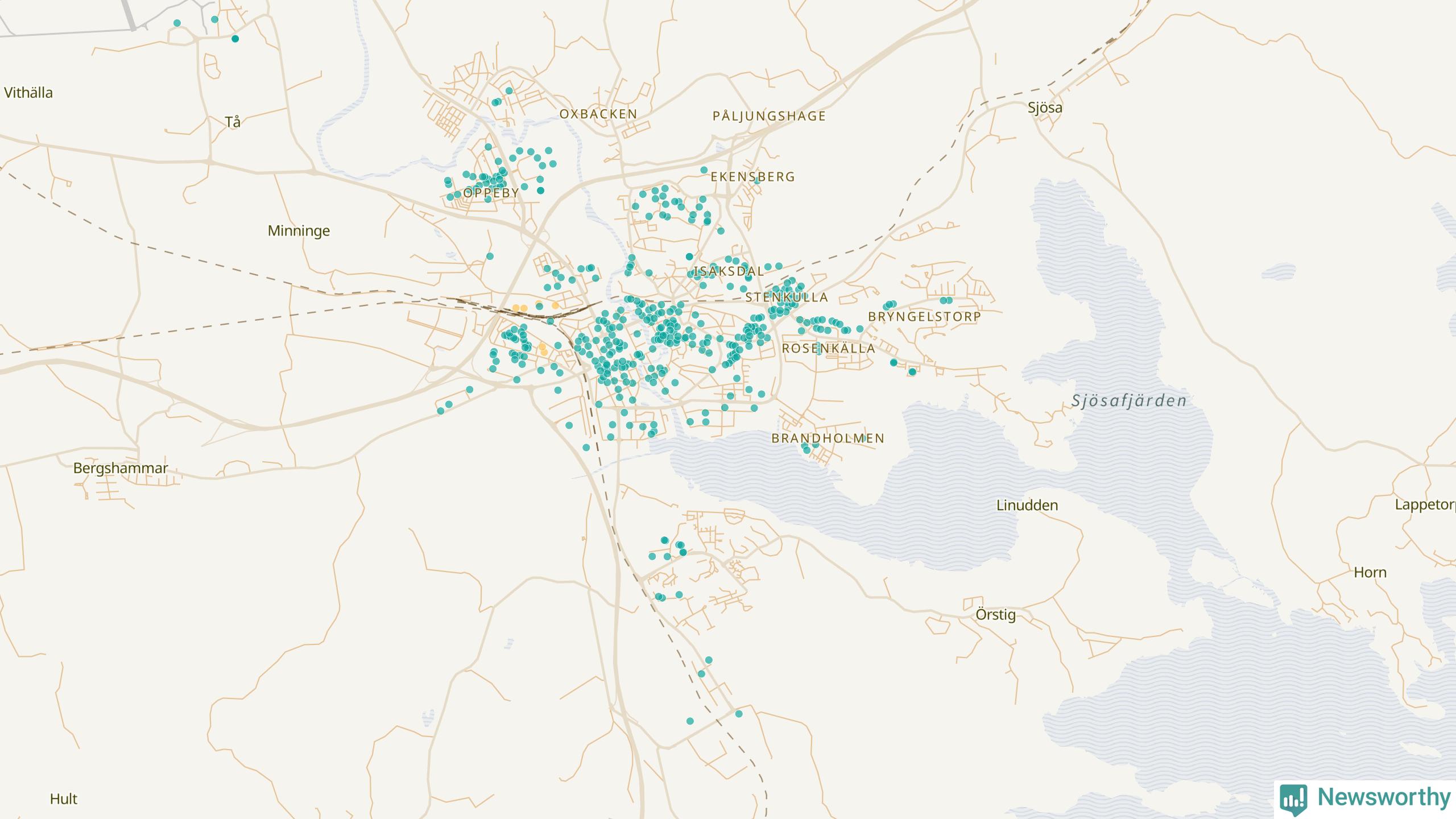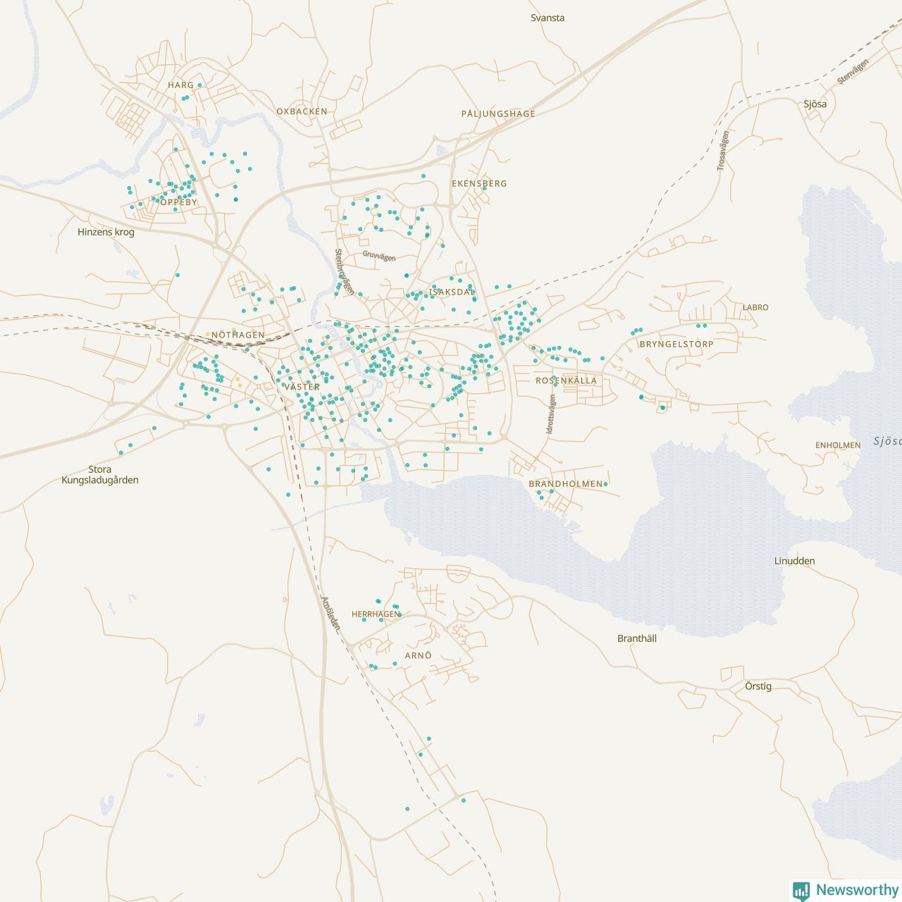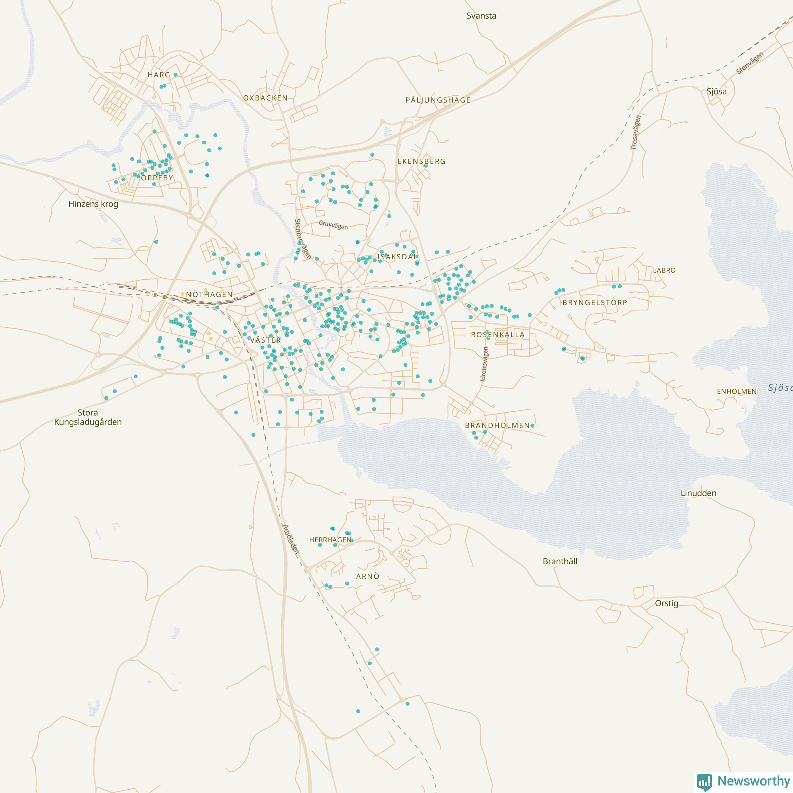 | Strängnäs | 134 | 13 695 | 35 % |