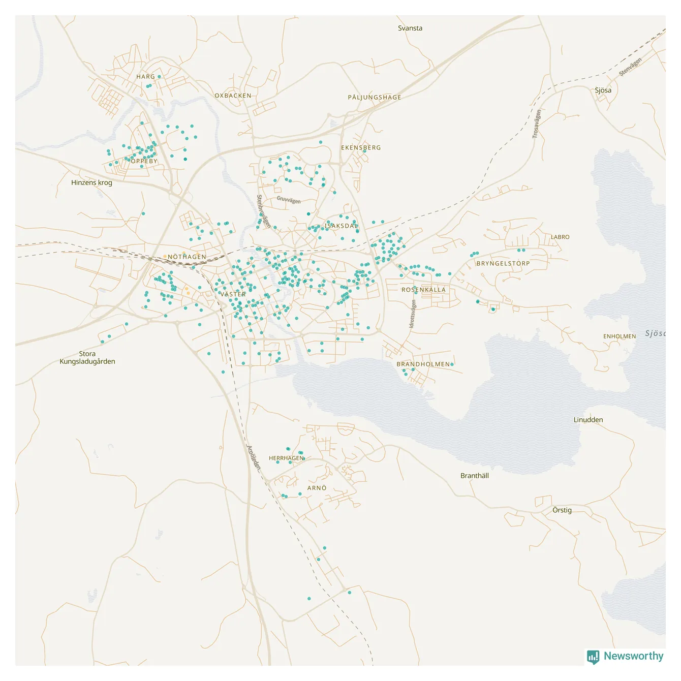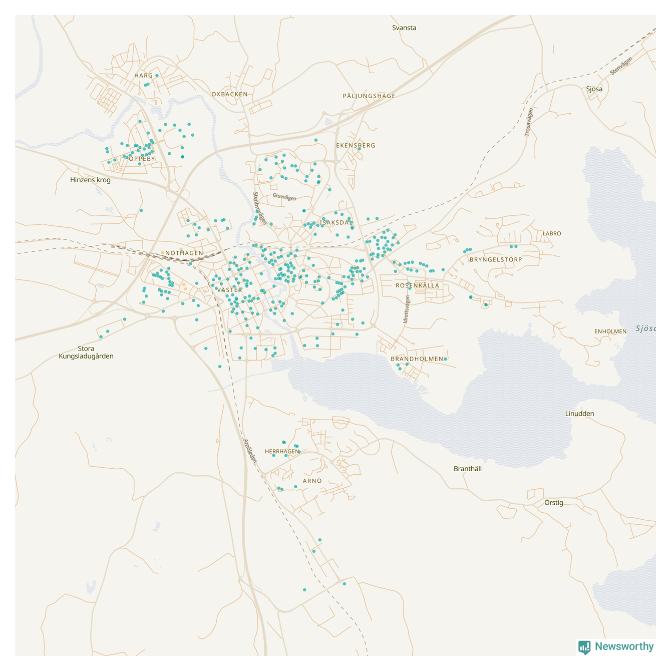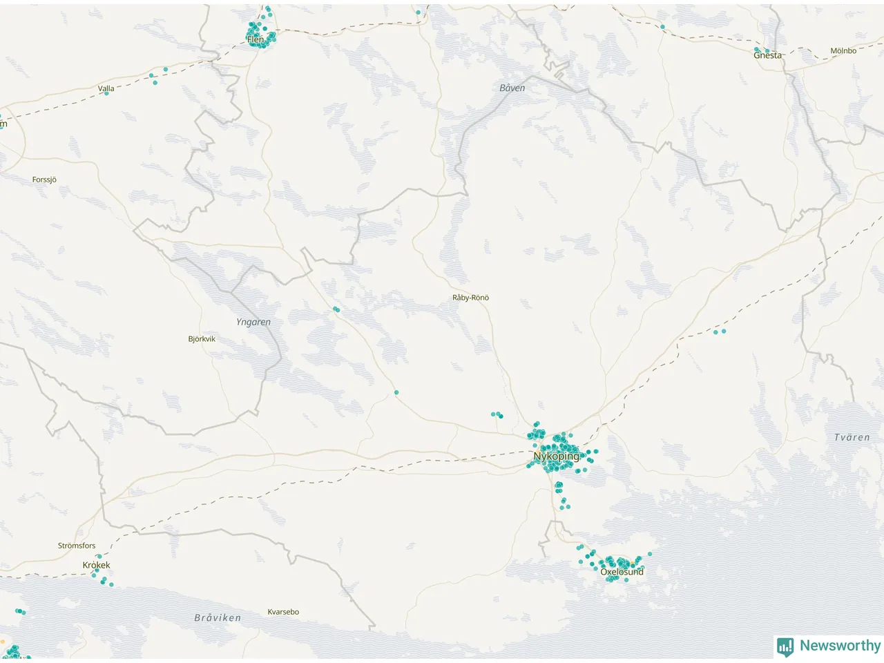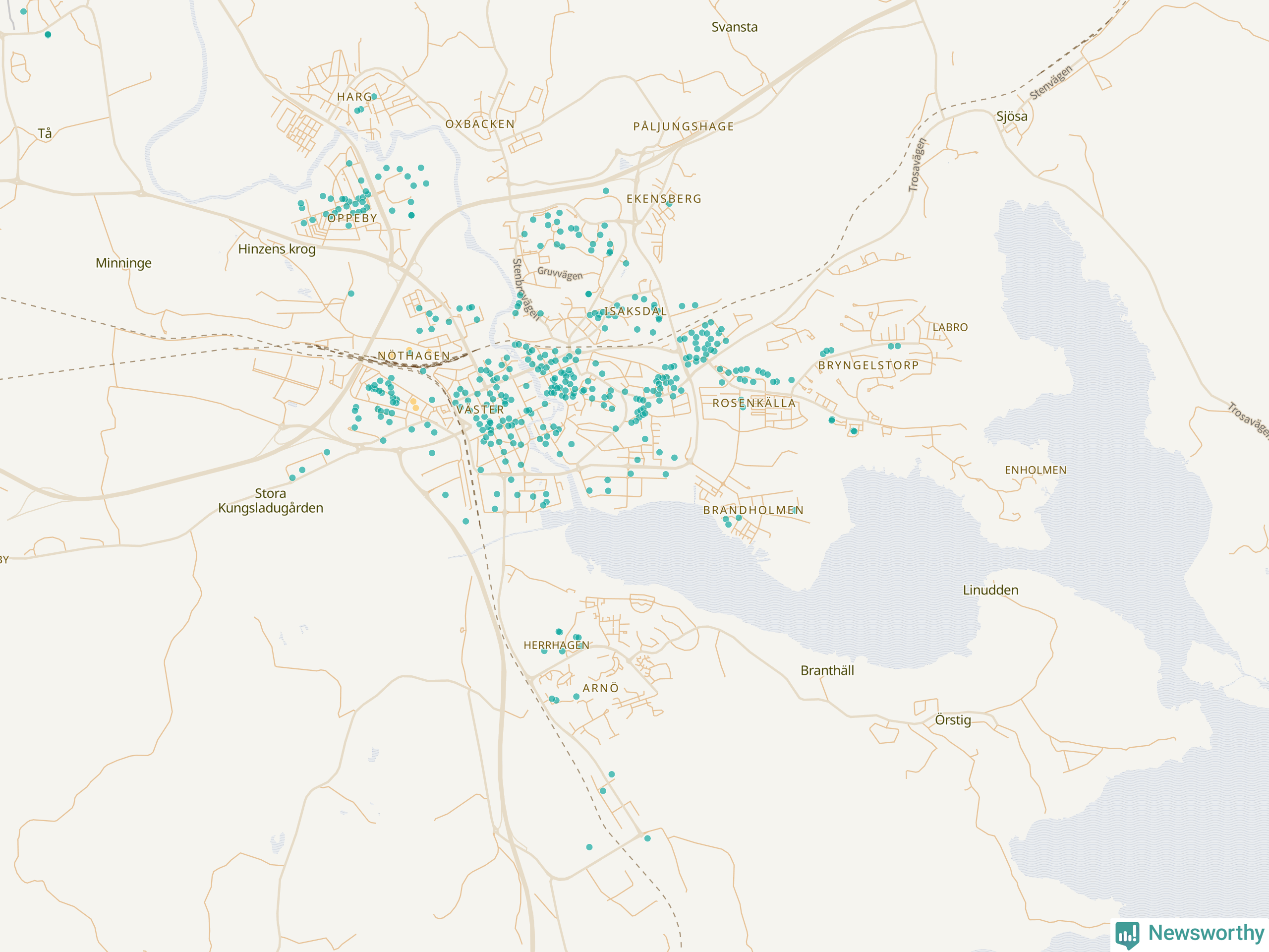 | Strängnäs | 134 | 13 695 | 35 % |