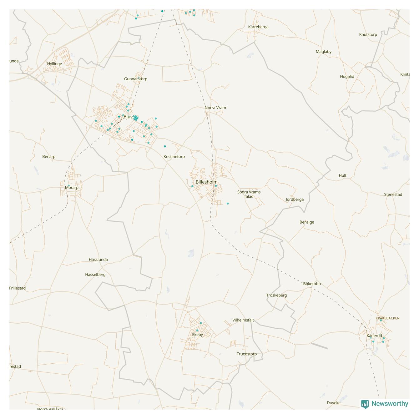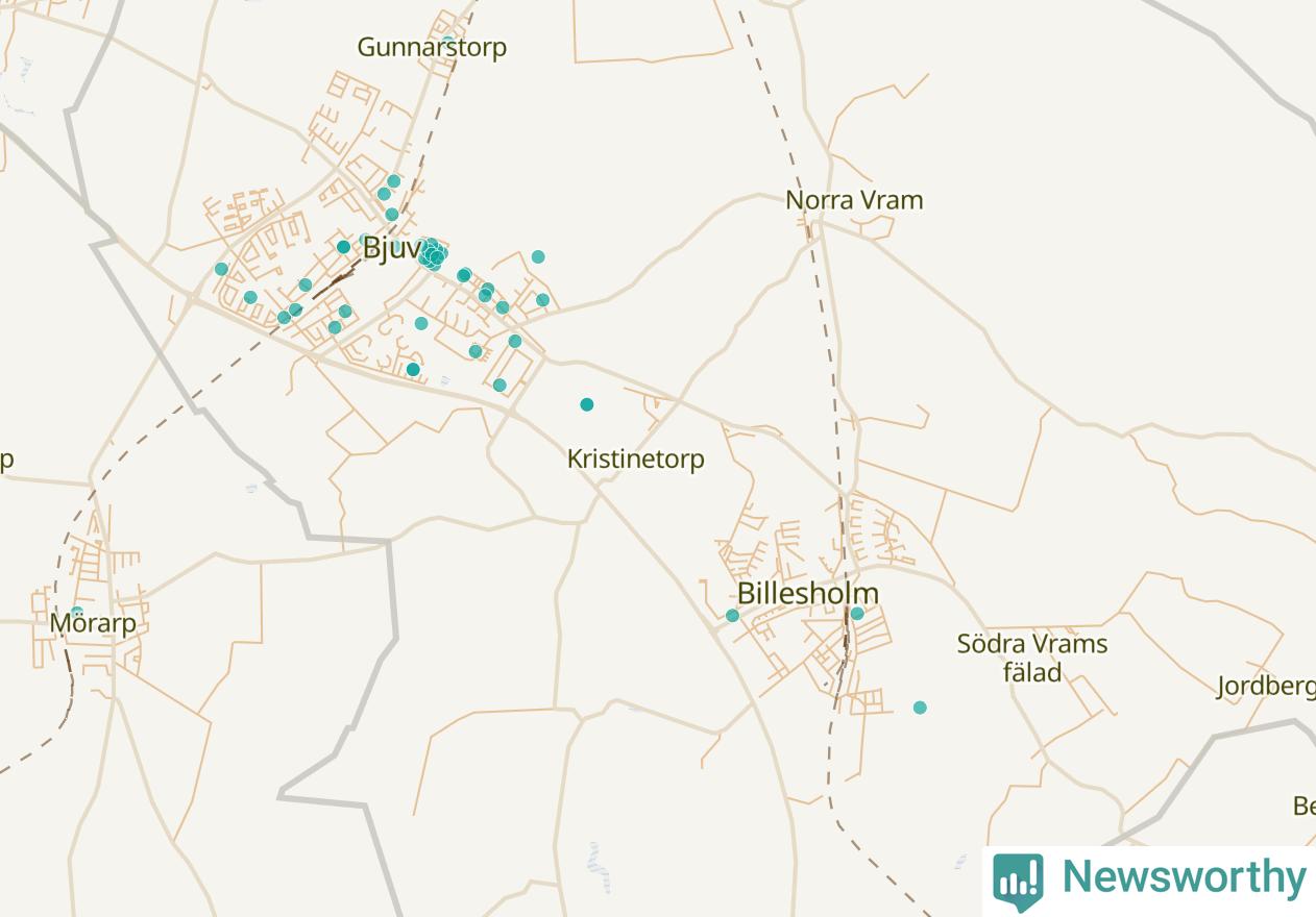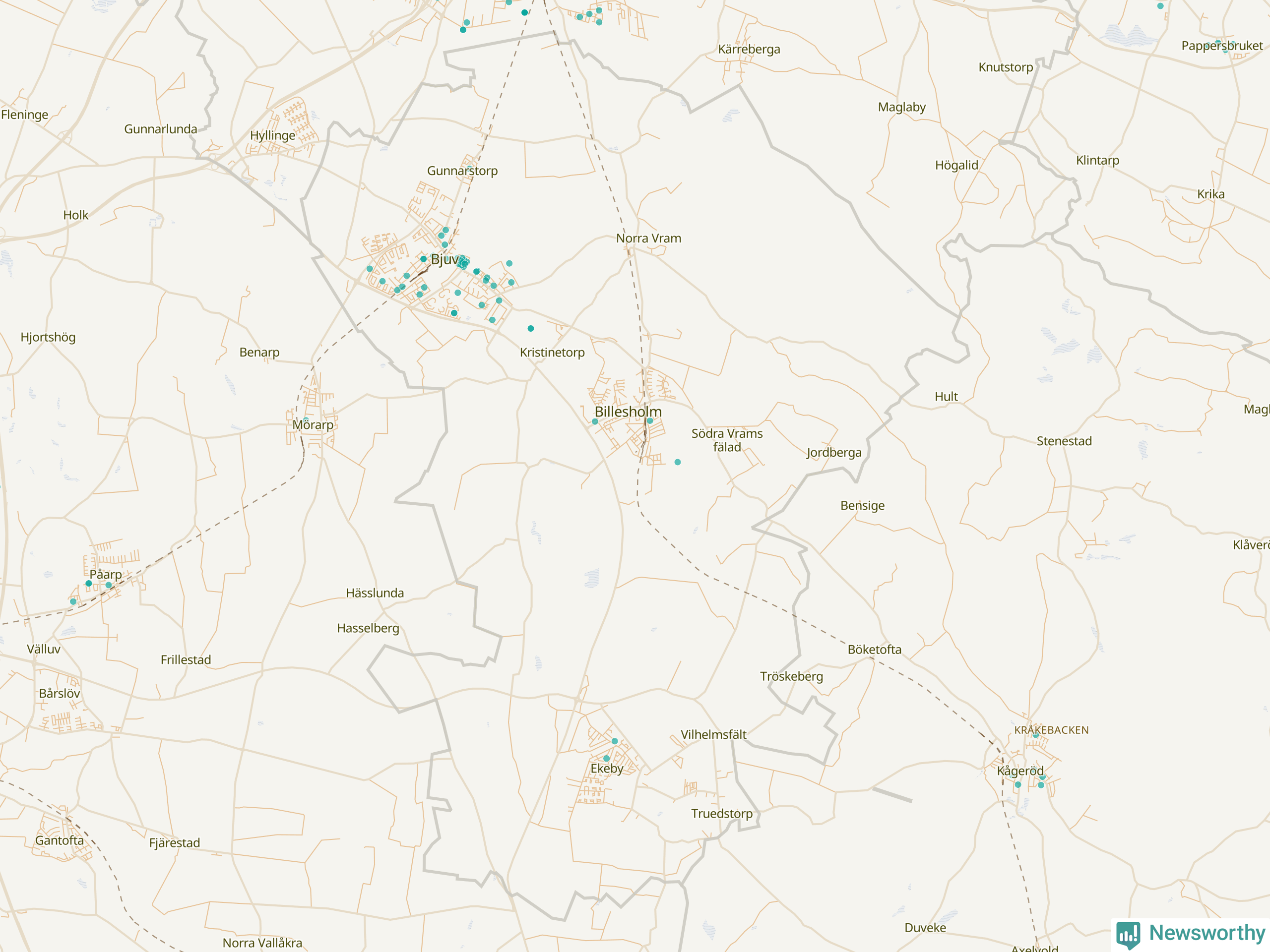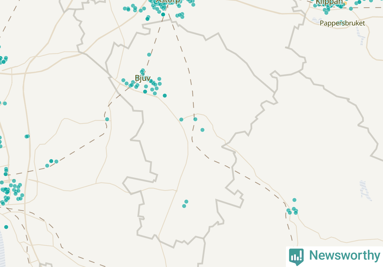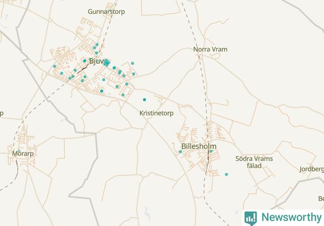 Karta över Bjuvs kommun