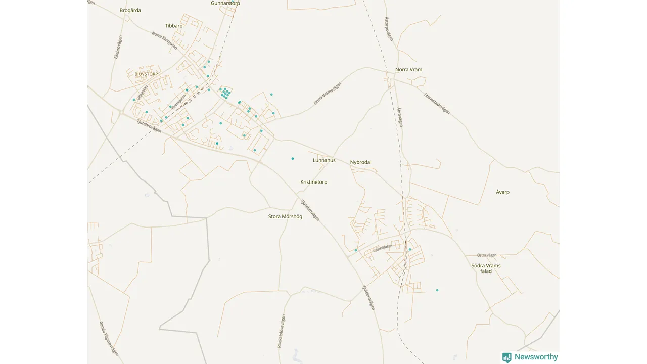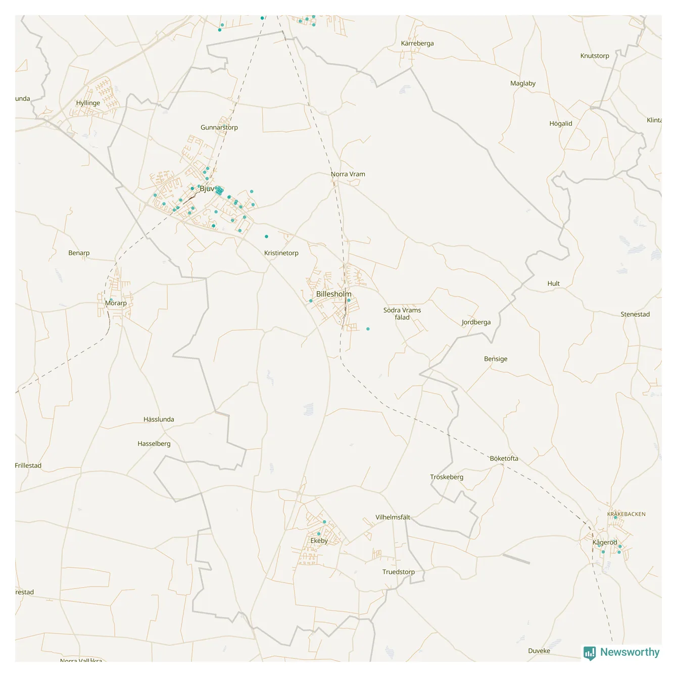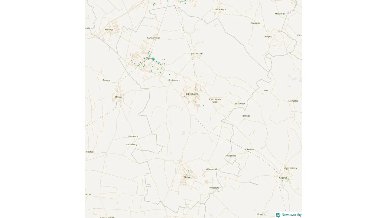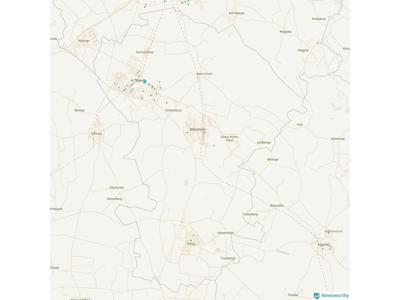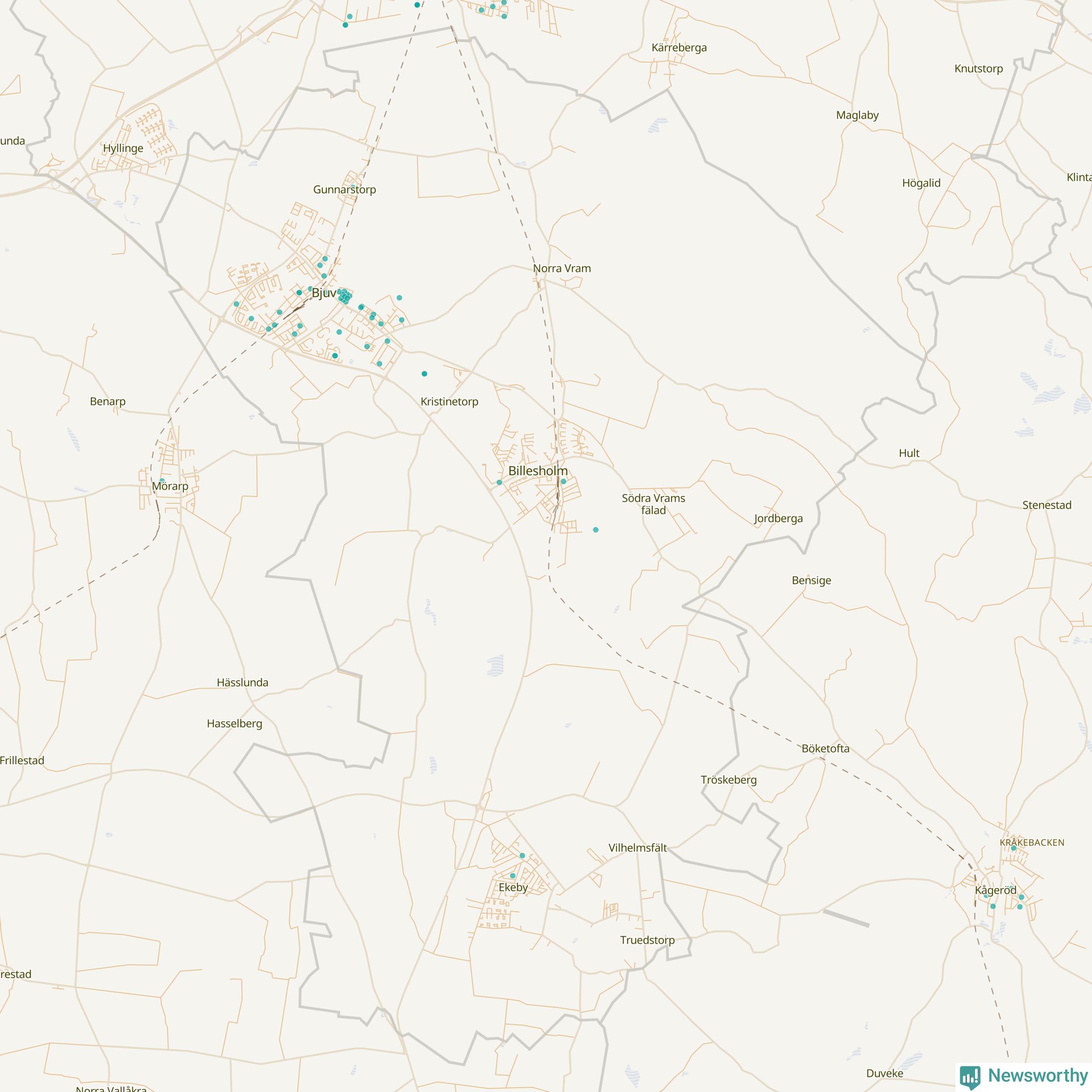 Karta över Bjuvs kommun