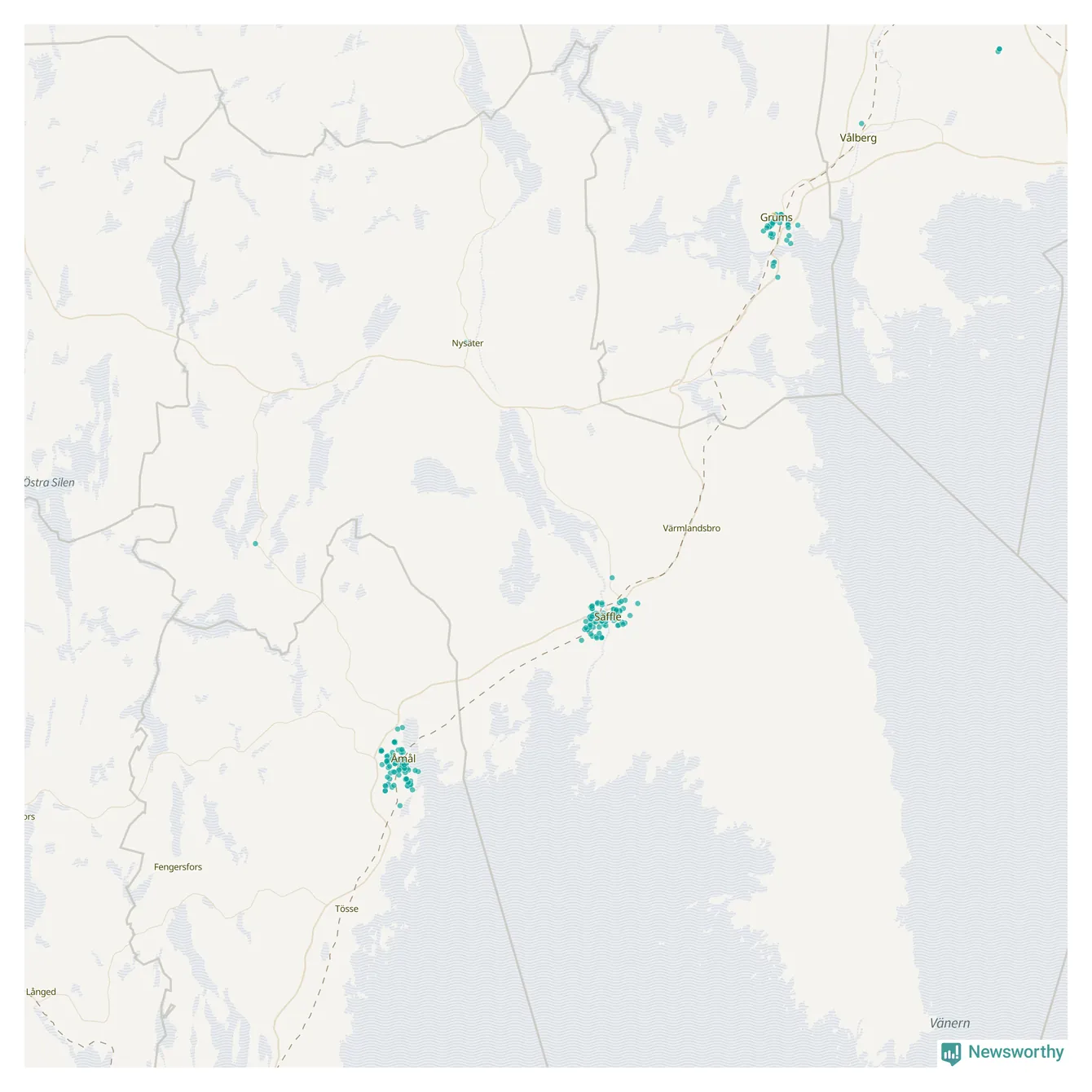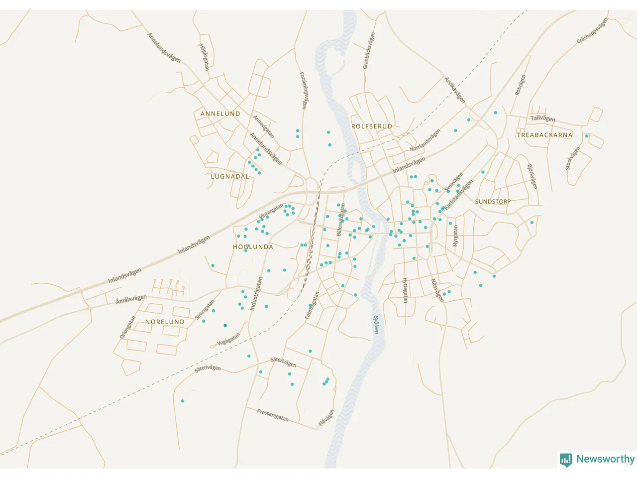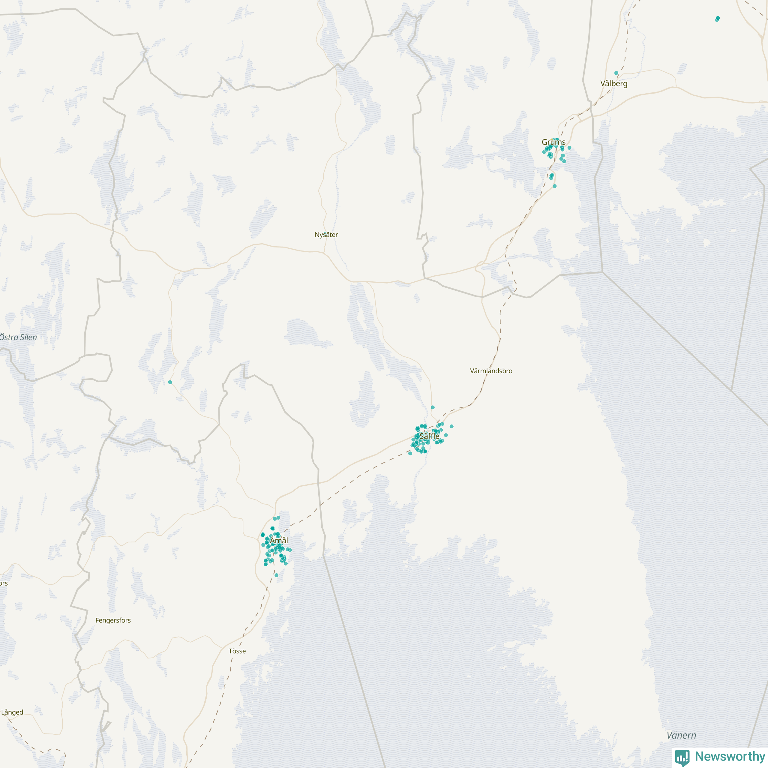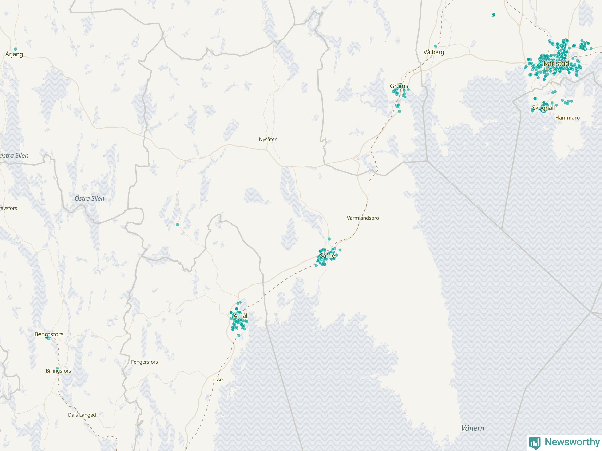 | Grums | 44 | 5 202 | 59 % |