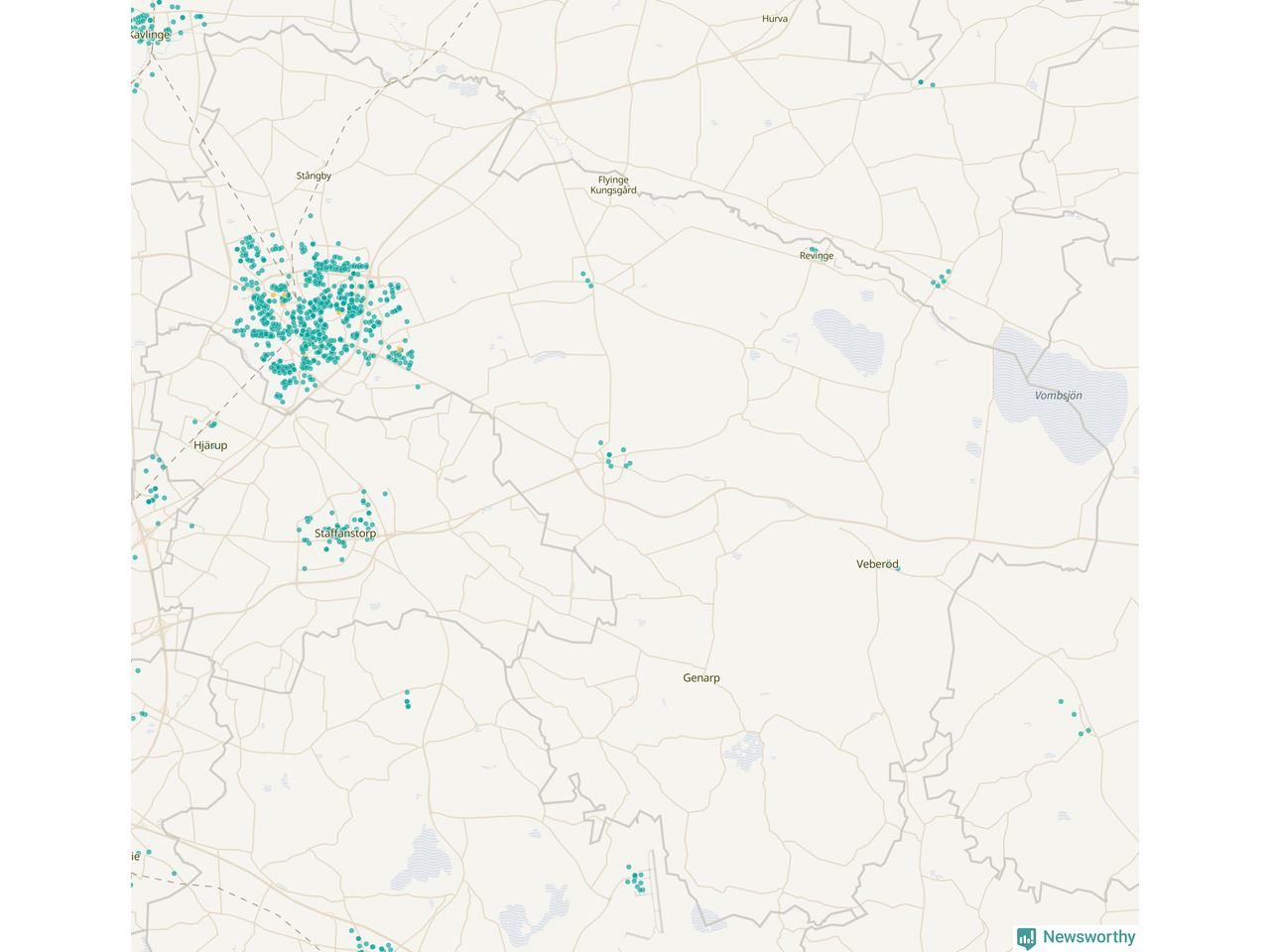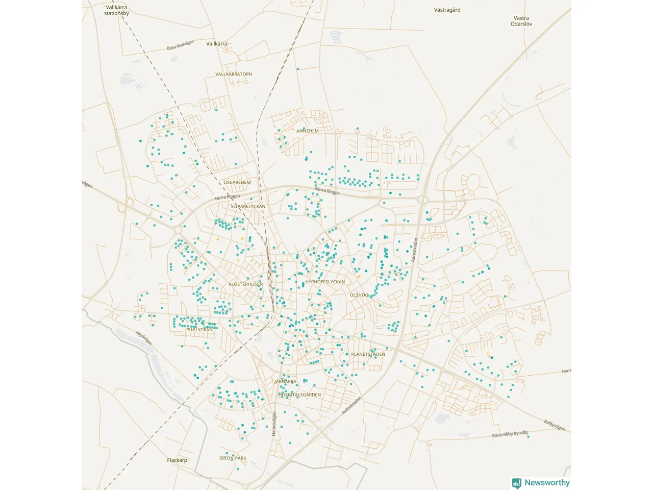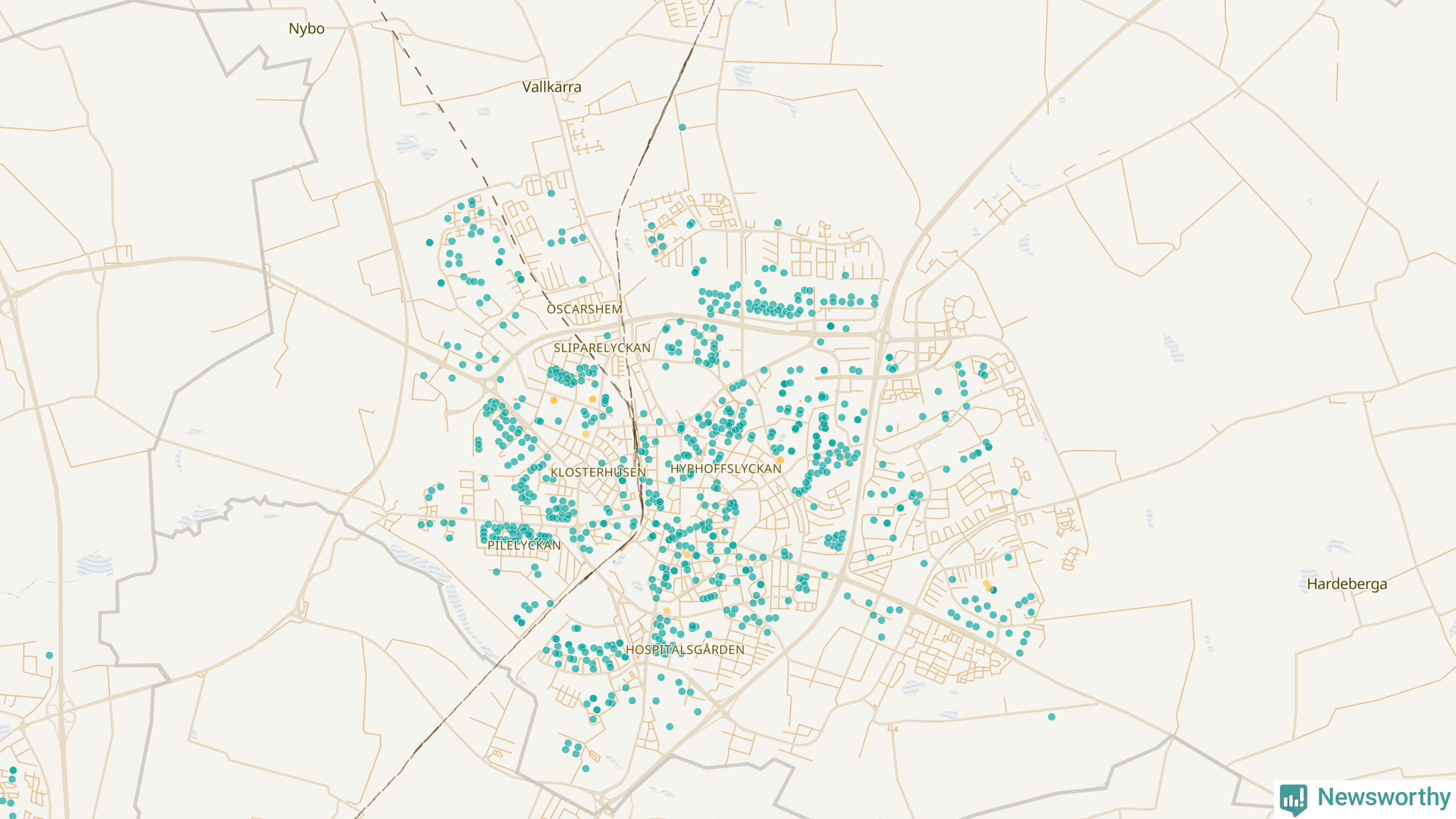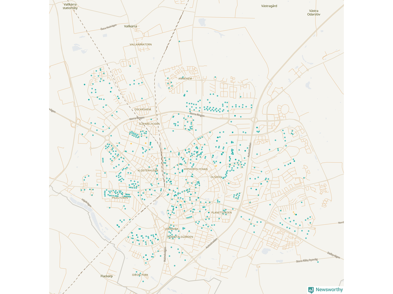 Newsworthy är en nyhetssajt som gör lokal journalistik baserat på data. Vi är datajournalister som analyserar och tolkar världen på siffror, snarare än tyckande.