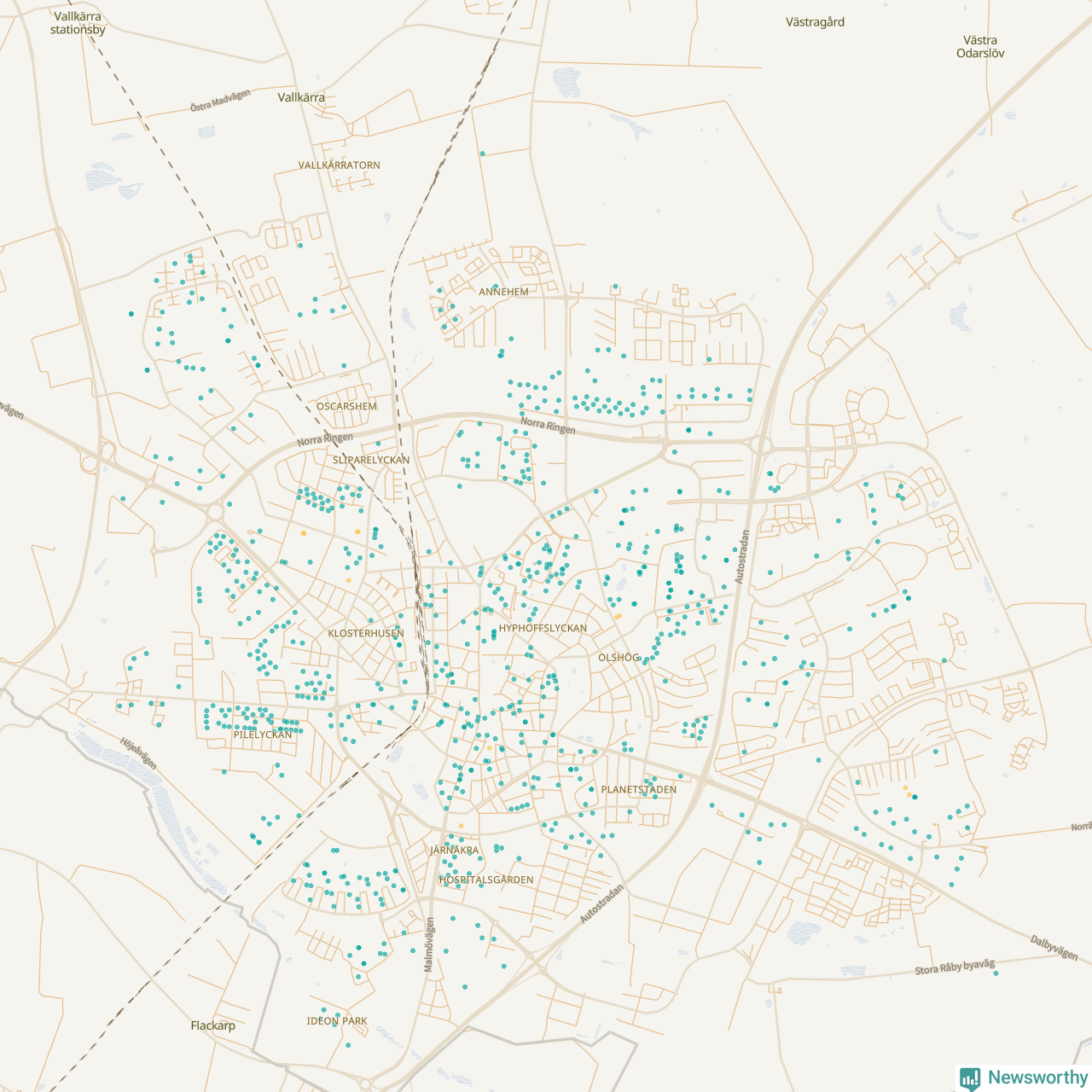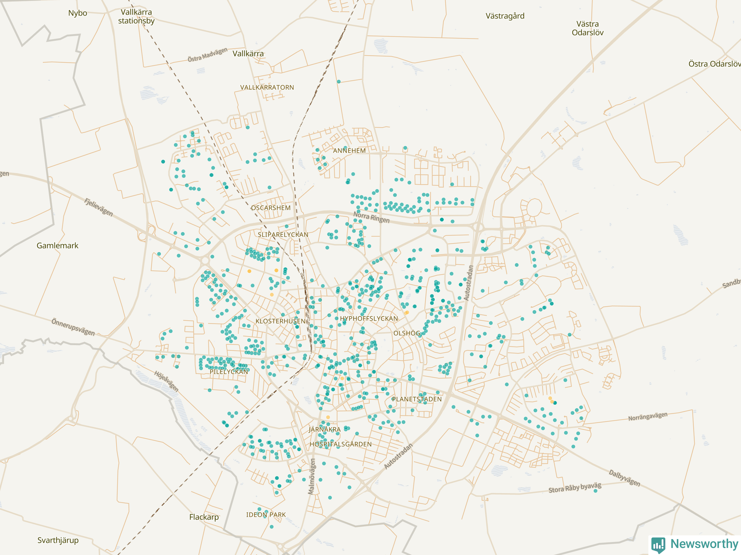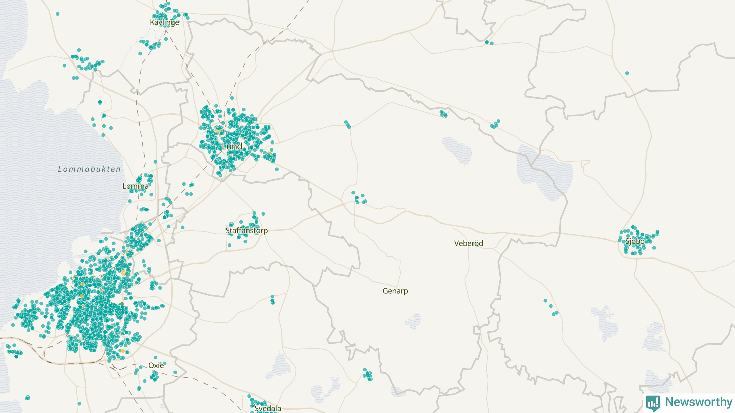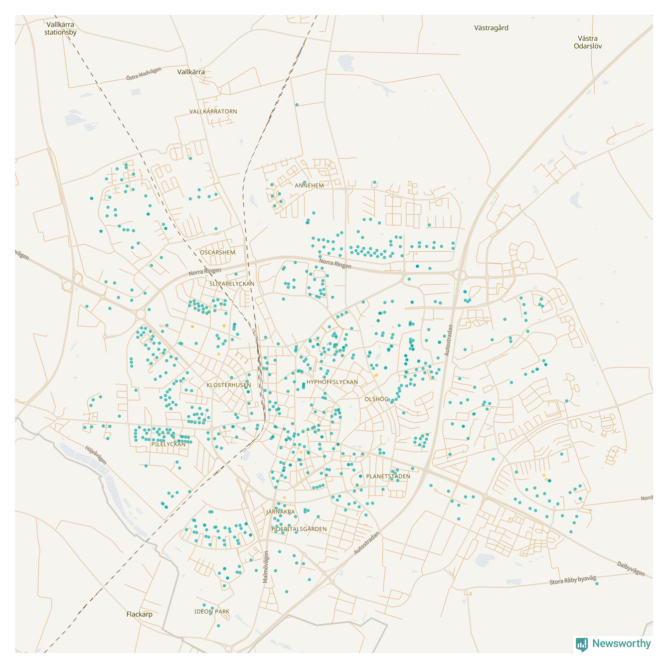 Newsworthy är en nyhetssajt som gör lokal journalistik baserat på data. Vi är datajournalister som analyserar och tolkar världen på siffror, snarare än tyckande.