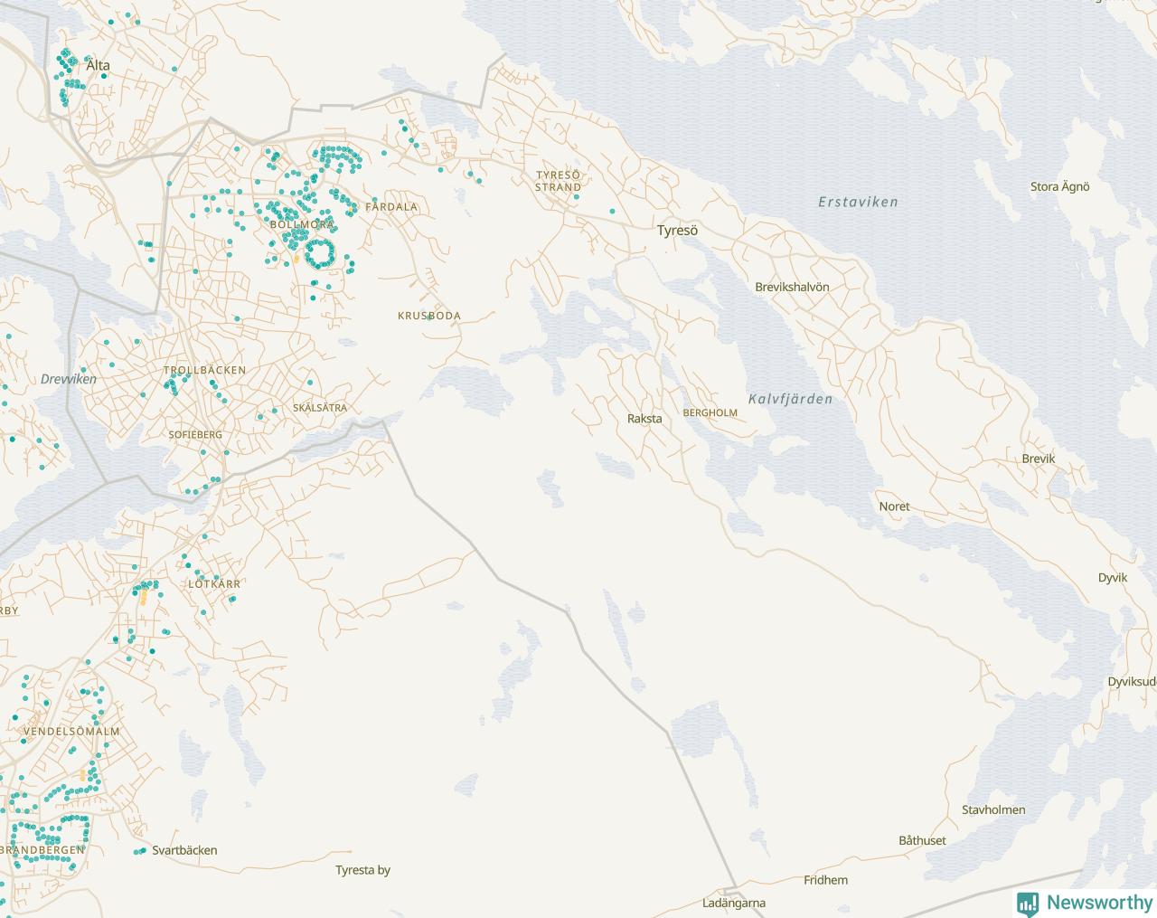 | Norrtälje | 196 | 23 229 | 35 % |