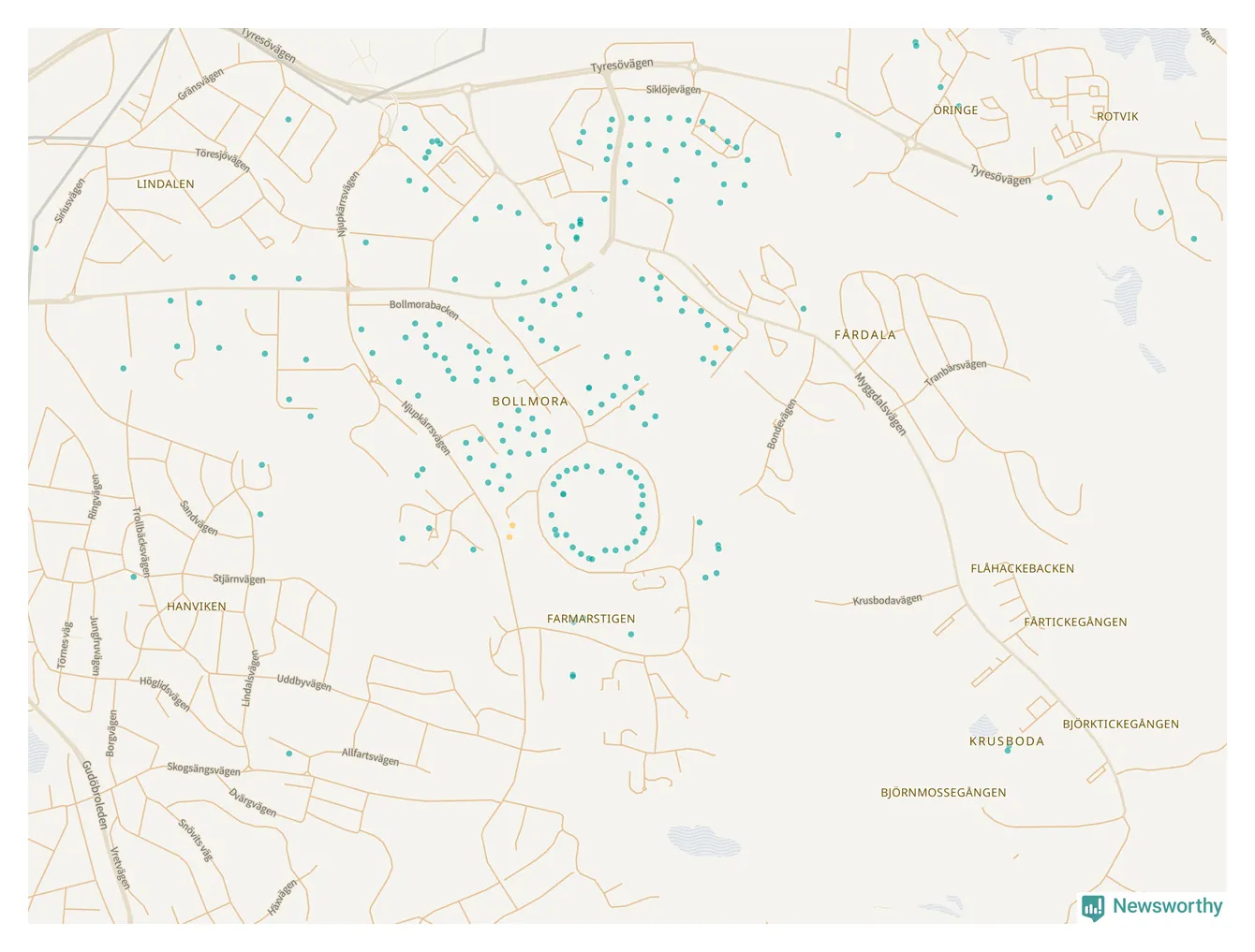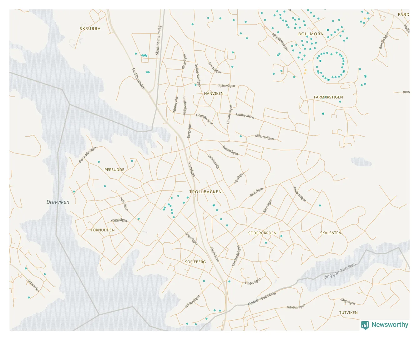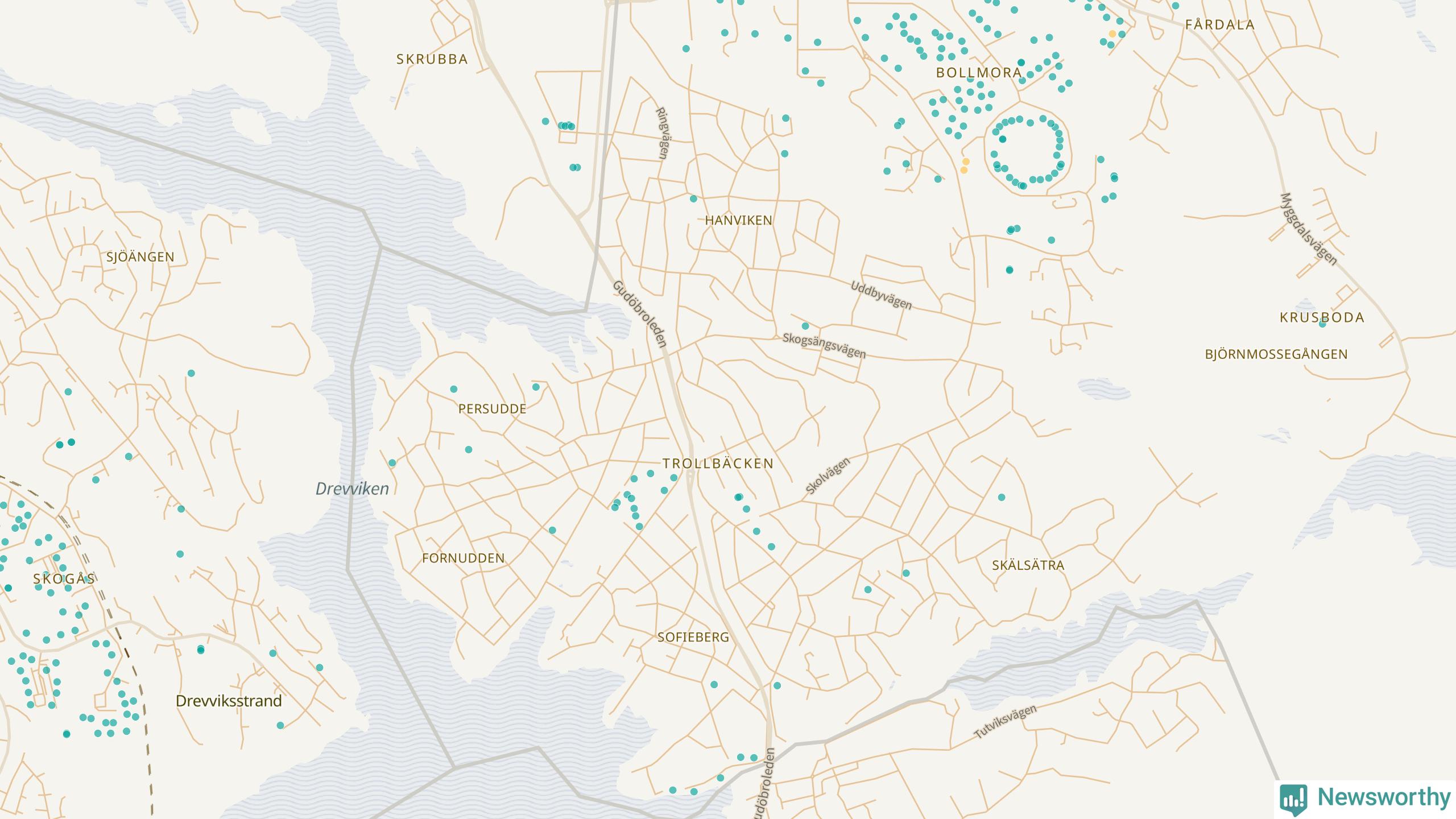 | Värmdö | 56 | 6 285 | 13 % |