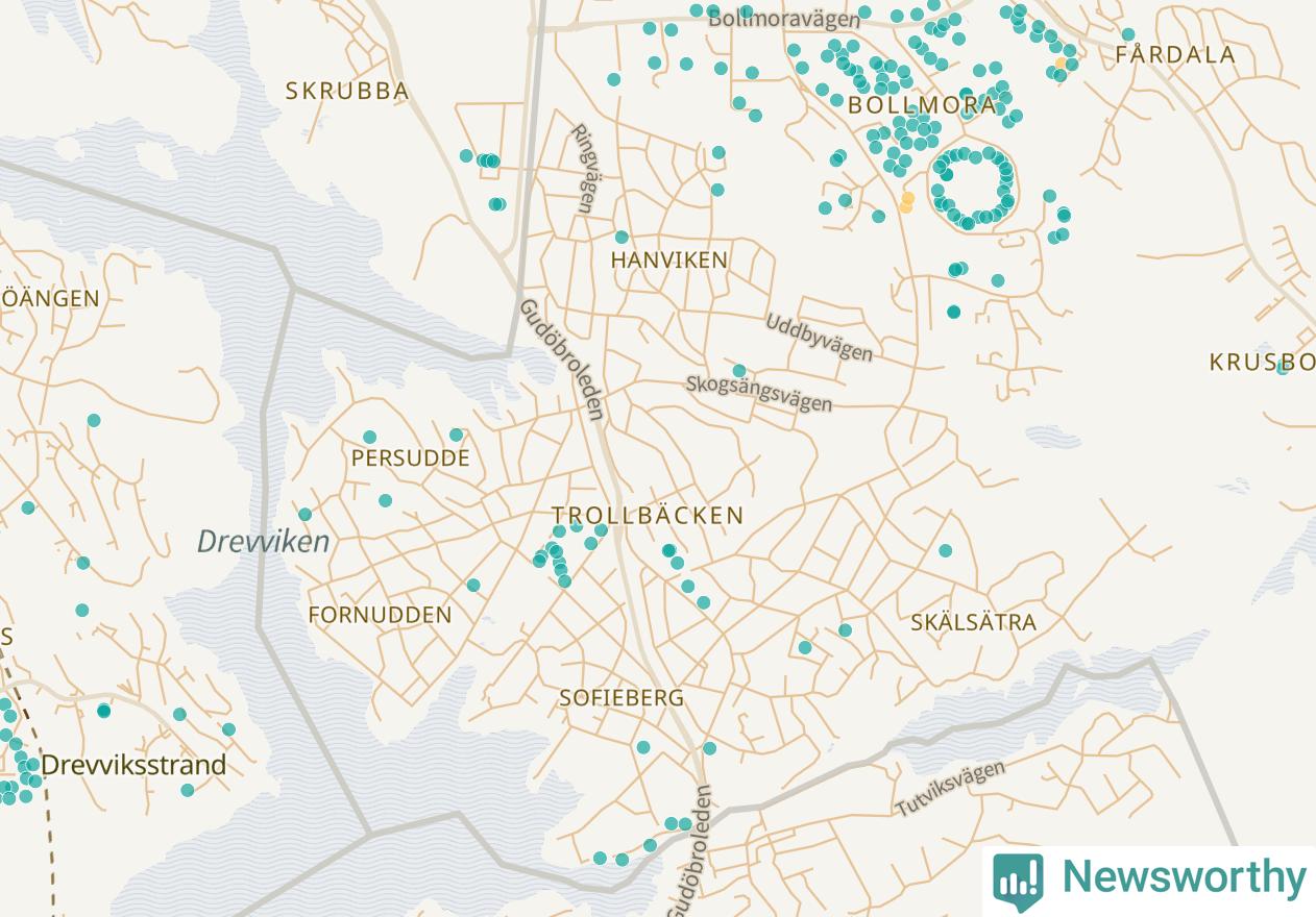 | Upplands Väsby | 277 | 37 741 | 75 % |