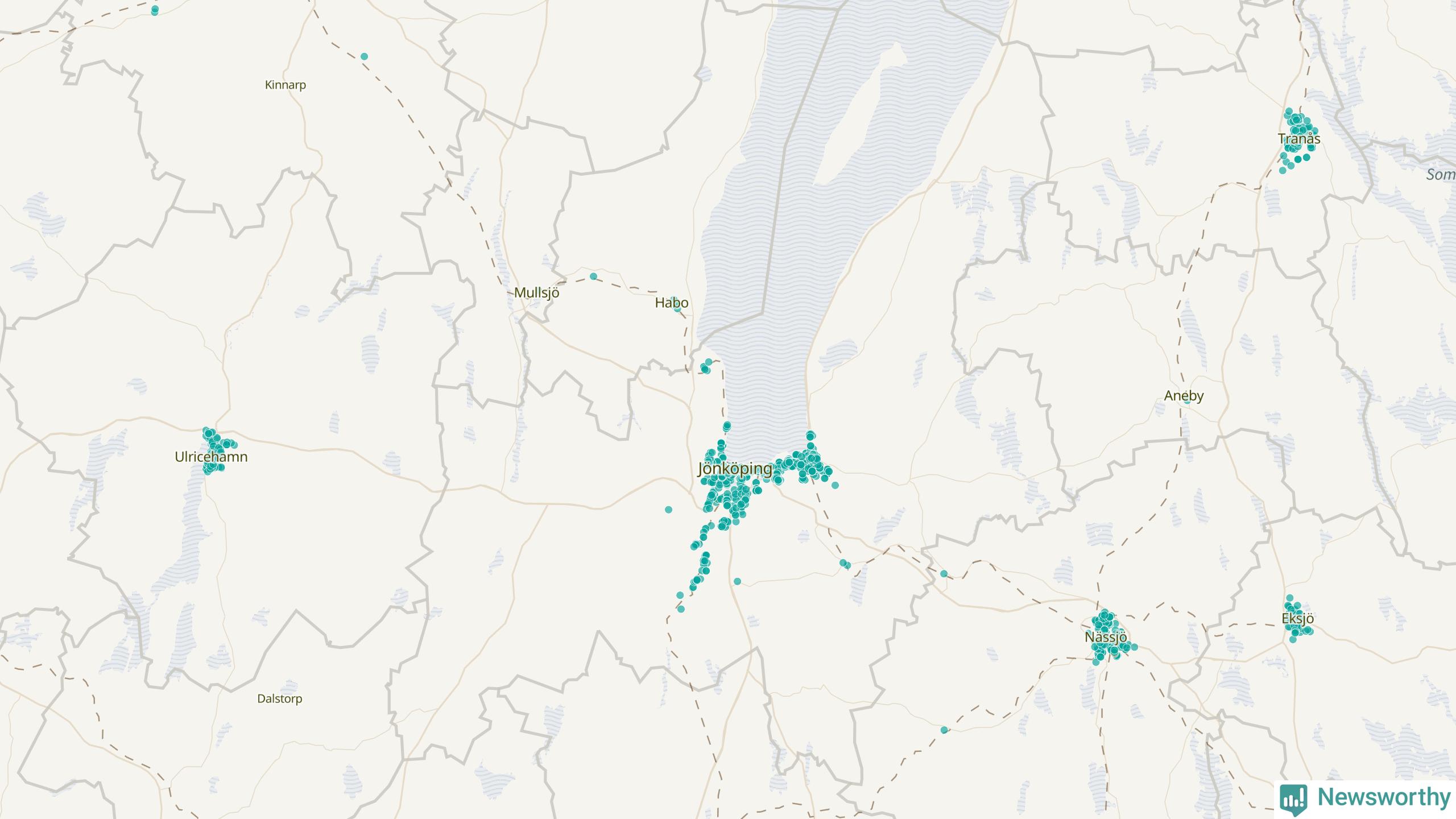 Tätast mellan skyddsrummen i Jönköpings län är det i Tranås kommun. Där finns skyddsrumsplatser för motsvarande 90 procent av befolkningen. Minst antal skyddsrumsplatser i förhållande till befolkningen finns i Mullsjö kommun. Där finns skyddsrumsplatser för motsvarande en procent av invånarna.