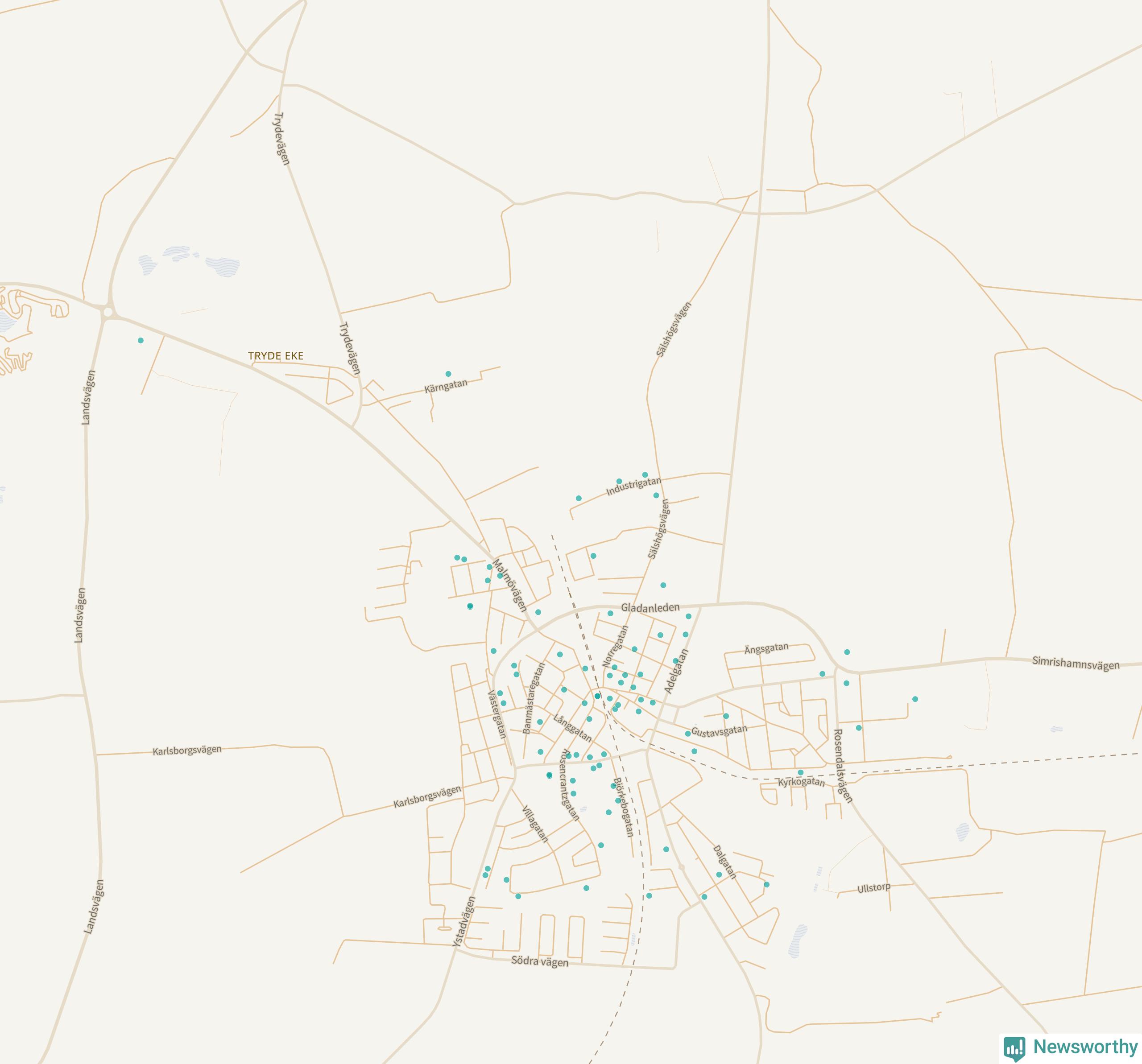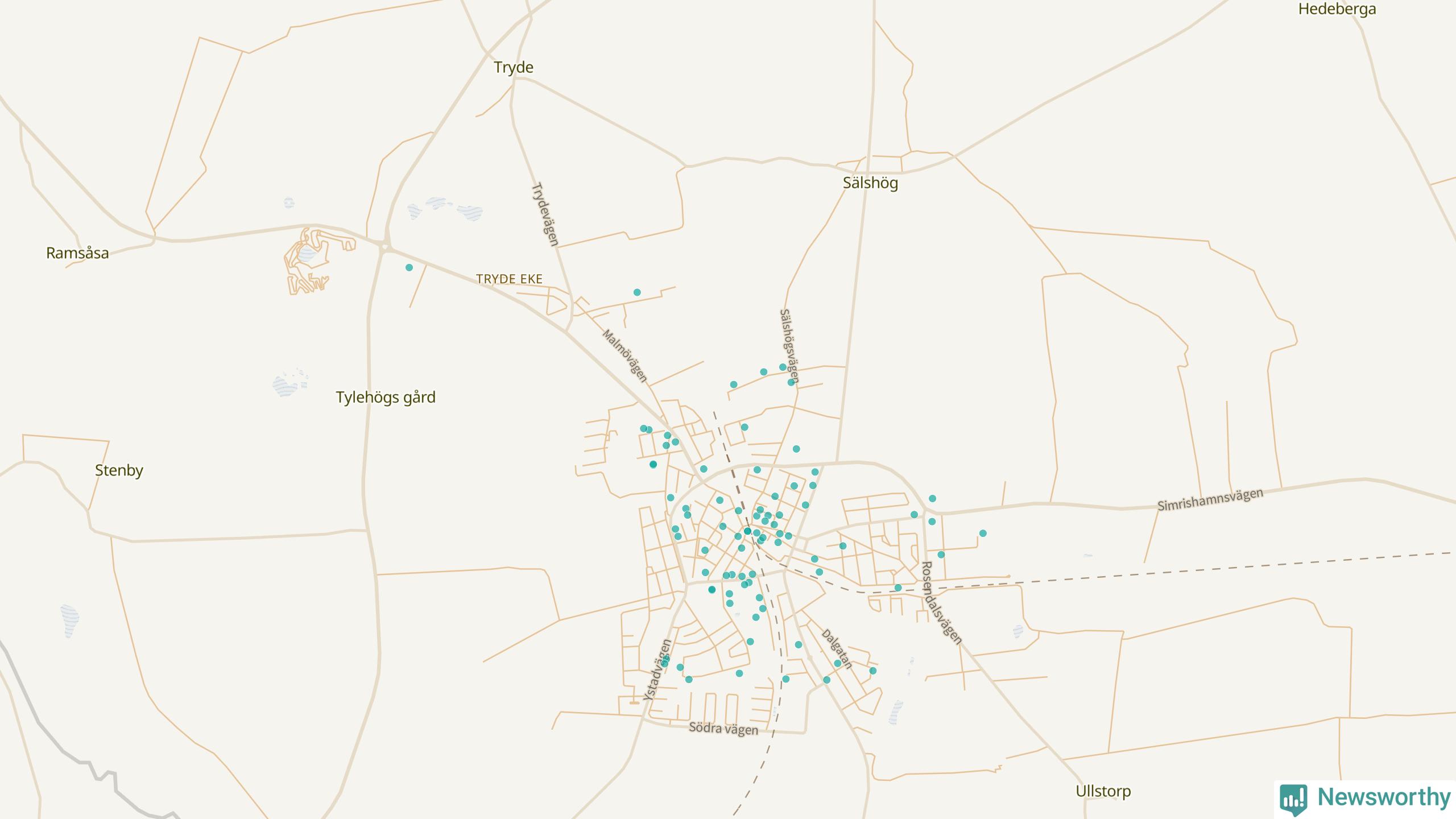 | Ystad | 232 | 22 996 | 71 % |