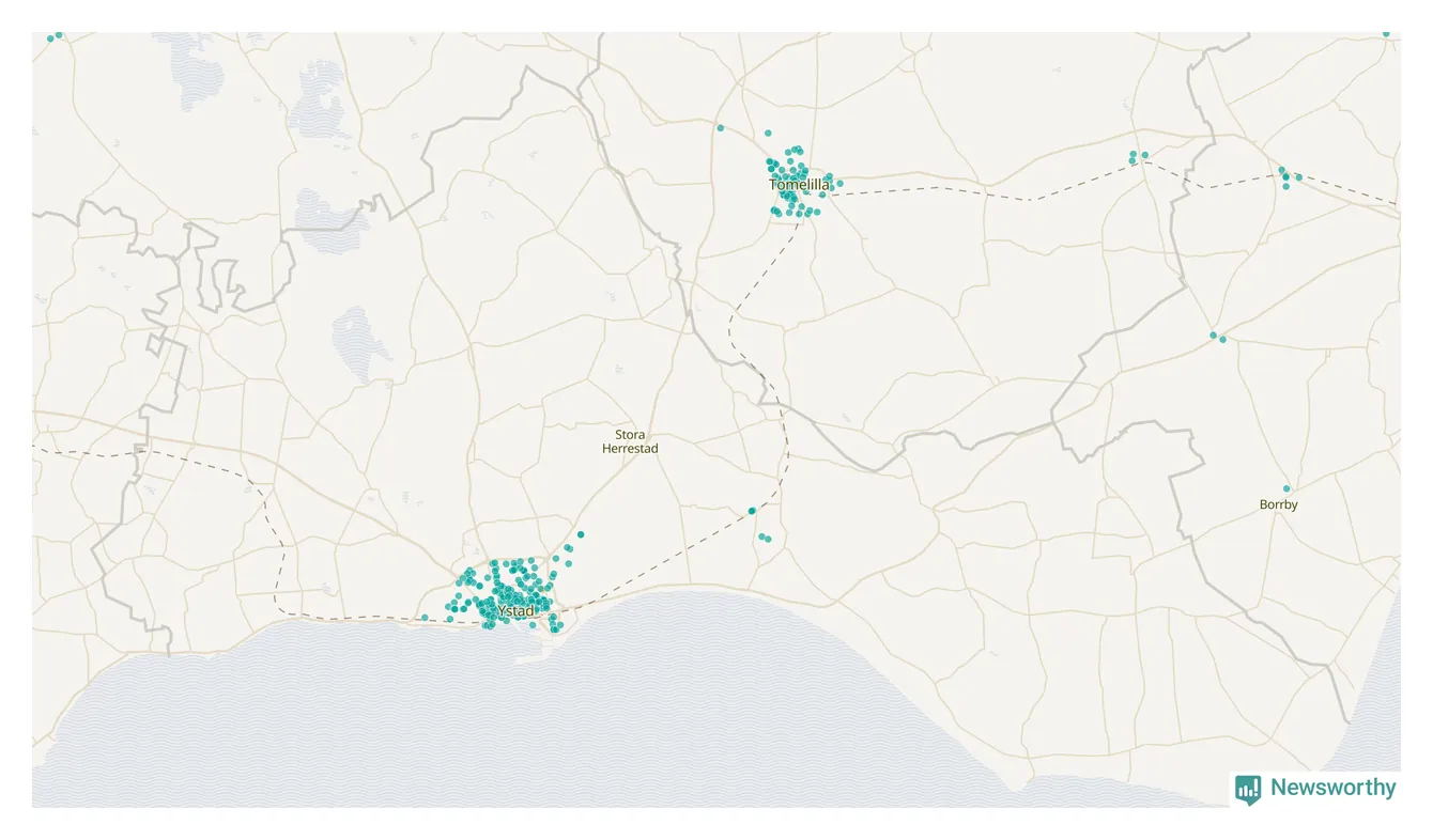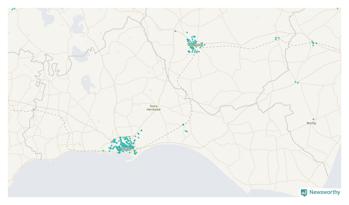 | Staffanstorp | 59 | 6 134 | 22 % |