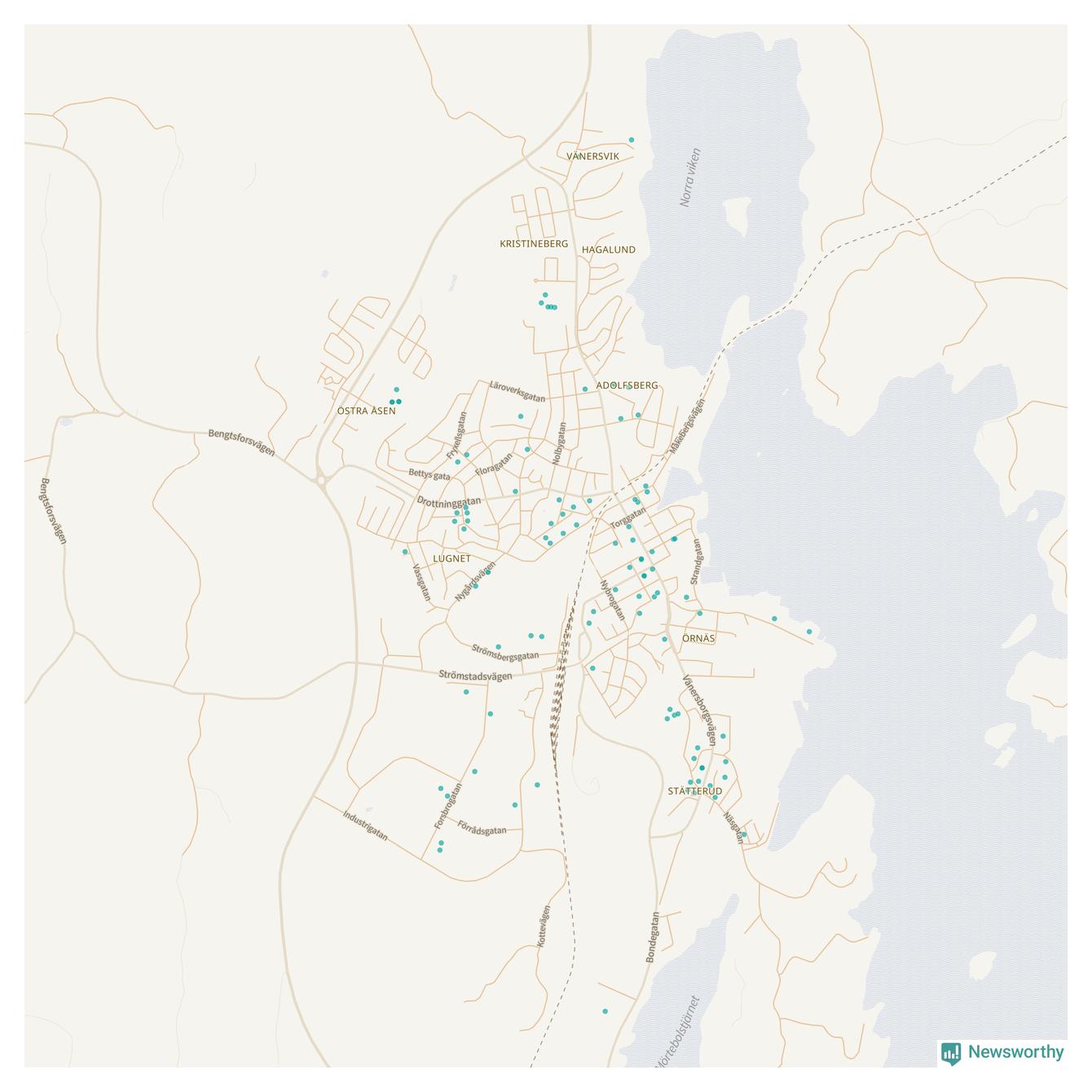 | Vänersborg | 238 | 24 433 | 61 % |