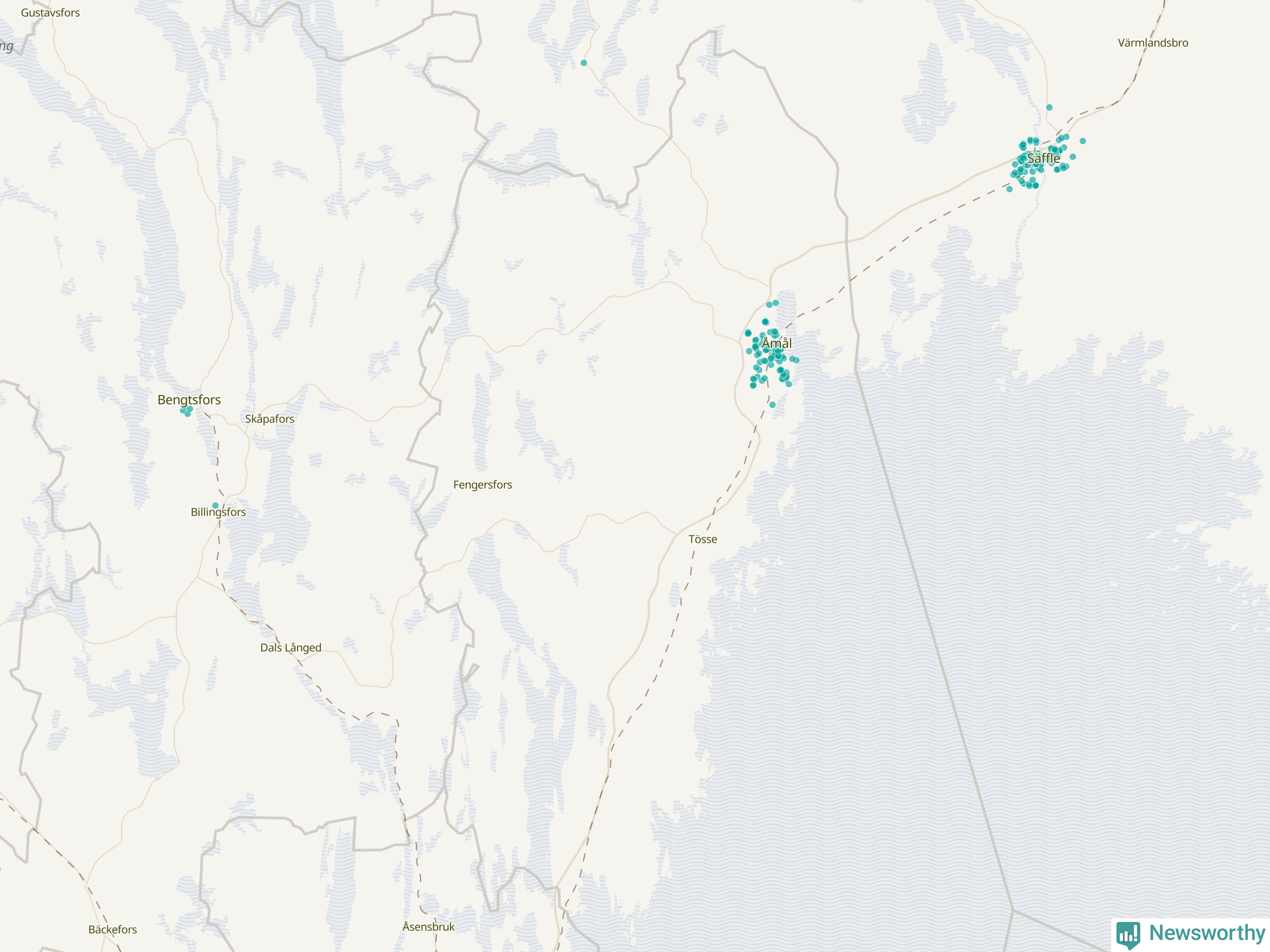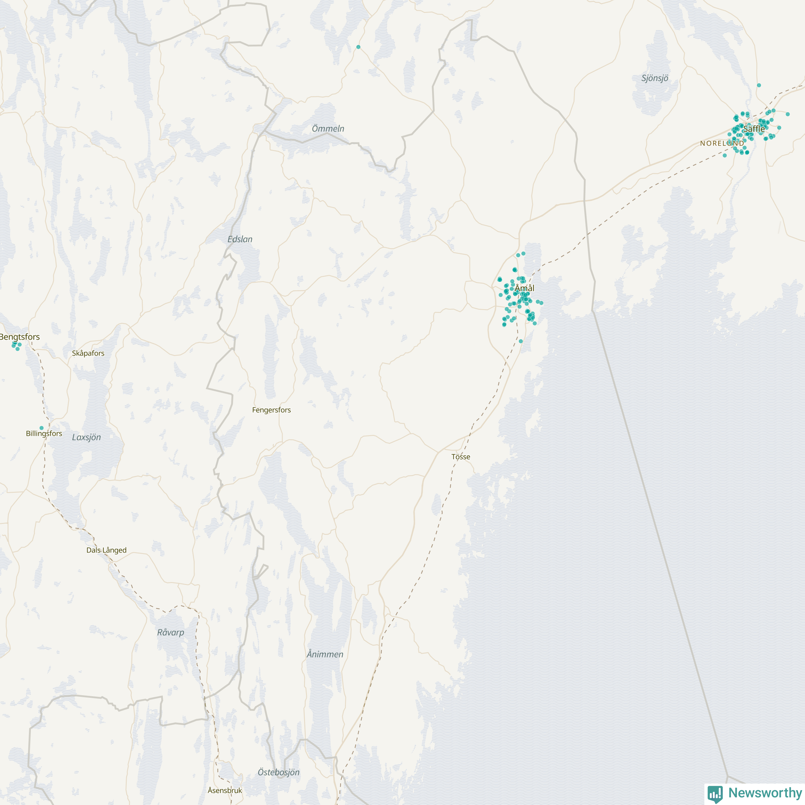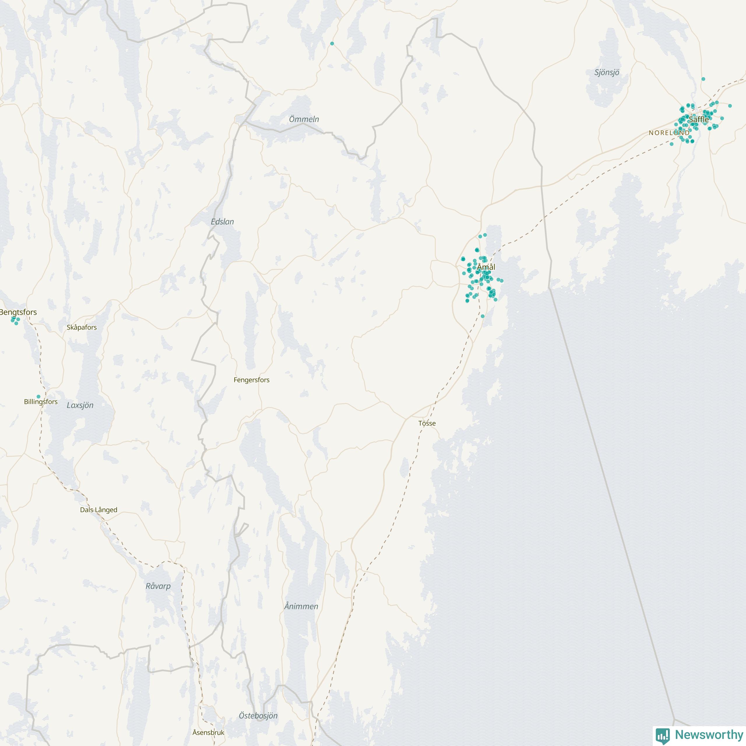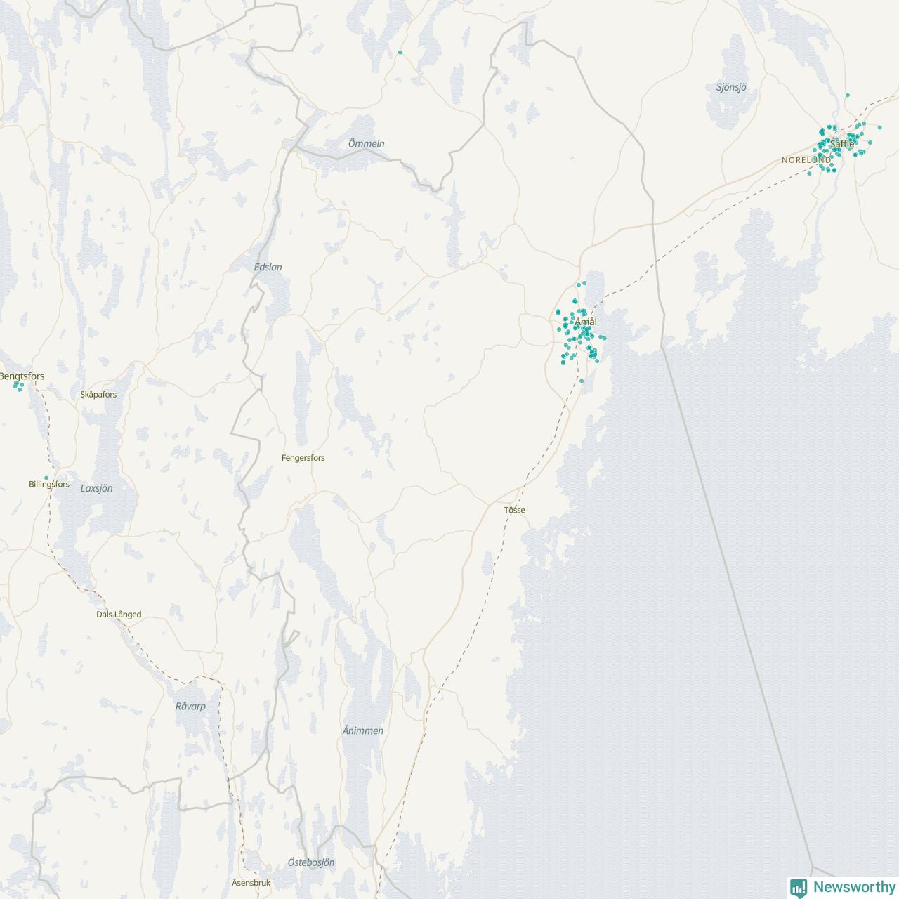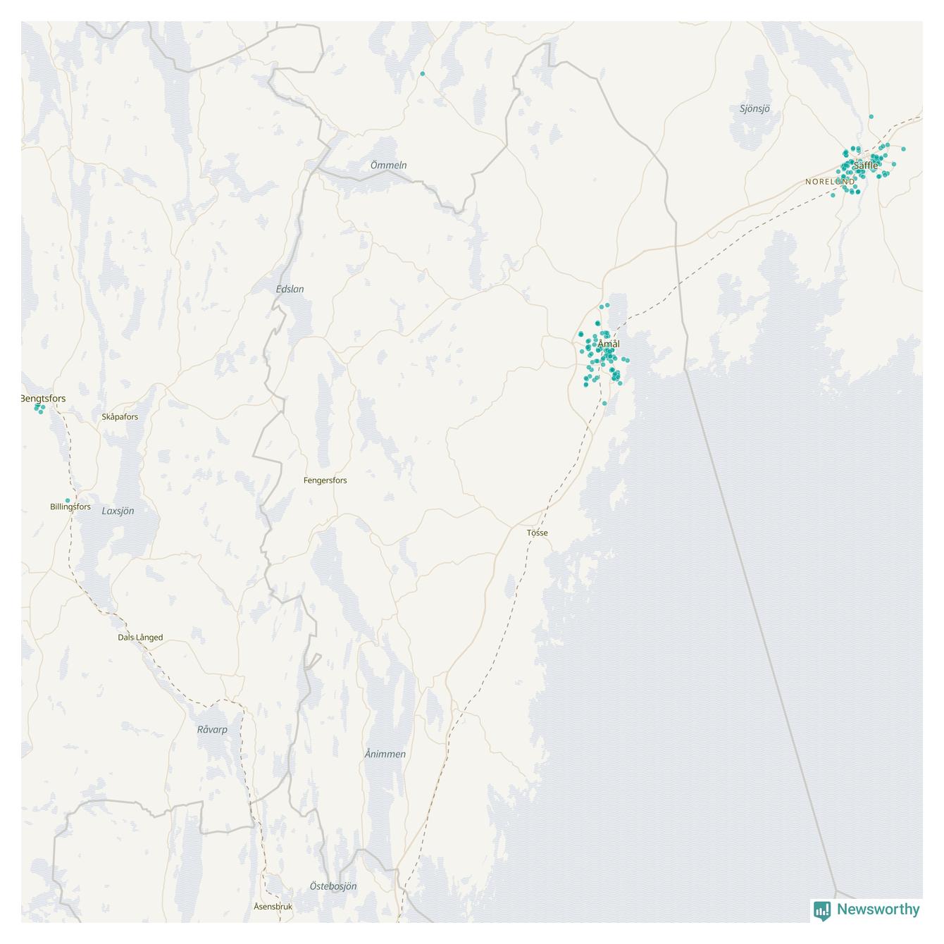 | Åmål | 100 | 10 074 | 86 % |