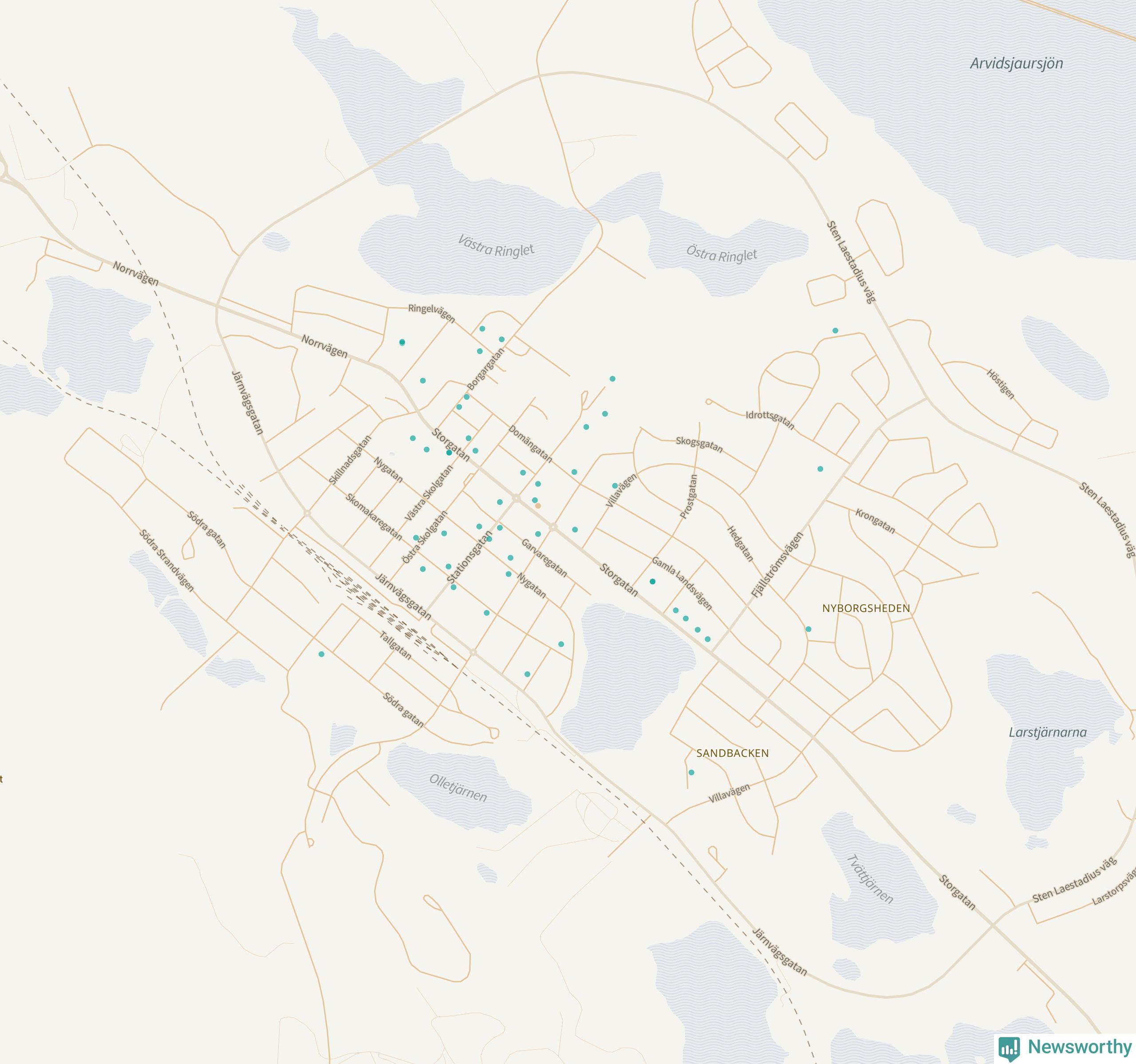 | Älvsbyn | 62 | 5 697 | 73 % |