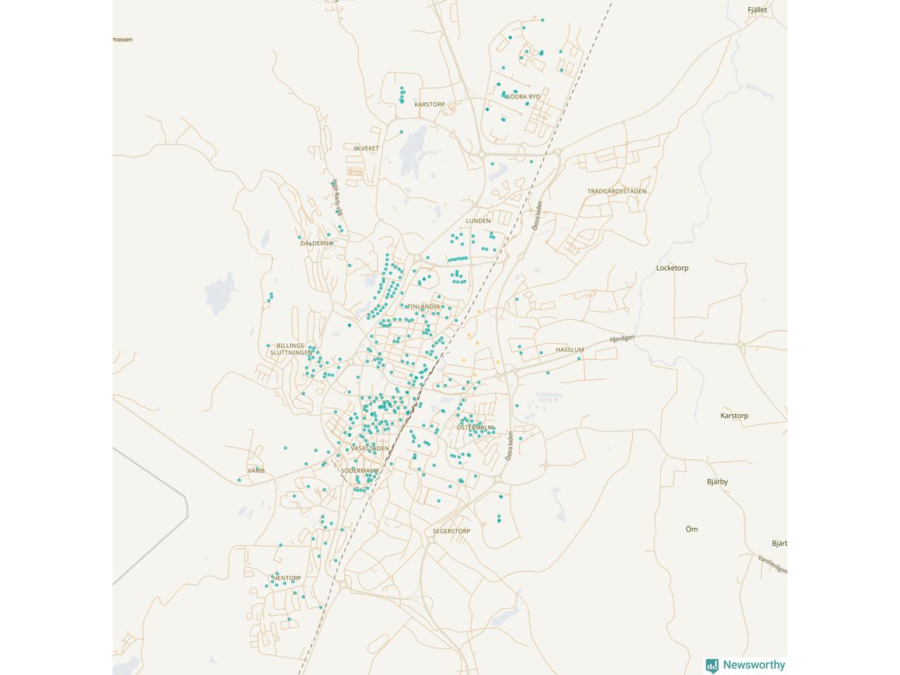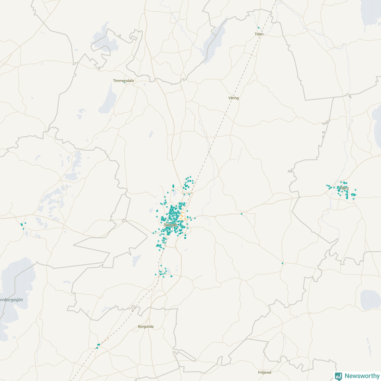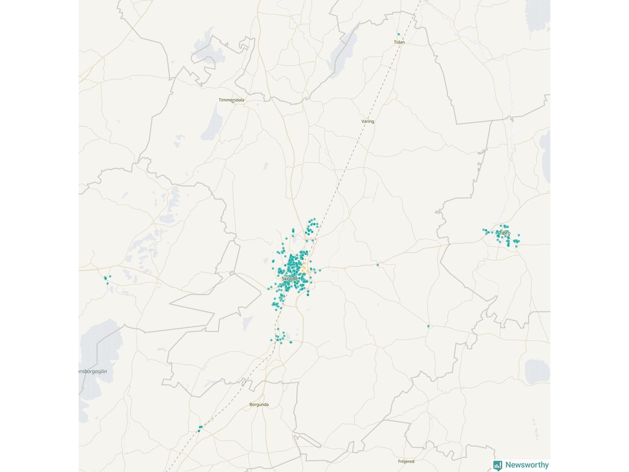 | Töreboda | 59 | 5 449 | 60 % |