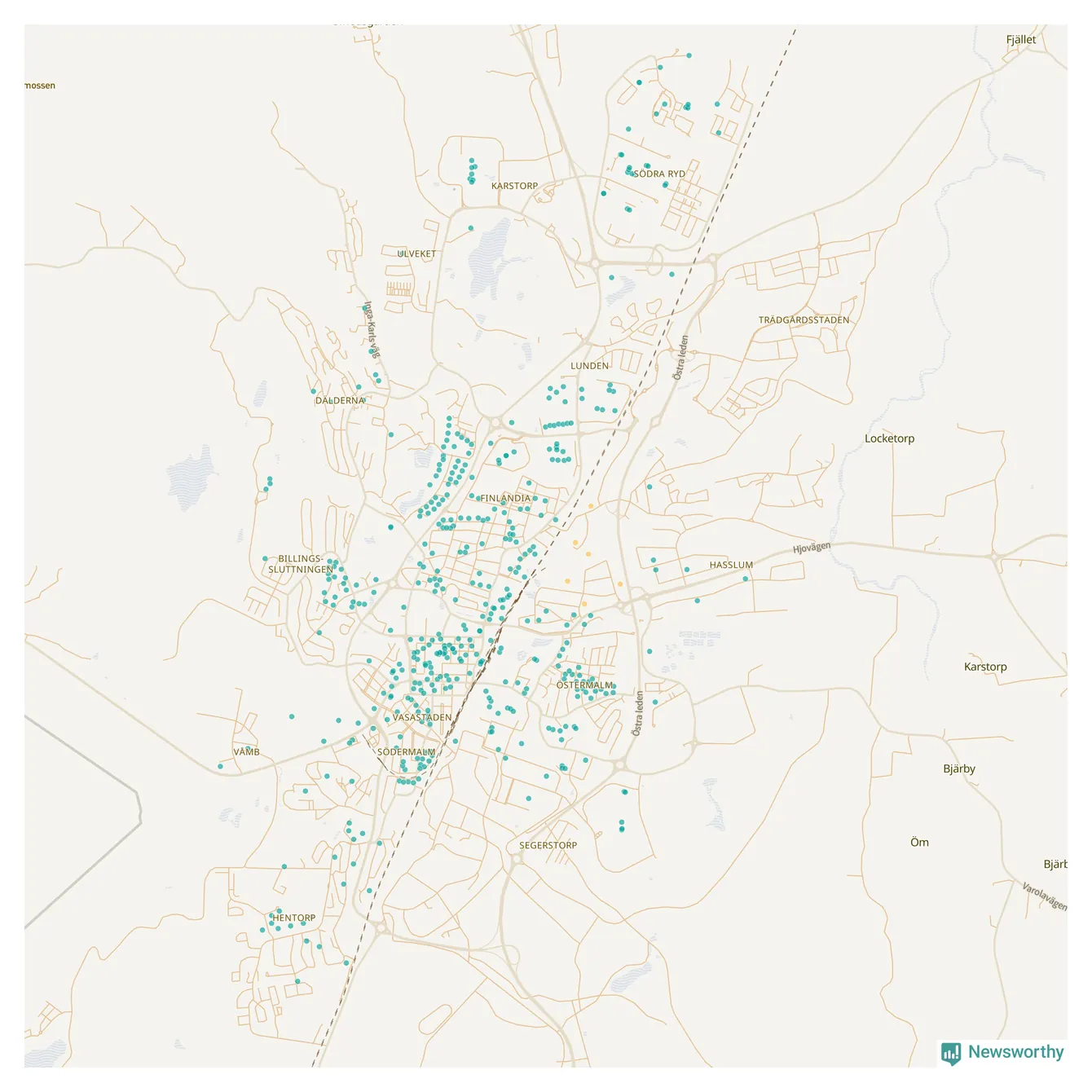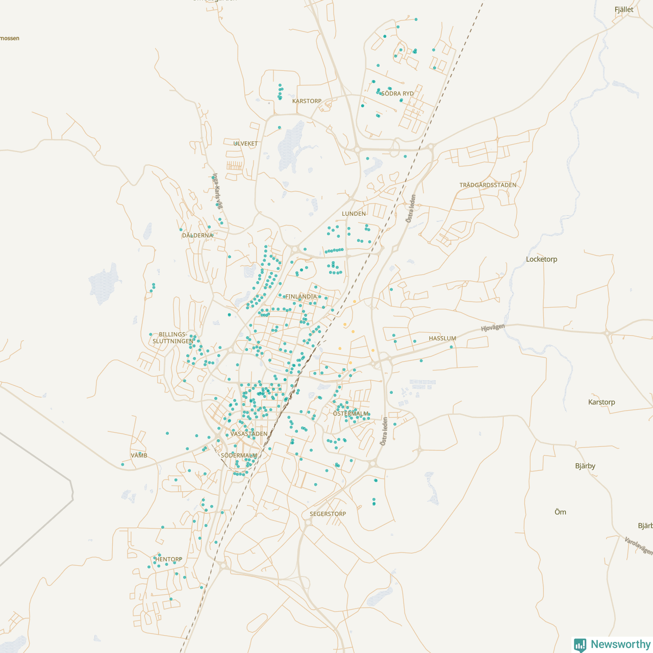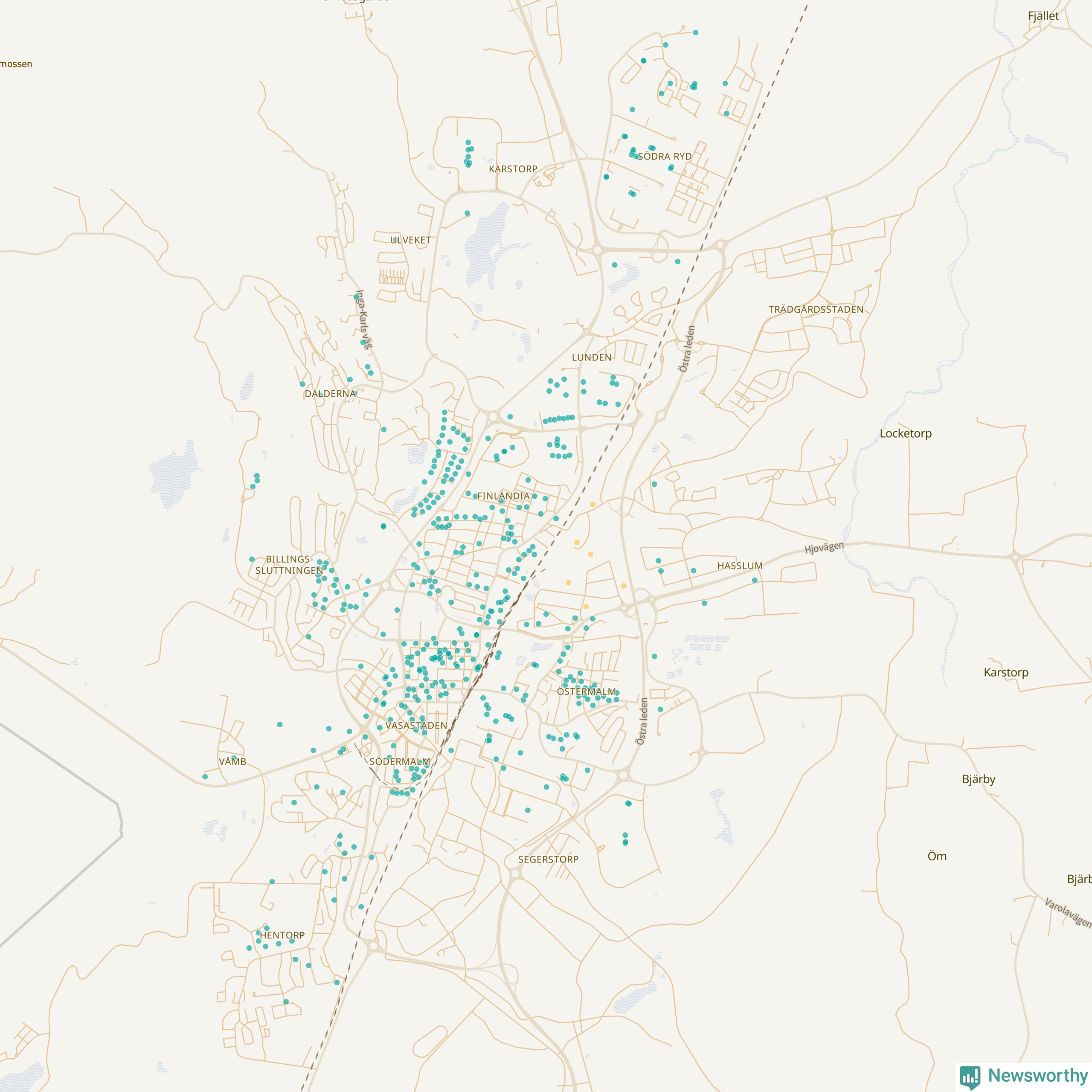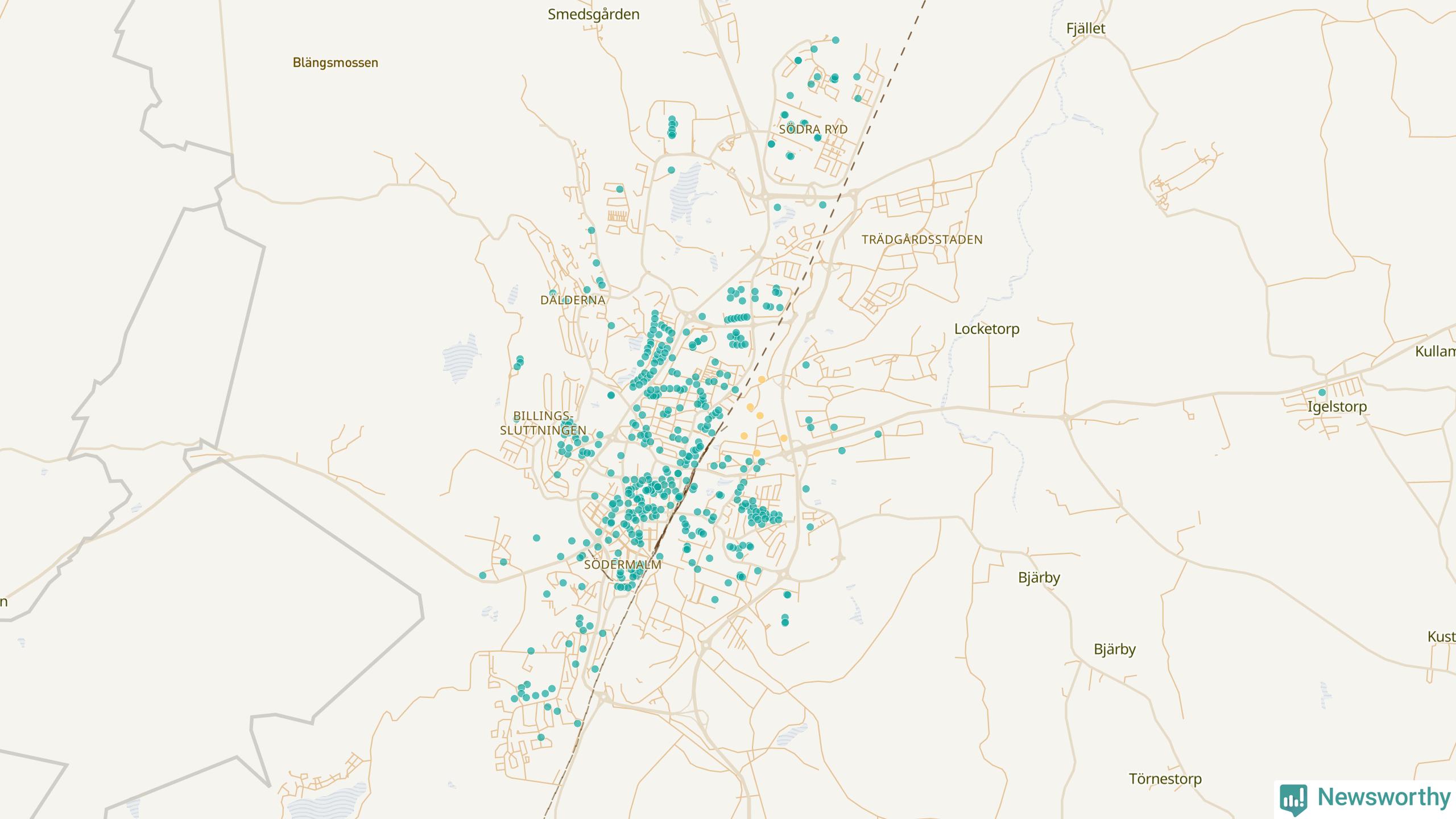 | Töreboda | 59 | 5 449 | 60 % |