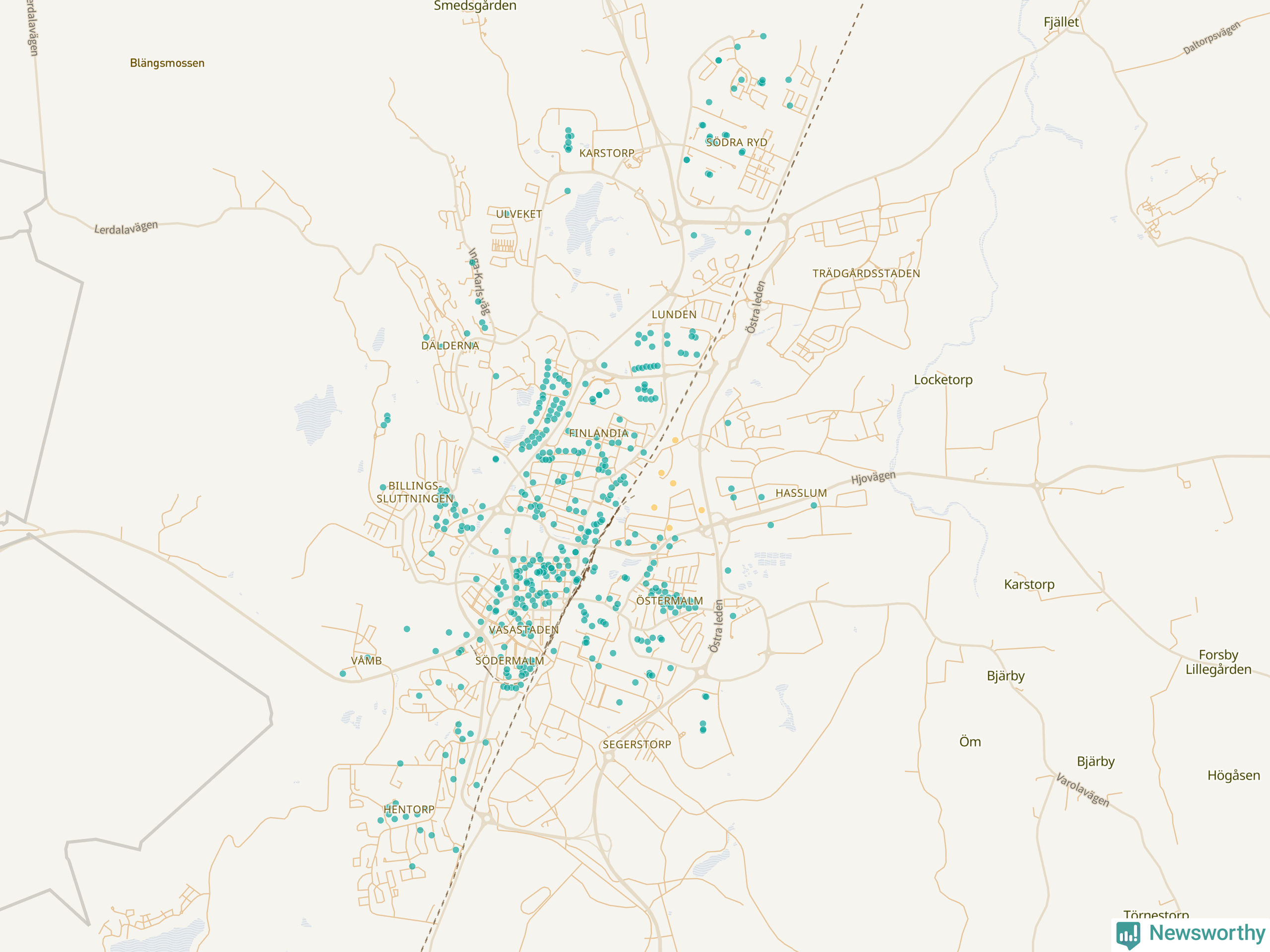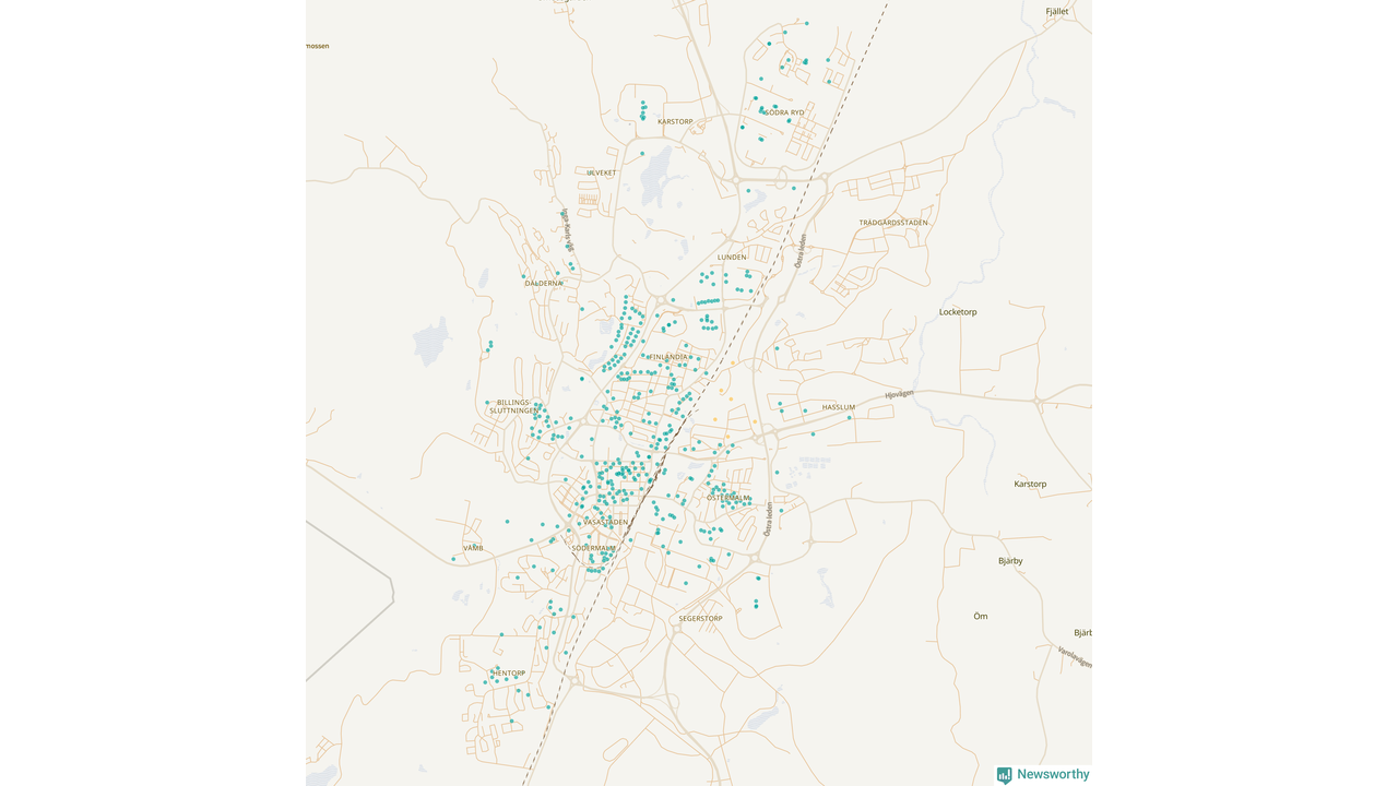 | Göteborg | 4 787 | 520 398 | 85 % |