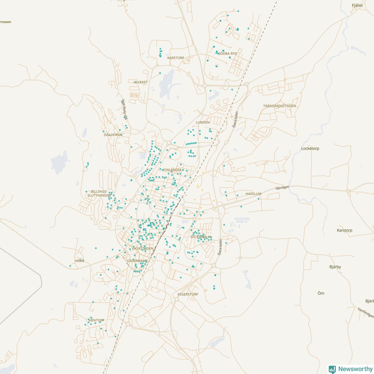 | Skövde | 469 | 52 432 | 90 % |