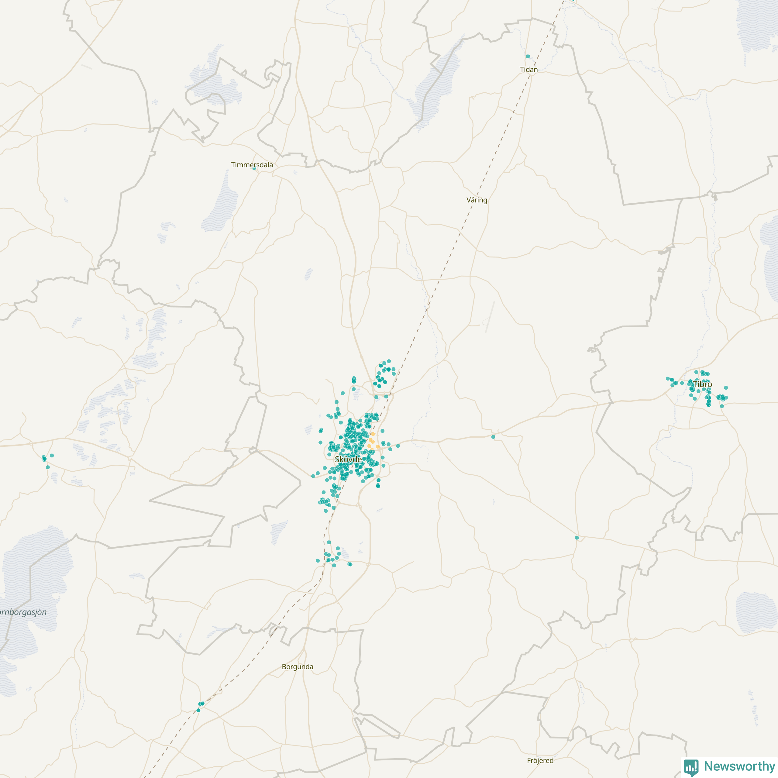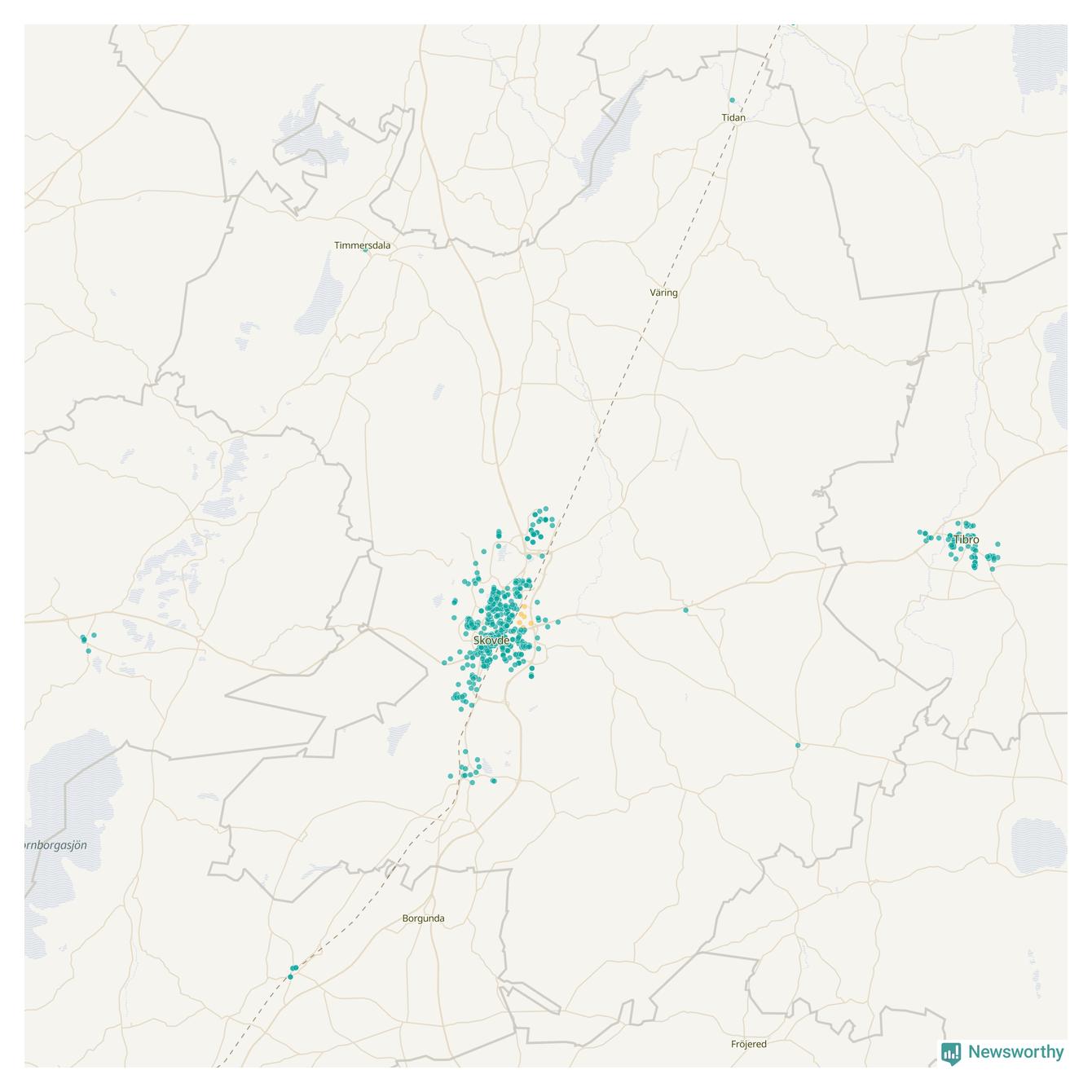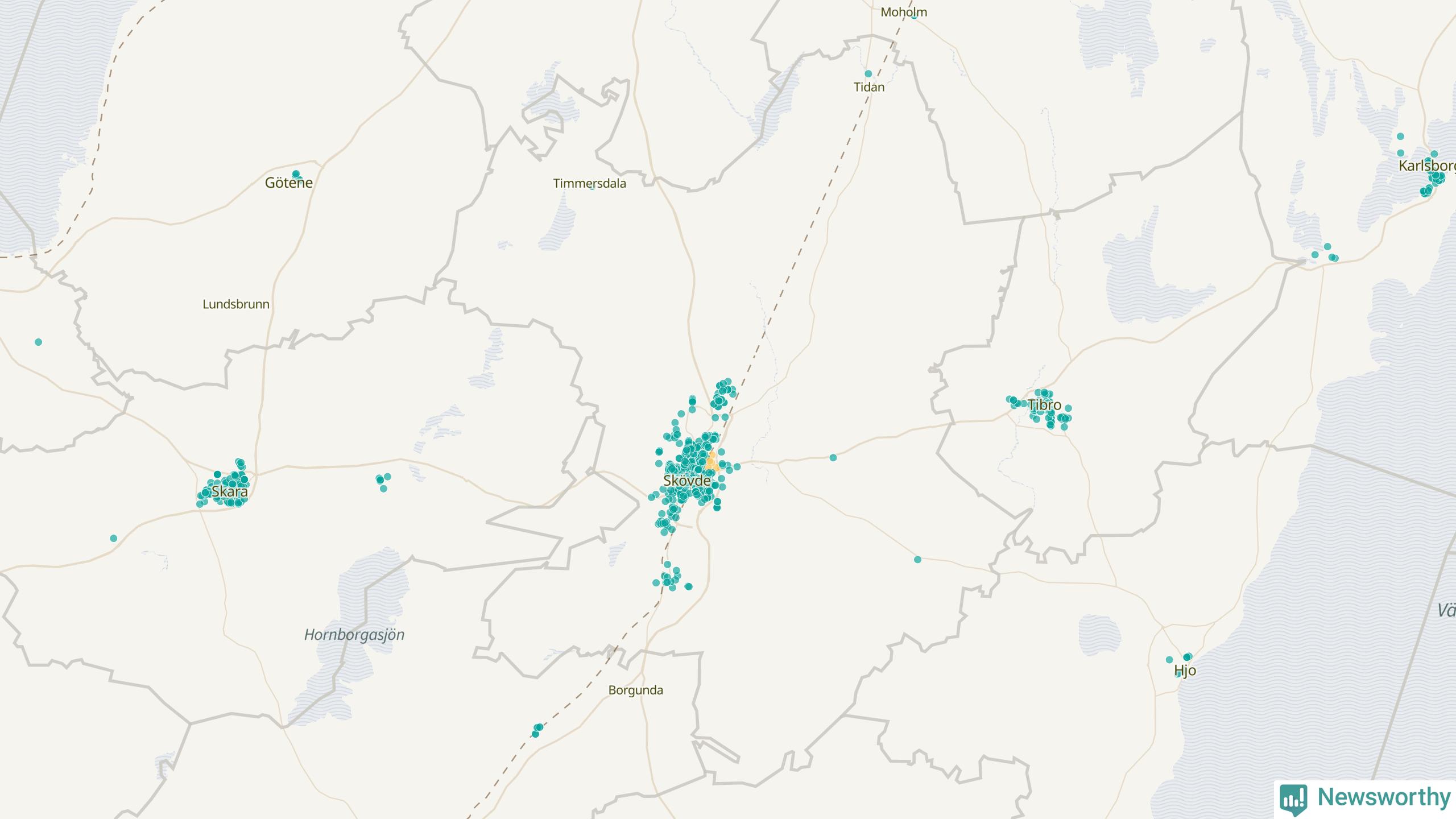 | Skara | 148 | 14 304 | 76 % |