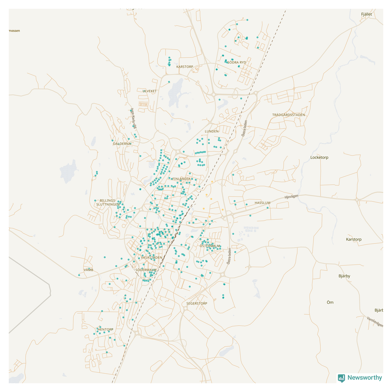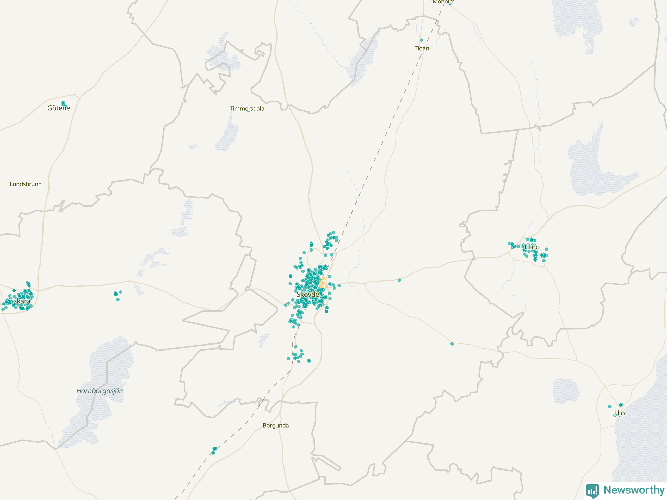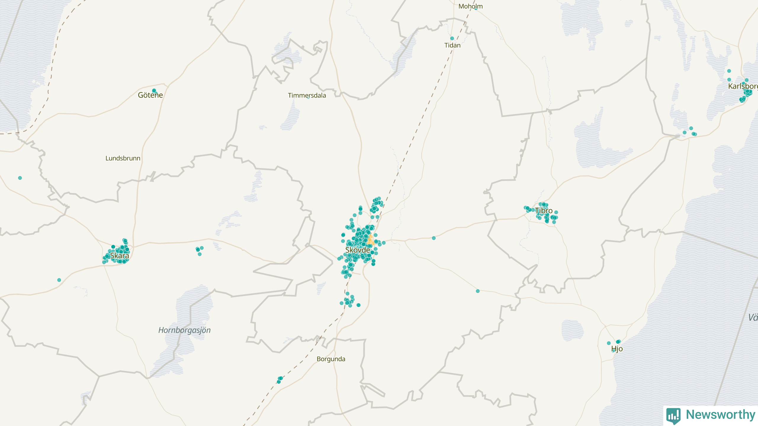 | Skara | 148 | 14 304 | 76 % |