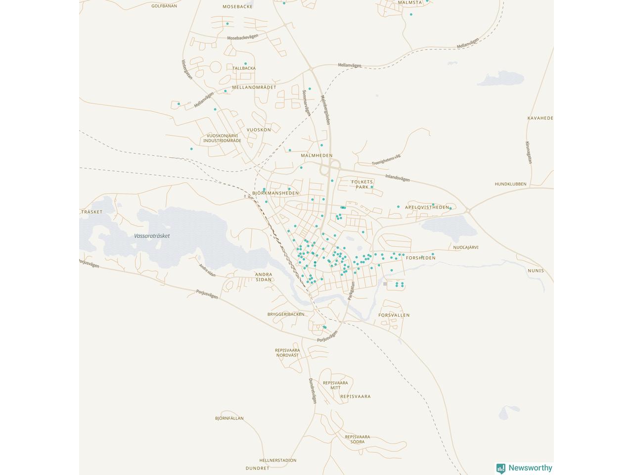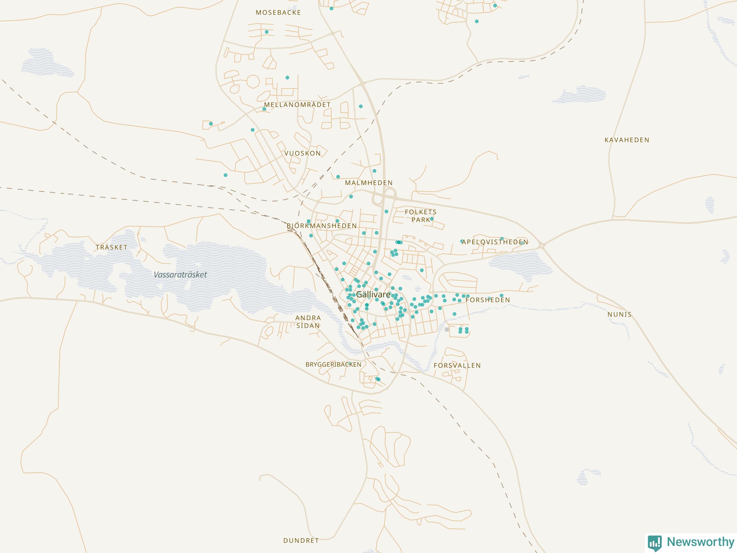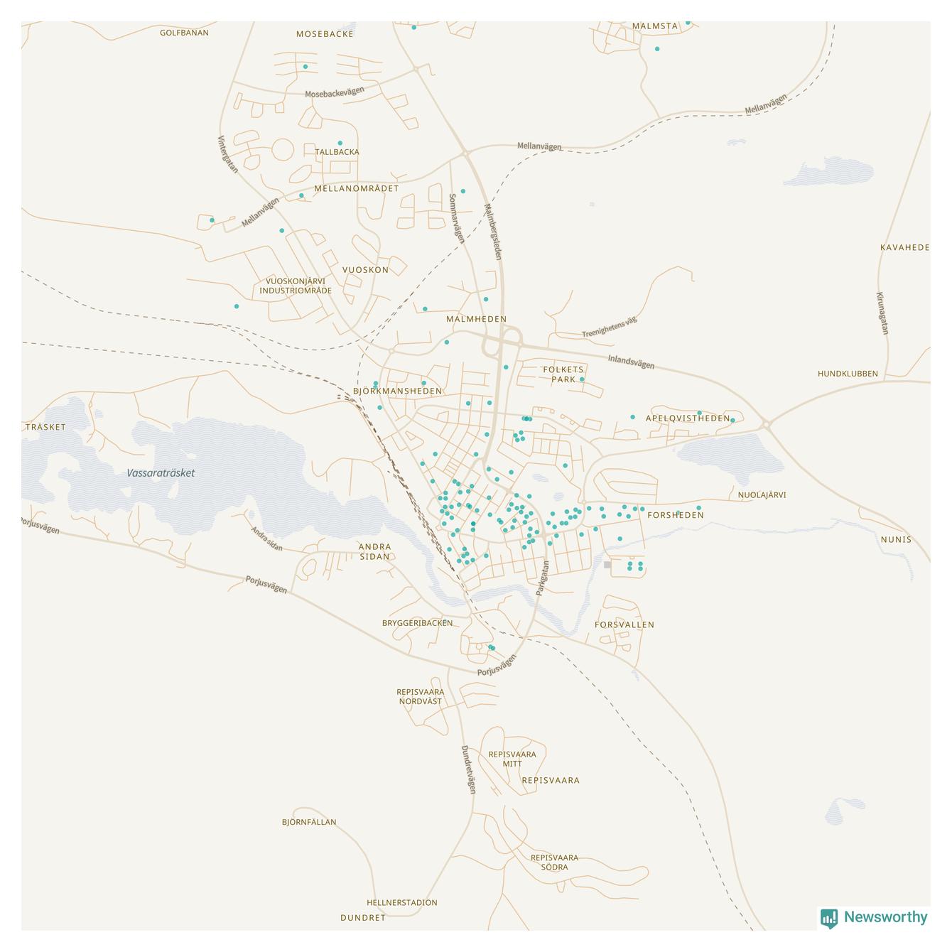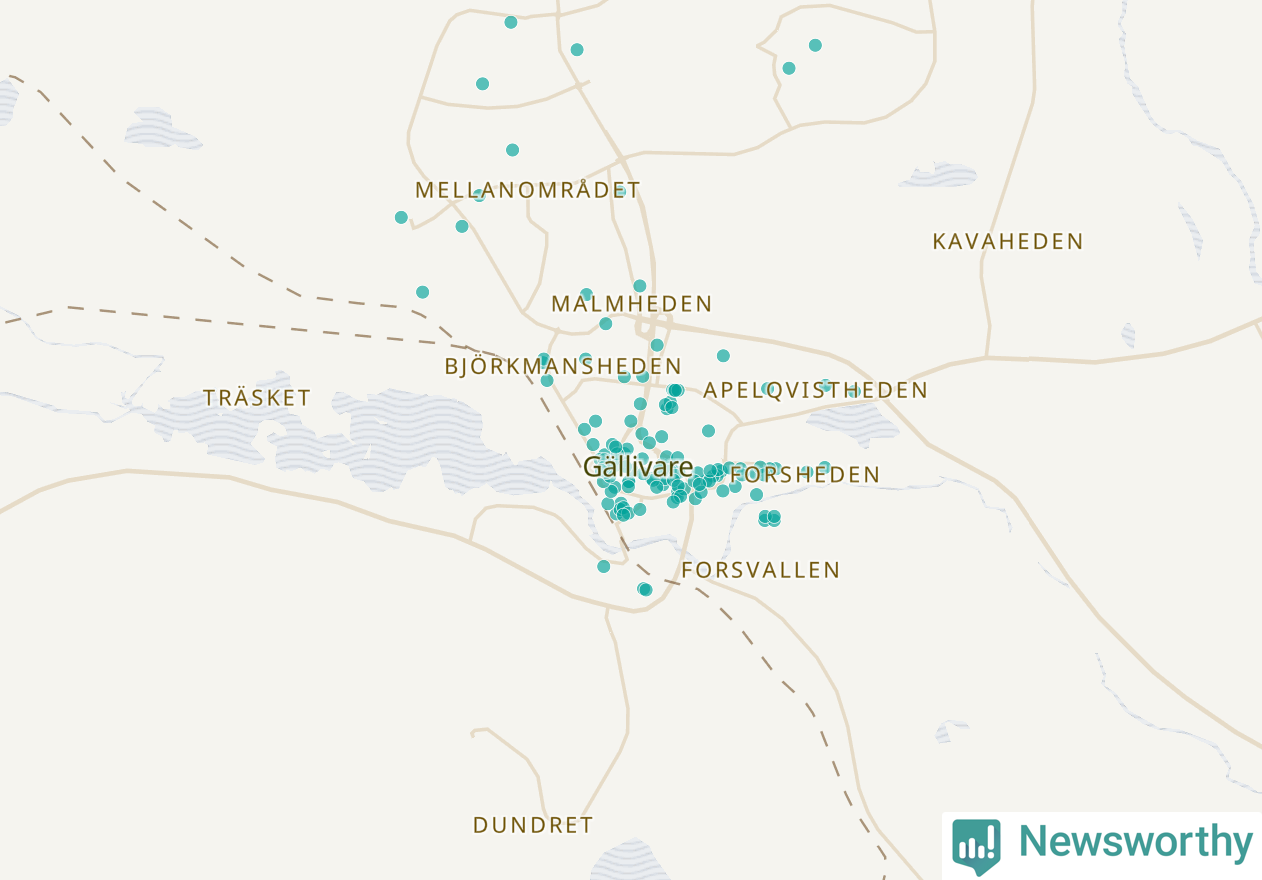 | Älvsbyn | 62 | 5 697 | 73 % |