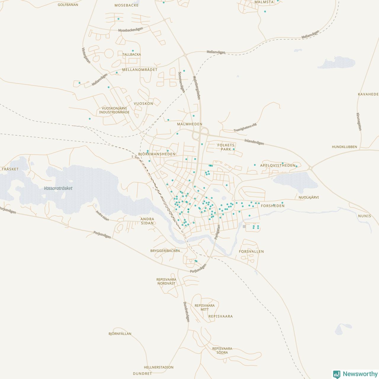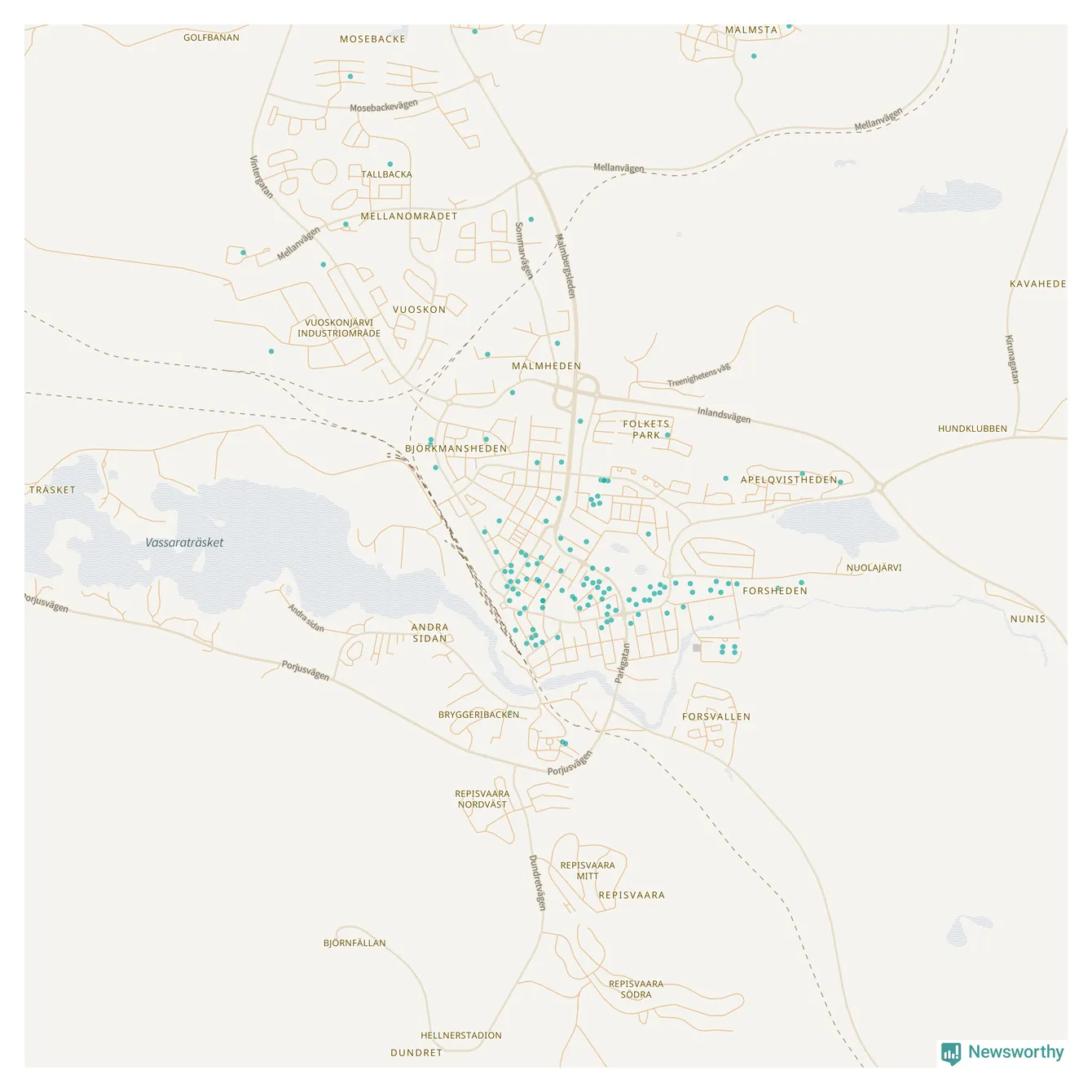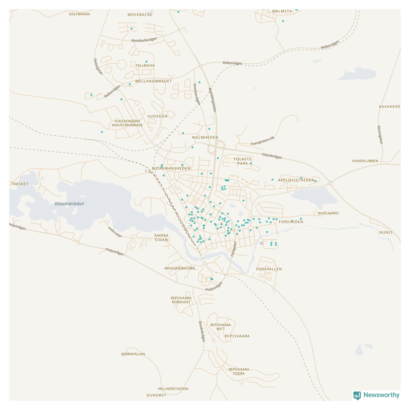 | Älvsbyn | 62 | 5 697 | 73 % |