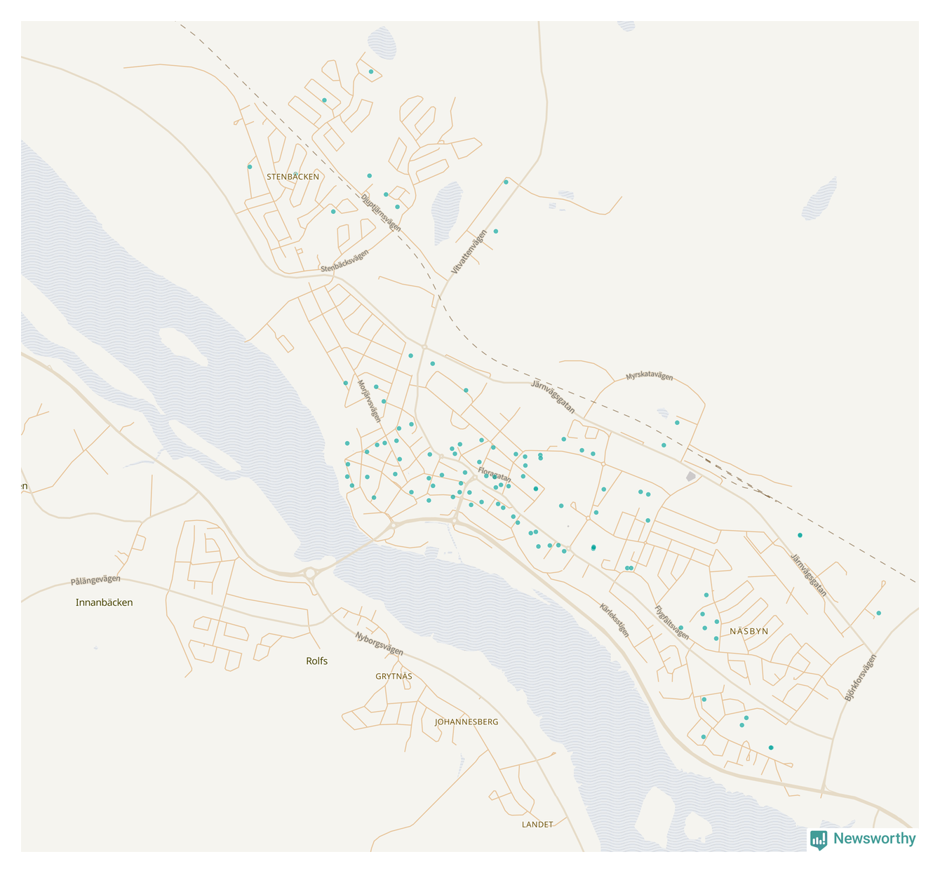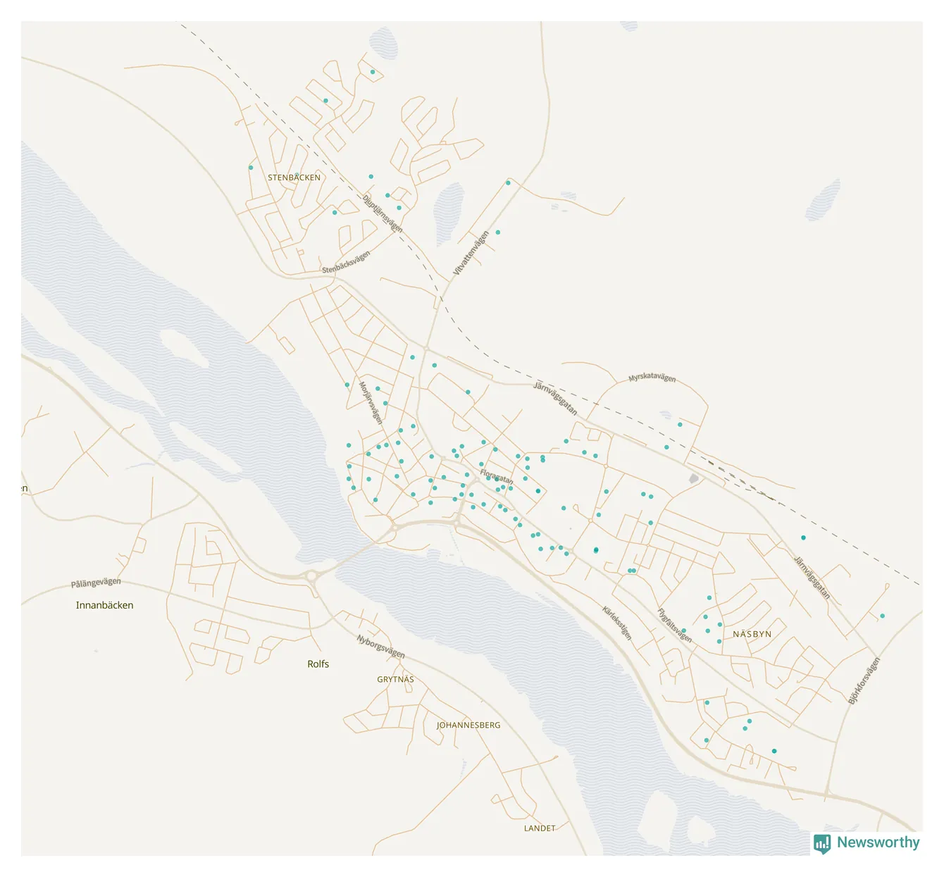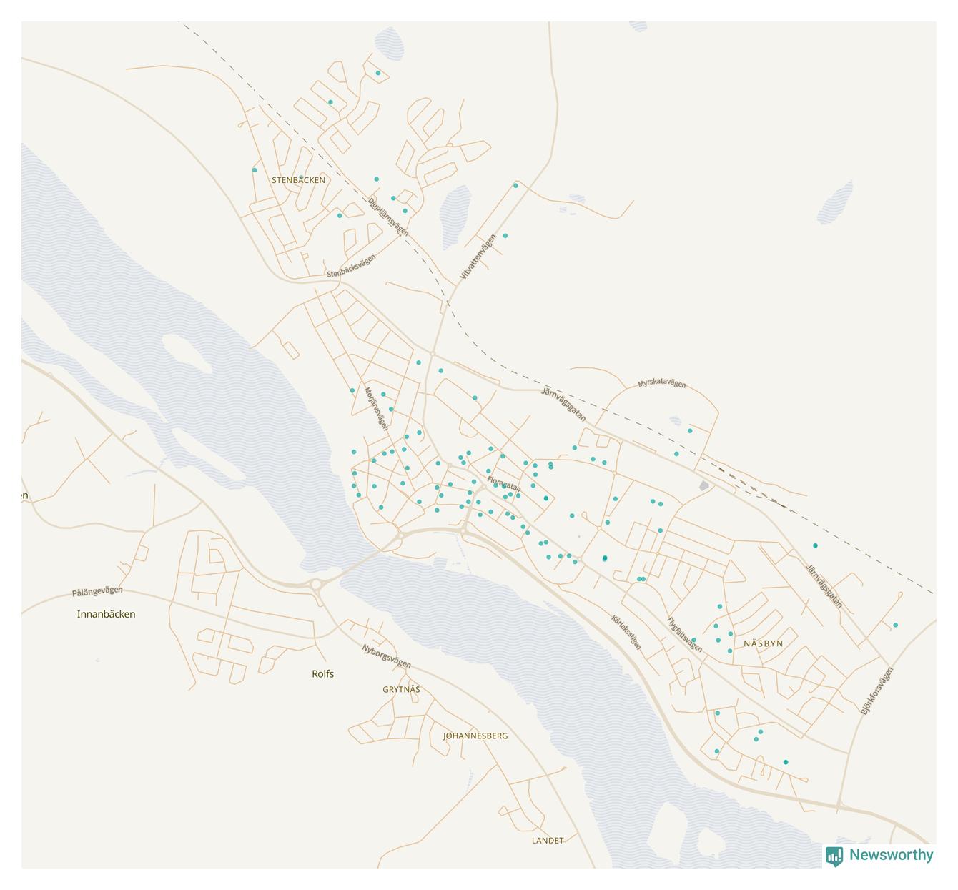 | Älvsbyn | 62 | 5 697 | 73 % |