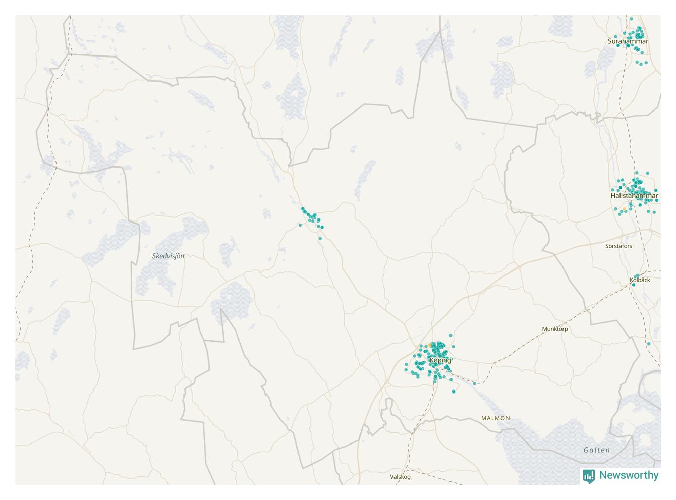 | Surahammar | 55 | 5 133 | 53 % |