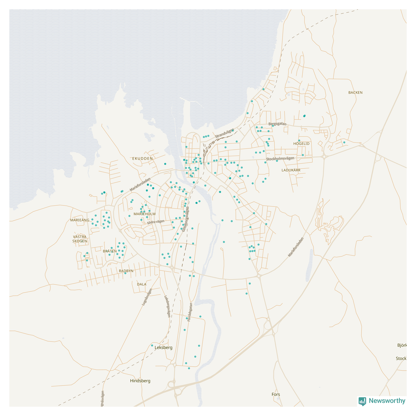 Newsworthy är en nyhetssajt som gör lokal journalistik baserat på data. Vi är datajournalister som analyserar och tolkar världen på siffror, snarare än tyckande.