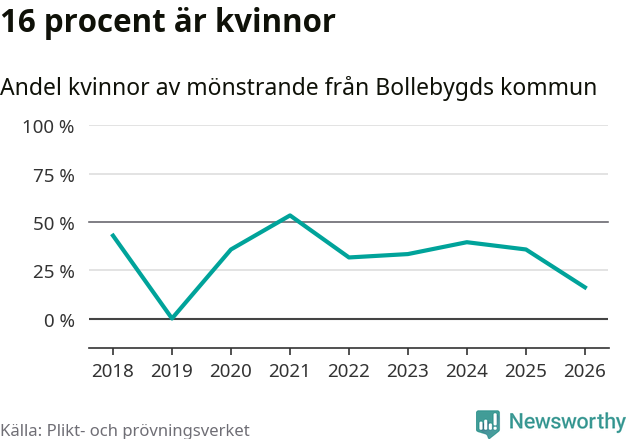 Av de som skrivits in till någon av Försvarmaktens grundutbildningar förra året, 2025, kommer 20 (16 män och fyra kvinnor) från Bollebygd. 16 av dessa antogs efter att ha kallats till mönstring.