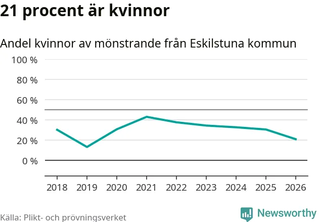 21 procent av de kallade från Eskilstuna är kvinnor