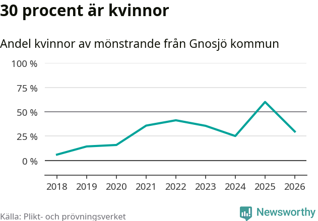 30 procent av de kallade från Gnosjö är kvinnor